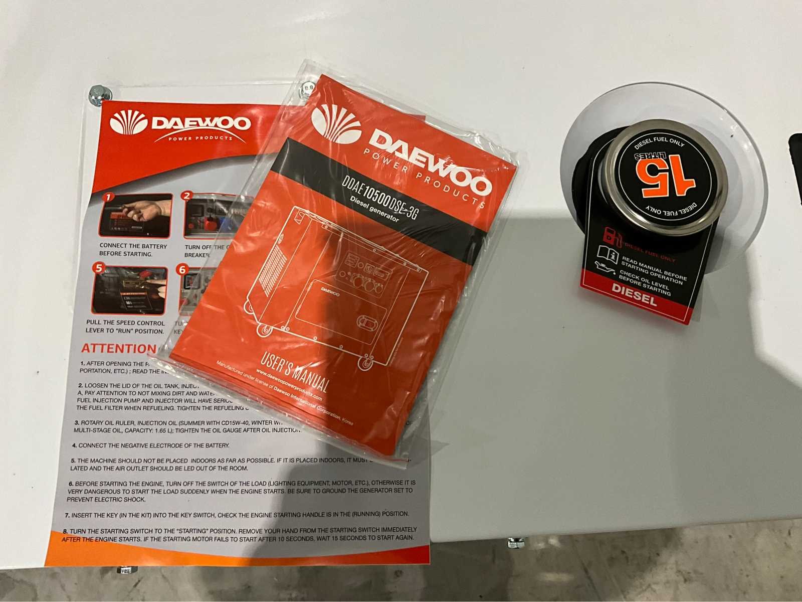 Ongebruikt , batterij 36ah , 15pk , 498cc , dba 72-74 , tank inhoudt 15L , 230 en 400 volt Merk: Daewoo Type: DDAE10500-3G diesel Bouwjaar: 2026 Capaciteit.: 8.1kVA Aansluiting: 400V Motorcapaciteit: 11kW Afgelezen urenstand: 1 Handboek aanwezig: true Machinegewicht: 165kg Totale afmeting L: 880mm Totale afmeting Breedte: 560mm Totale afmeting Hoogte: 720mm