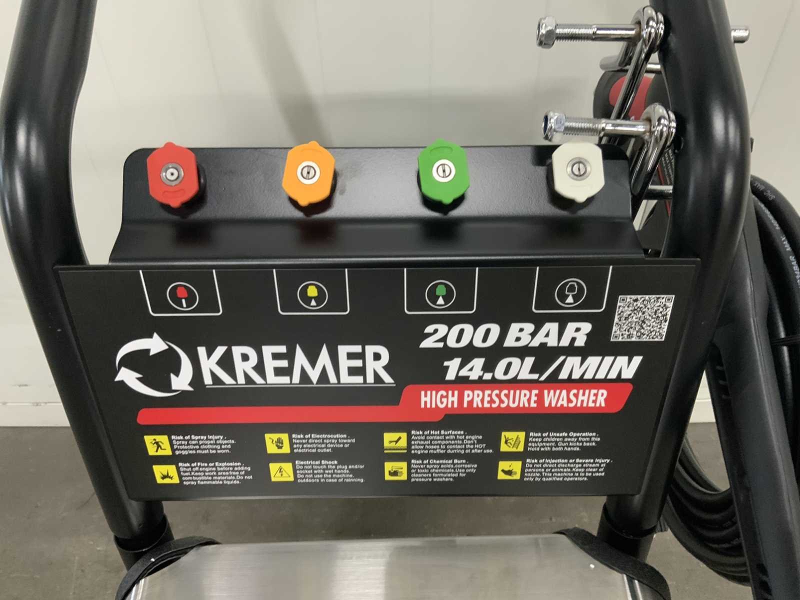 Ongebruikt Merk: Kremer Type: KR2900 PSI Bouwjaar: 2026 Maximale werkdruk: 200bar Capaciteit.: 84l/hr Mobiel: true Vermogen: 4kW Aansluiting: 380V Totale afmeting L: 730mm Totale afmeting Breedte: 540mm Totale afmeting Hoogte: 620mm