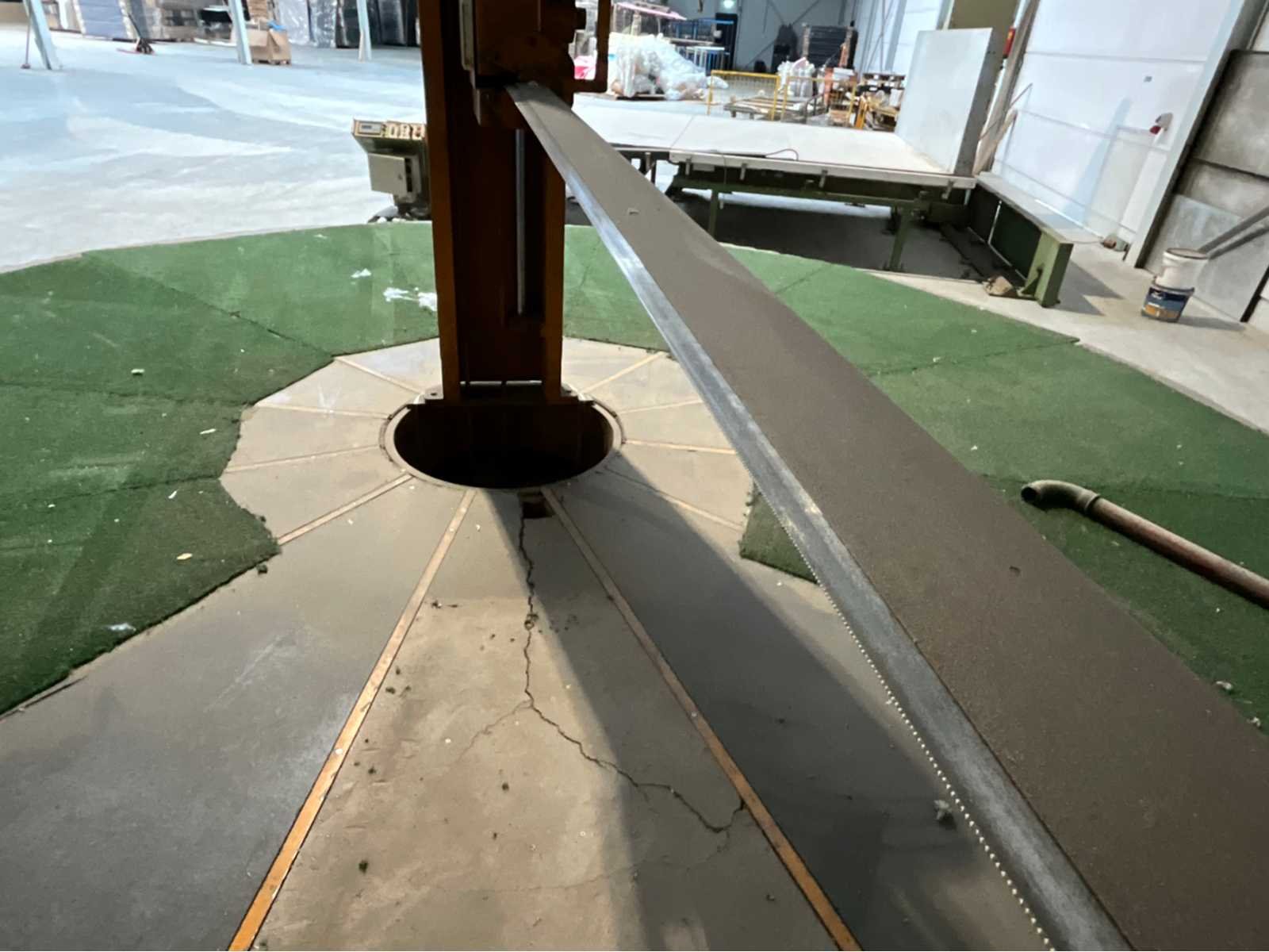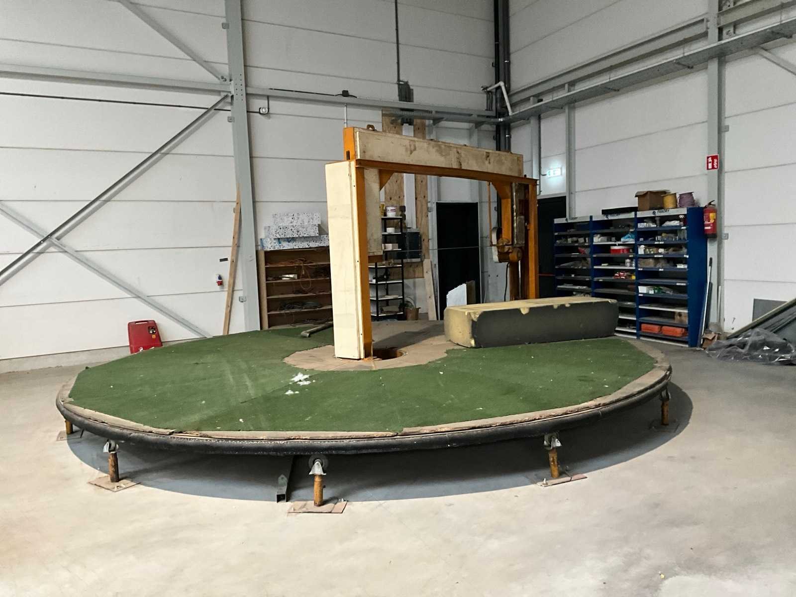 Platform diameter 600 cm, zaaghoogte verstelbaar van 1 tot 120 cm Merk: Makina Werkbreedte: 2500mm Aansluiting: 380V Totale afmeting L: 6100mm Totale afmeting Breedte: 6100mm Totale afmeting Hoogte: 3000mm