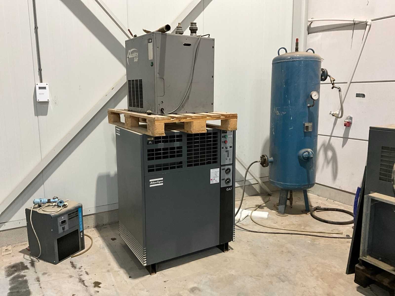 Voorzien van lichtdroger en buffertank Merk: Atlas copco Type: GA7 Bouwjaar: 1994 Capaciteit.: 10bar Vermogen: 7.5kW Buffertank inhoud: 500l Afgelezen urenstand: 31088 Aansluiting: 380V
