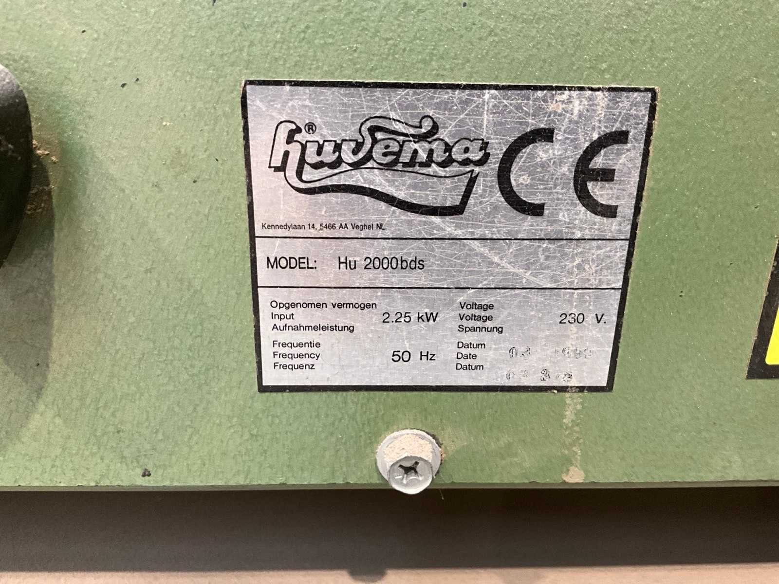 Merk: Huvema Type: HU2000bds Vlakschuurmachine: true Werkbreedte: 150mm Schuurband afm. l: 900mm Aansluiting: 230V Afmeting l: 1300mm Afmeting b: 500mm Afmeting h: 1000mm