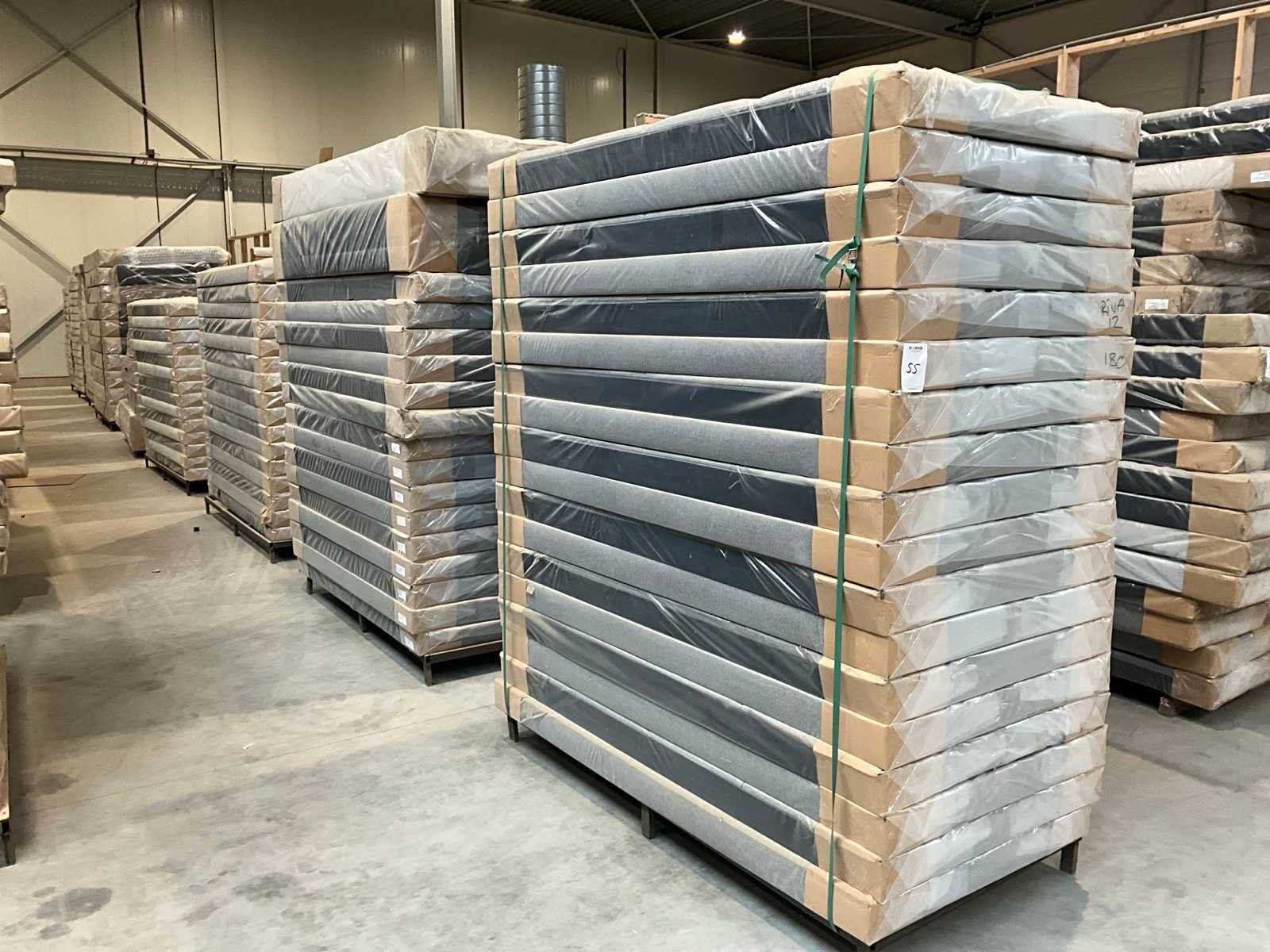 Op 9 pallets, diverse soorten bekleding, afmetingen 180 en 200 cm breed,