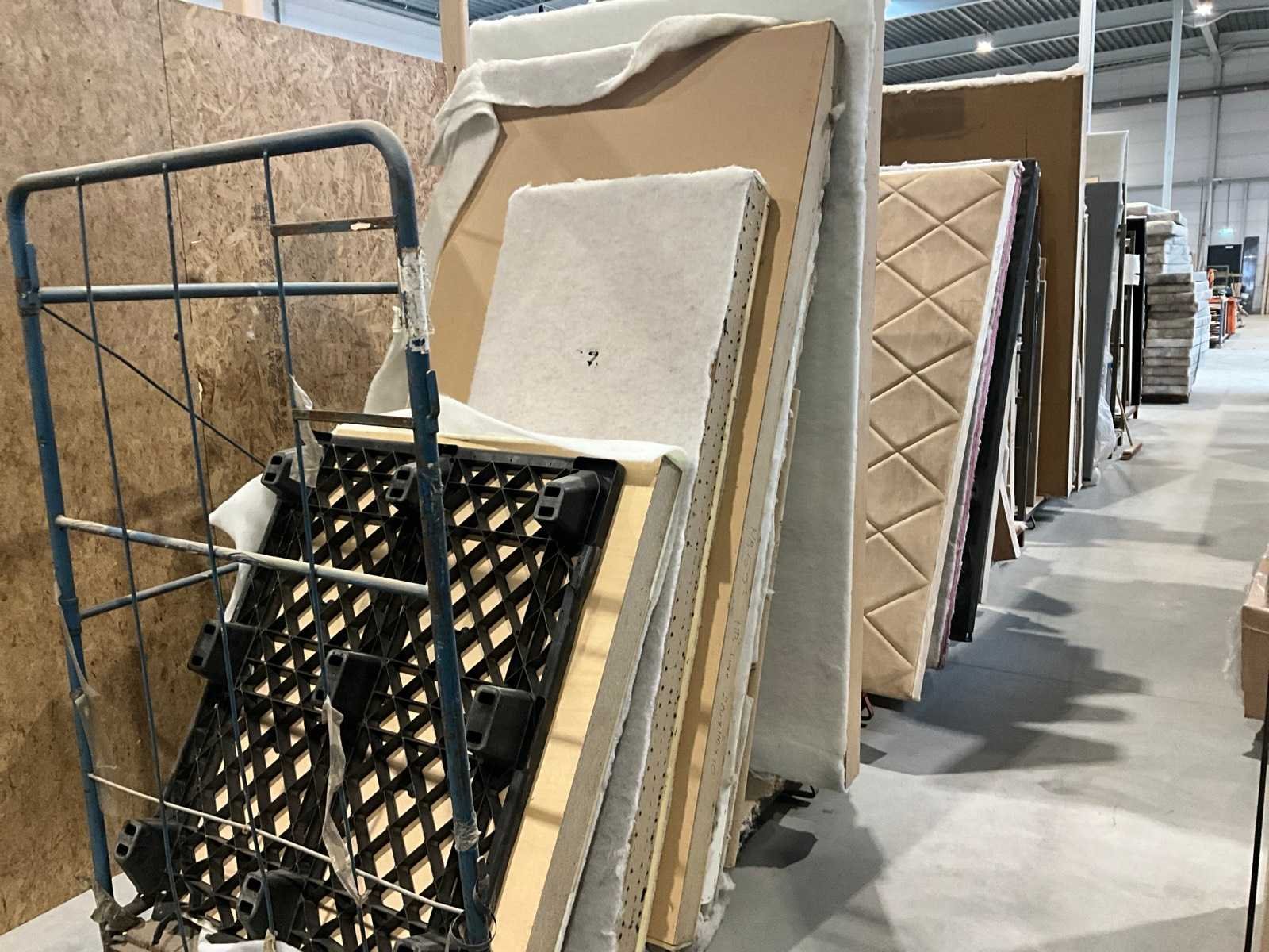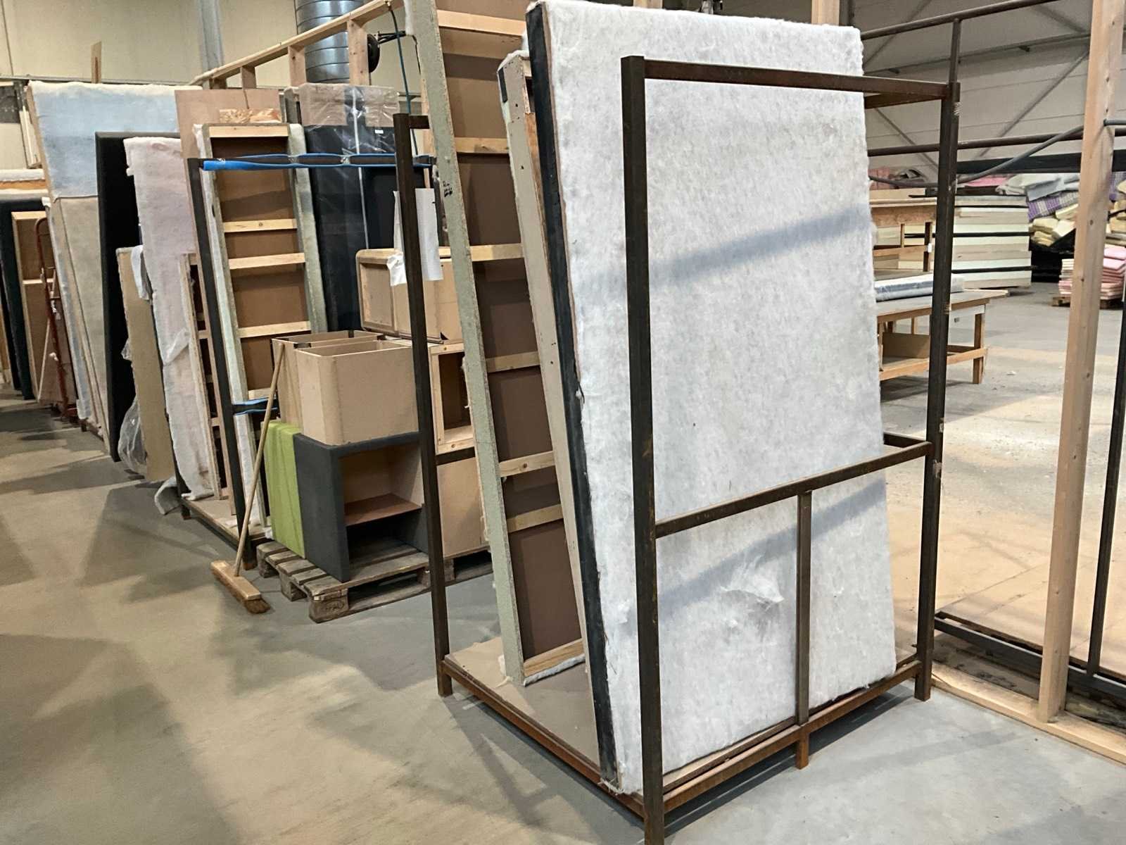 In 6 stalen frames (inbegrepen) diverse soorten bekleding, afmetingen 180 en 200 cm breed,