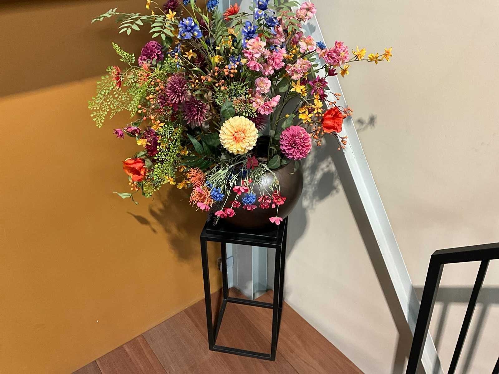 Kunstbloemen met vaas en sokkel