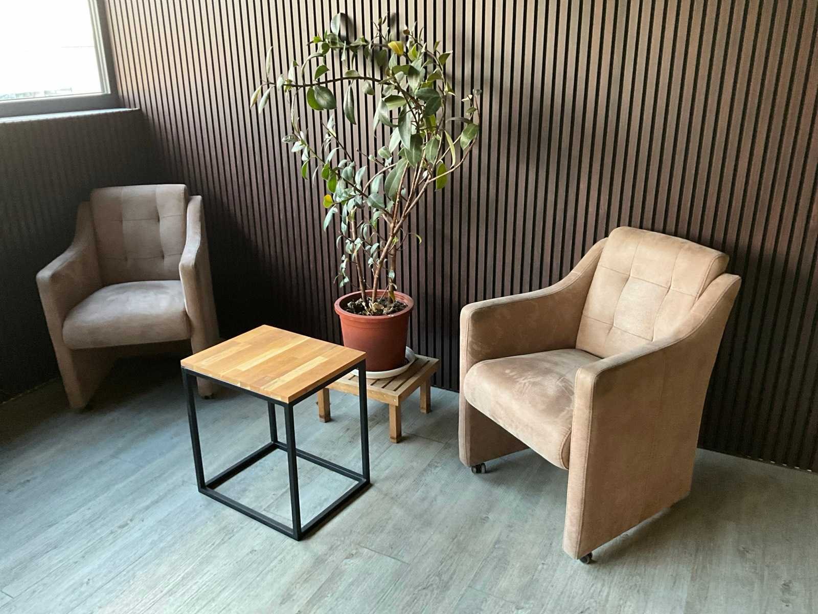 2x wachtkamerstoel met bijzettafel en plant Lengte: 240cm Breedte: 120cm
