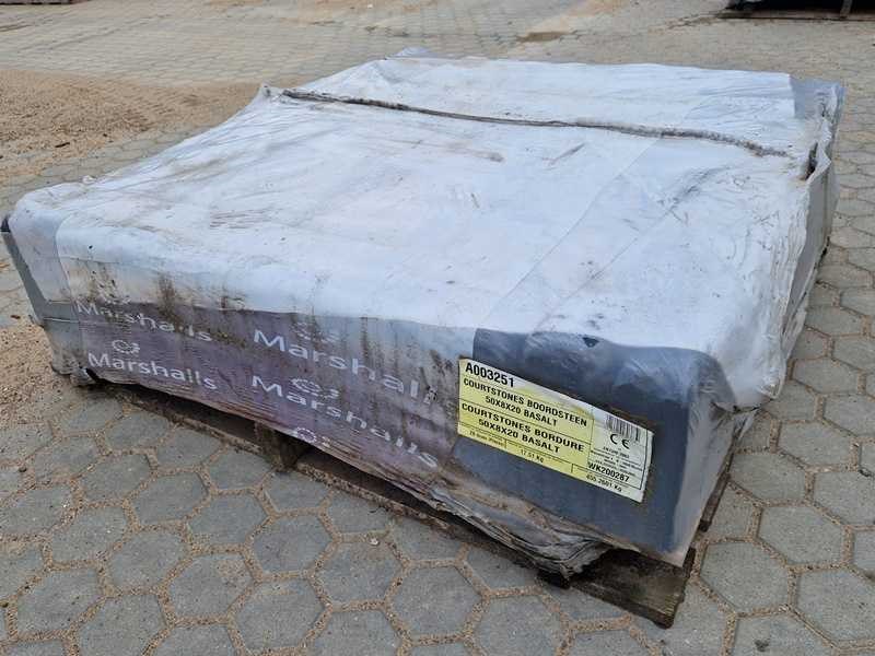 Type: Courtstone boordsteen. Afmetingen circa: 8 cm x 20 cm x 50 cm. Aantal pallets: 4. U kunt deze kavel afhalen in Hulst op 18 maart. Daarvoor moet u uiterlijk 9 maart uw factuur van Troostwijk betaald hebben. Bij betaling ná deze datum blijft uw kavel bij de verkoper staan en is afhalen in Hulst enkel mogelijk op afspraak. U kunt deze kavel ook laten bezorgen. De kosten bedragen voor dit kavel €110,00 exclusief BTW. Wilt u meerdere kavels laten bezorgen? Vanaf het tweede tot en met de vijfde kavel betaalt u €75,00 euro ex BTW per kavel. Voor 6 kavels of meer betaalt u een vast bedrag van €450,00 ex BTW. Levering vindt alleen plaats in Nederland. Kosten bezorging op de Waddeneilanden en België op aanvraag. Voor het laten bezorgen van uw kavel(s) dient u zelf uiterlijk 12 maart contact op te nemen via e-mail, Veiling@dbtrading.nl . Bezorginformatie: Het losadres moet goed bereikbaar zijn voor een vrachtwagen met trailer waarop een kraan is bevestigd. Deze kraan kan de pallets maximaal 4 meter vanaf de wagen lossen. Hiermee dient u rekening te houden i.v.m. het vrijhouden van de losplaats. De chauffeur heeft geen palletwagen tot zijn beschikking. Kleur: Basalt Gewicht: 1820kg Lengte: 8cm Breedte: 20cm Hoogte: 50cm Materiaal: Opsluitbanden voor de tuin