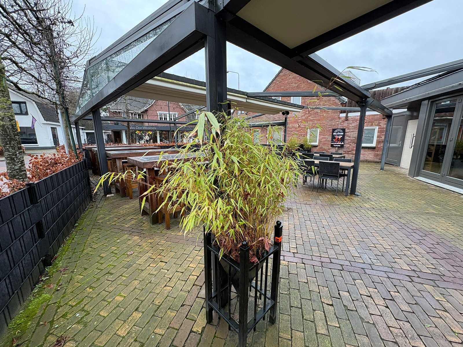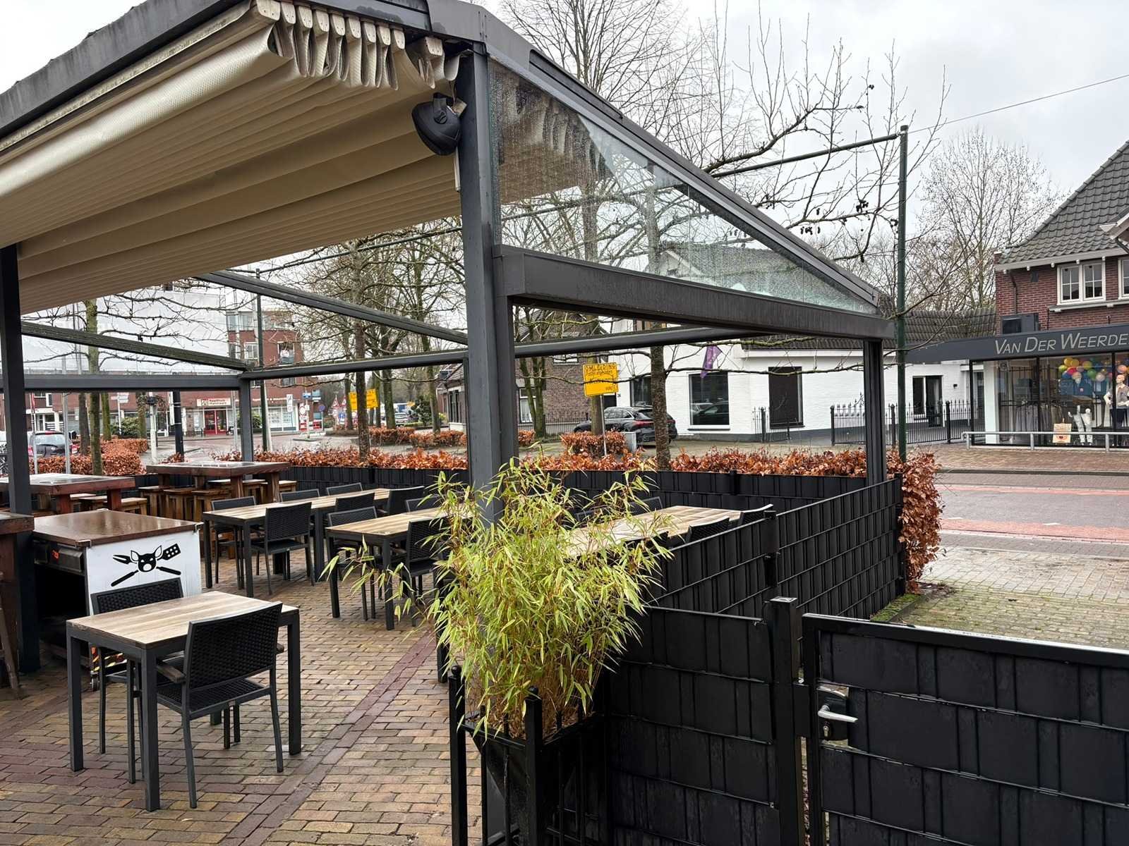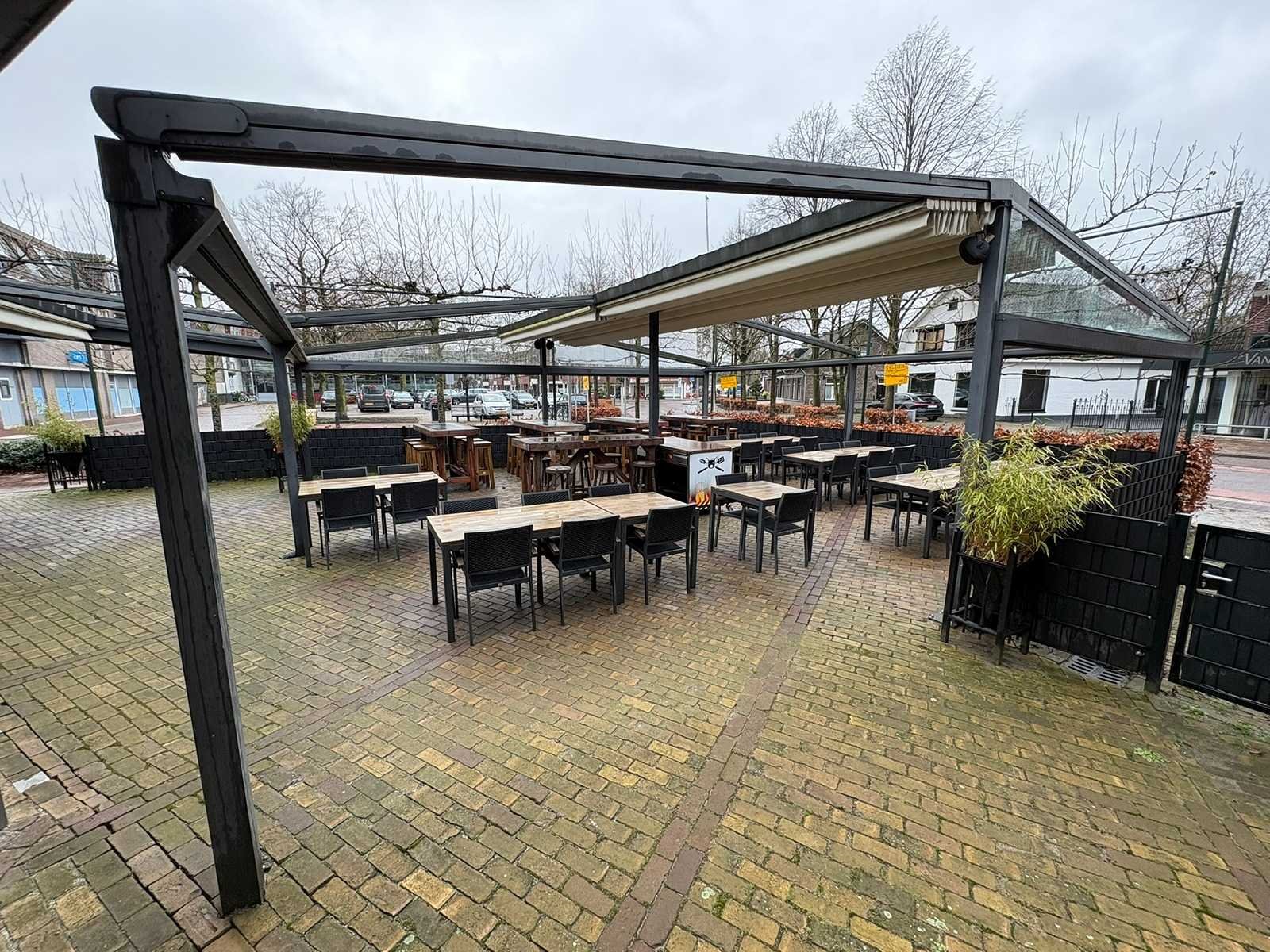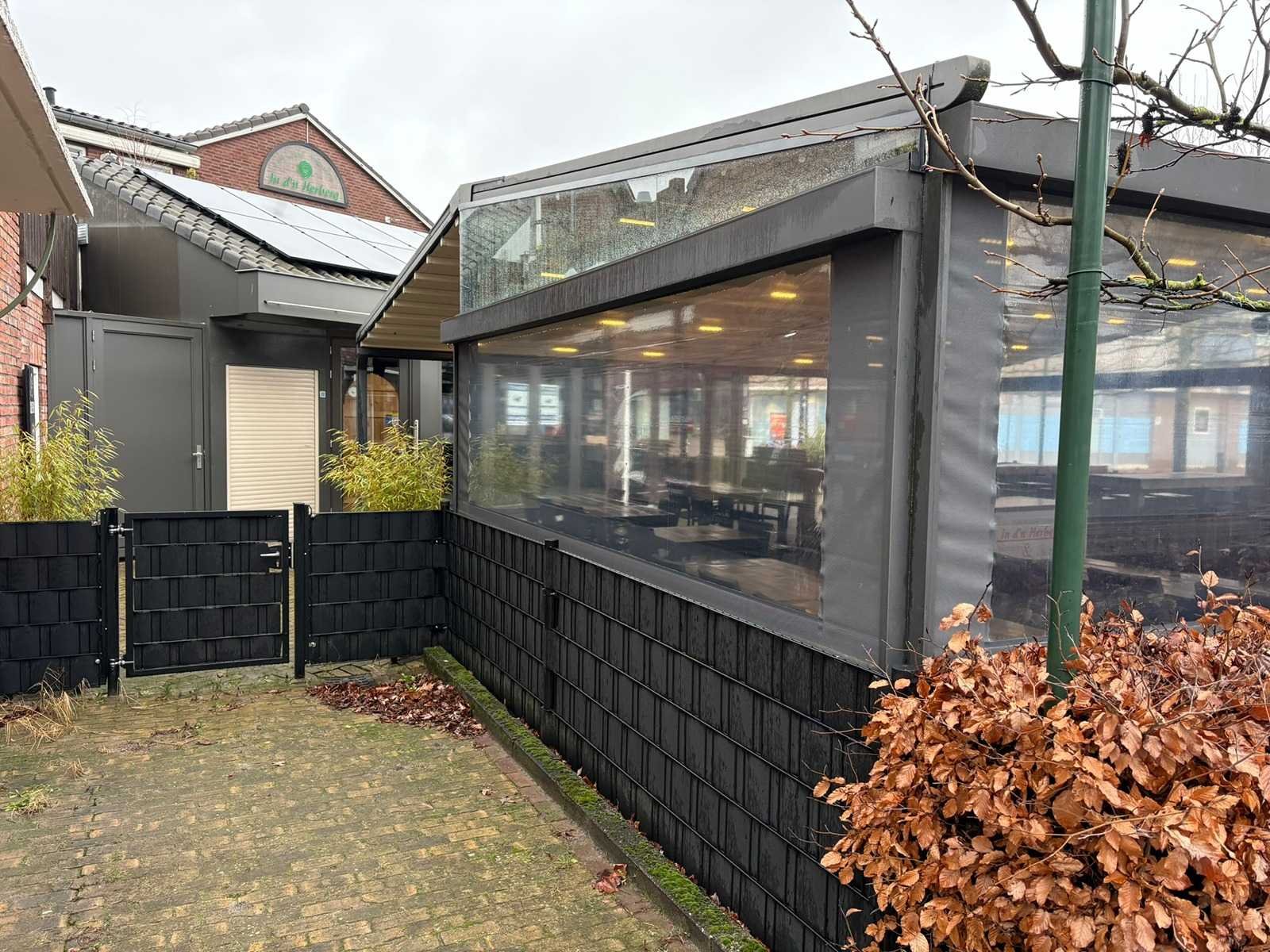 Elektrisch verstelbare screens inclusief aanloop overkapping van 500x420x300cm Lengte: 900cm Breedte: 900cm Hoogte: 300-246cm