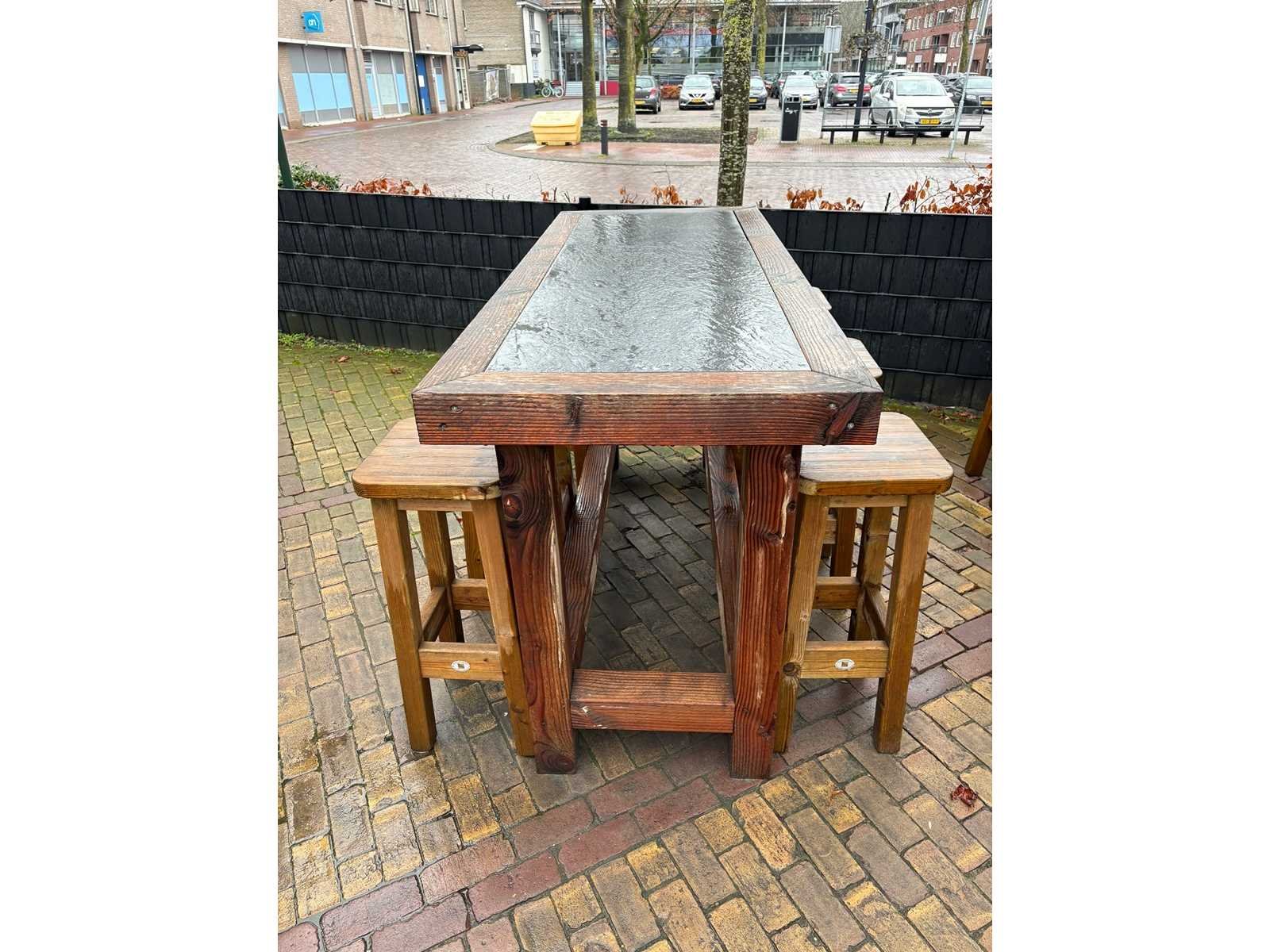 Tafel + 6 krukken Zowel geschikt voor indoor als outdoor fmeting tafel: 200x80x110cm