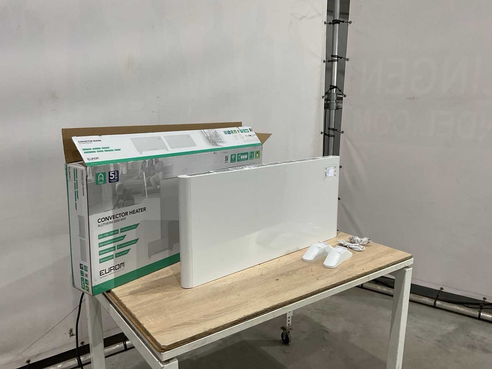 Verpakking kan beschadigd zijn; is beschadigd; heater heeft kleine deuk Merk: Eurom Type: Alutherm 2000 wifi Aansluiting: 220V Totale afmeting L: 920mm Totale afmeting Breedte: 50mm Totale afmeting Hoogte: 430mm