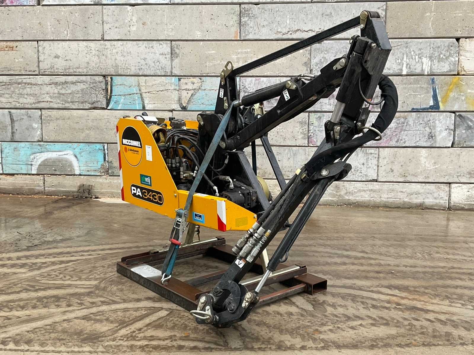 Armlengte 4 meter; max. horizontale reikwijdte 3.40 m; v.v. aftakas aangedreven en joystick besturing; incl. frame met lepeluitsparingen Merk: Mcconnel Type: PA3430 Bouwjaar: 2019 Serienummer: M1957604 Totale afmeting L: 2100mm Totale afmeting Breedte: 1100mm Totale afmeting Hoogte: 1750mm Eigen gewicht: 530kg