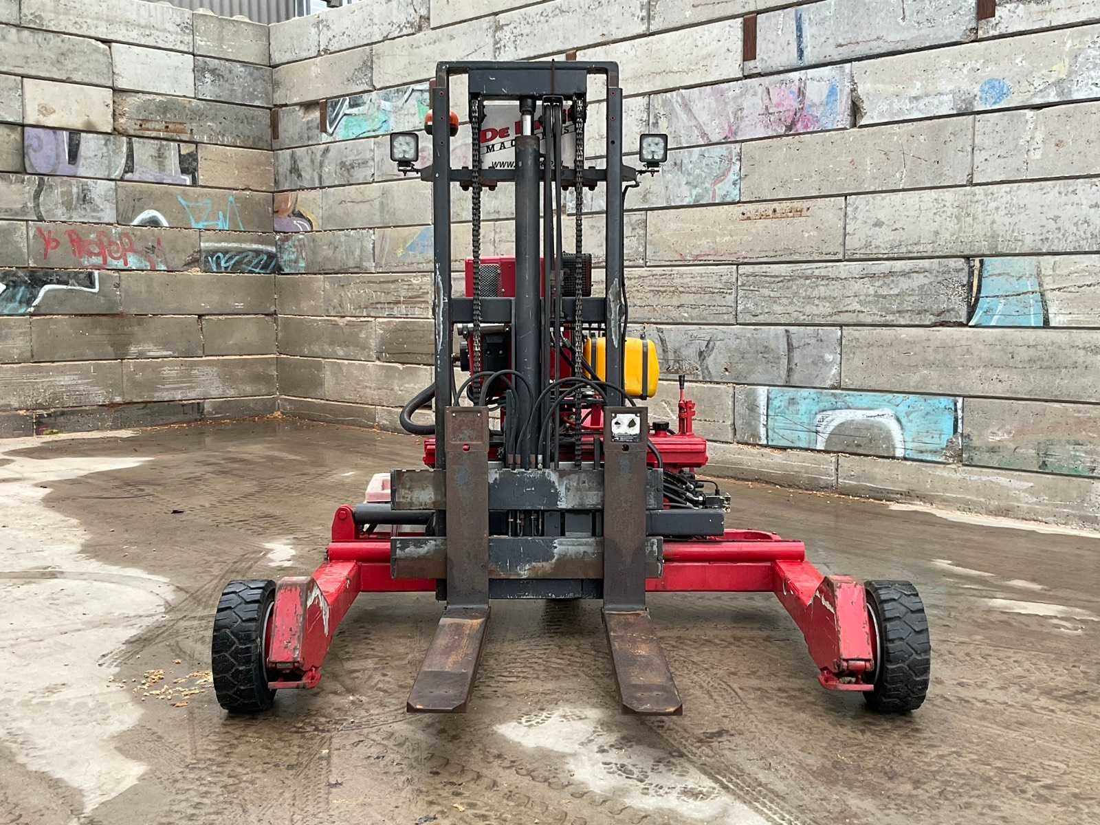 Merk: Kooiaap Type: ST2-3-3-2028 Bouwjaar: 1988 Brandstof: Diesel Aantal wielen: 3 Side-shift: true Eigen gewicht: 1300kg Hefvermogen: 2000kg Lepellengte: 1200mm Max. hefhoogte: 2800mm Vol rubber banden: true Minimale doorrijhoogte: 2200mm Diesel: true