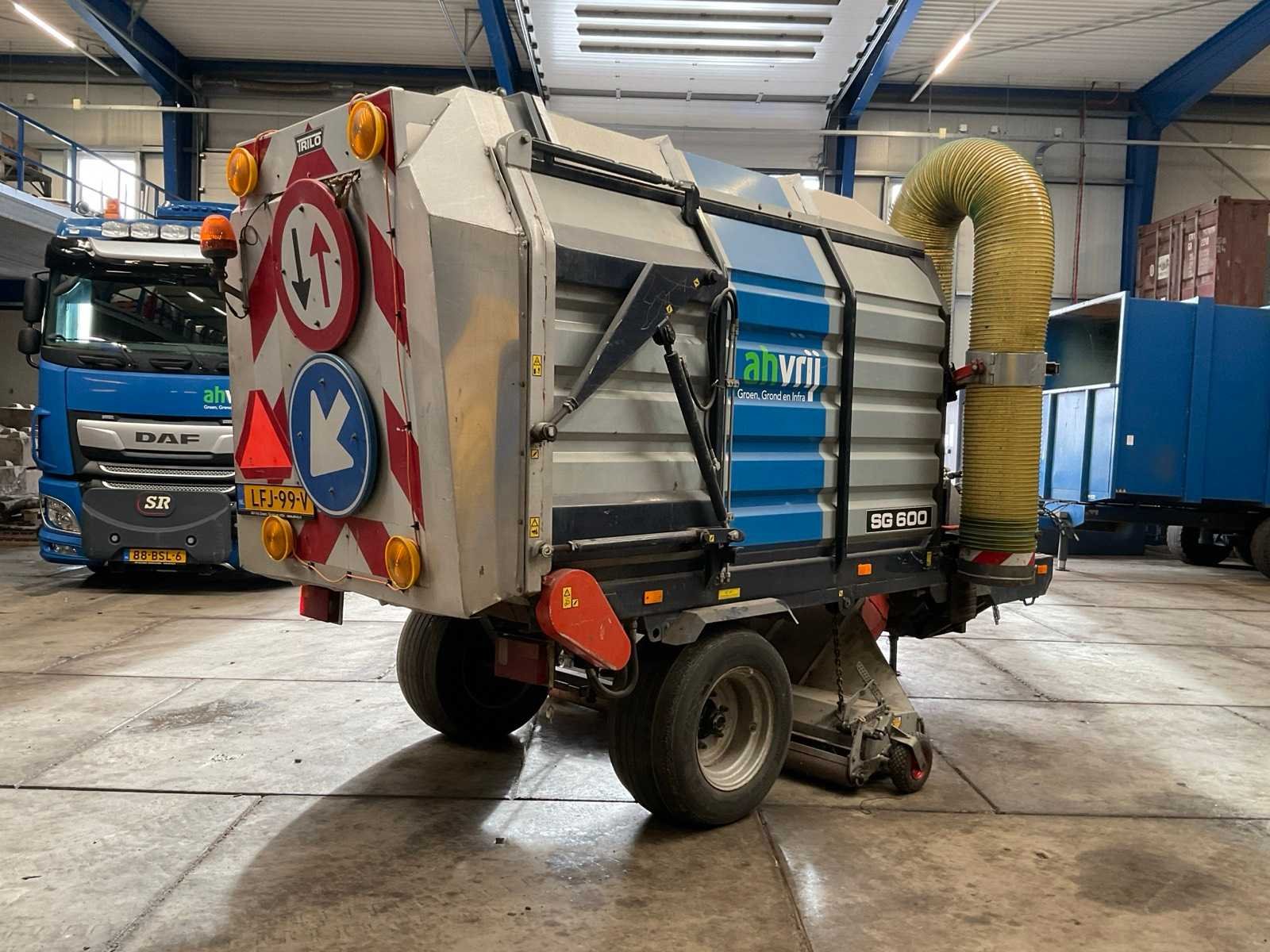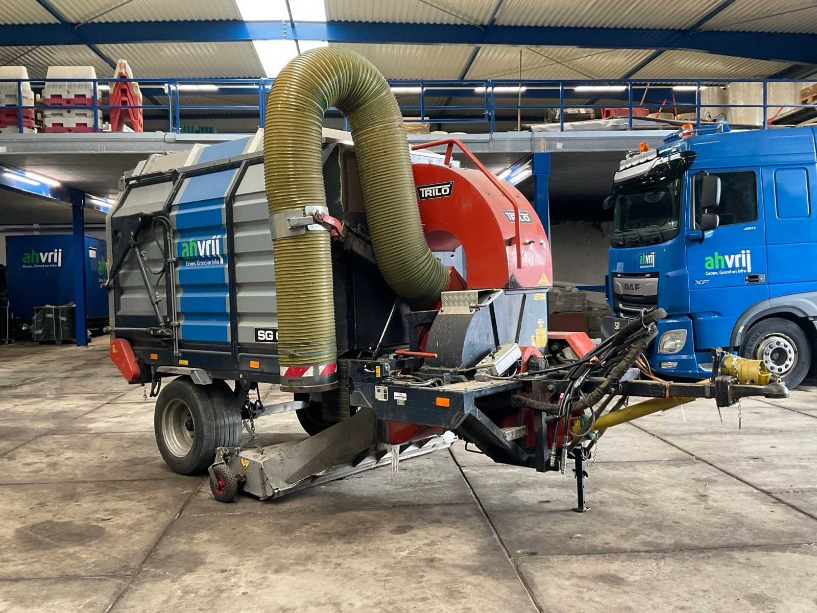 Inhoud 4 m3; max. rijsnelheid 25 km/u; bandenmaat 15.0/55-17; v.v. flexibele afzuigarm en aftakas Merk: Trilo Type: SG 600 Vacuum Sweeper Bouwjaar: 2006 Serienummer: 060453 Kenteken: LFJ-99-V Werkbreedte: 2000mm Eigen gewicht: 2240kg
