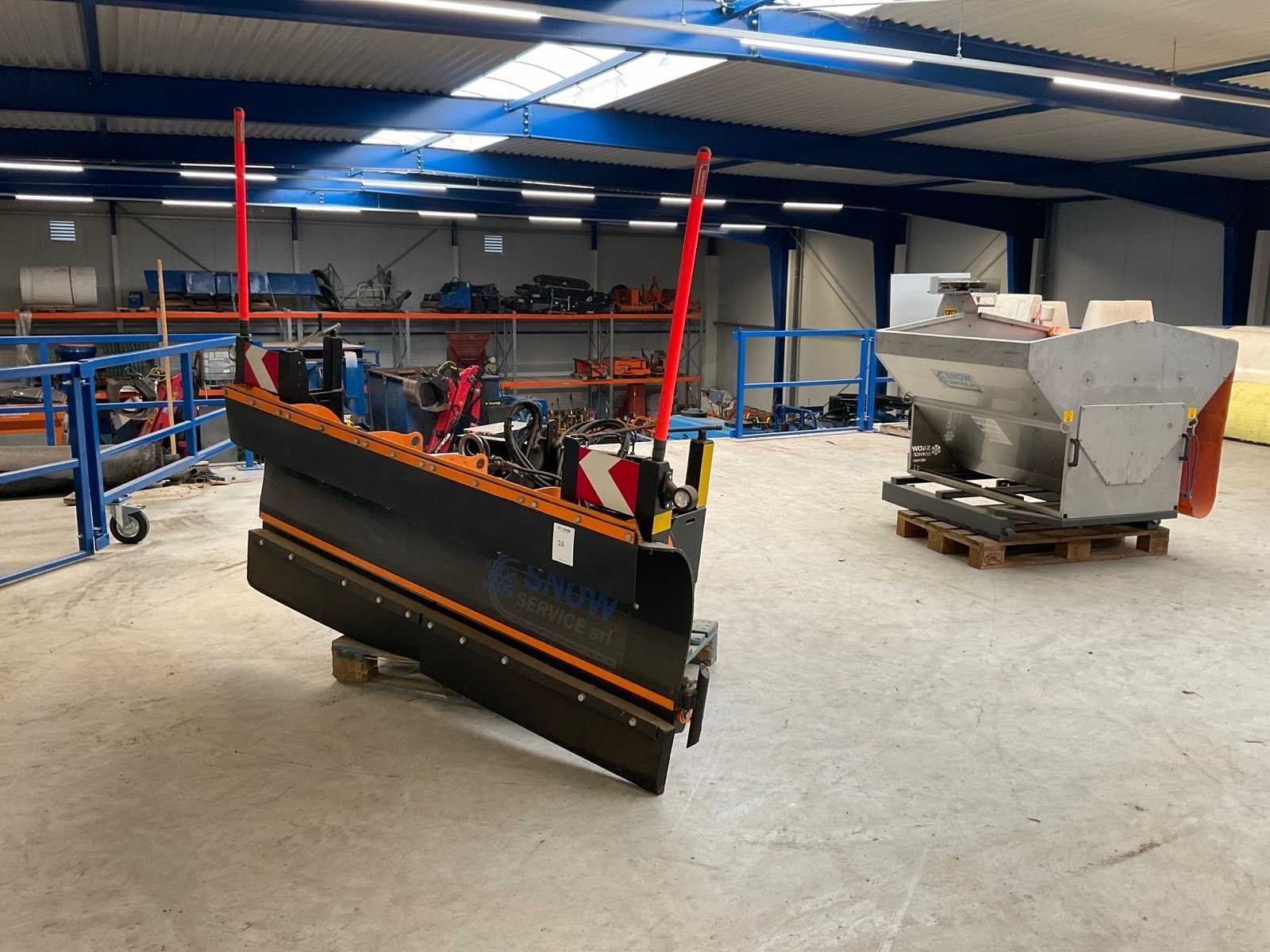 Bladhoogte ca. 800 mm; v.v. “Bobcat” aansluiting; strooibak afm. ca. 1800x1300x1400 mm Merk: Snow Service SRL Type: Nanotech 2.00 Bouwjaar: 2018 Werkbreedte: 2000mm Eigen gewicht: 380kg