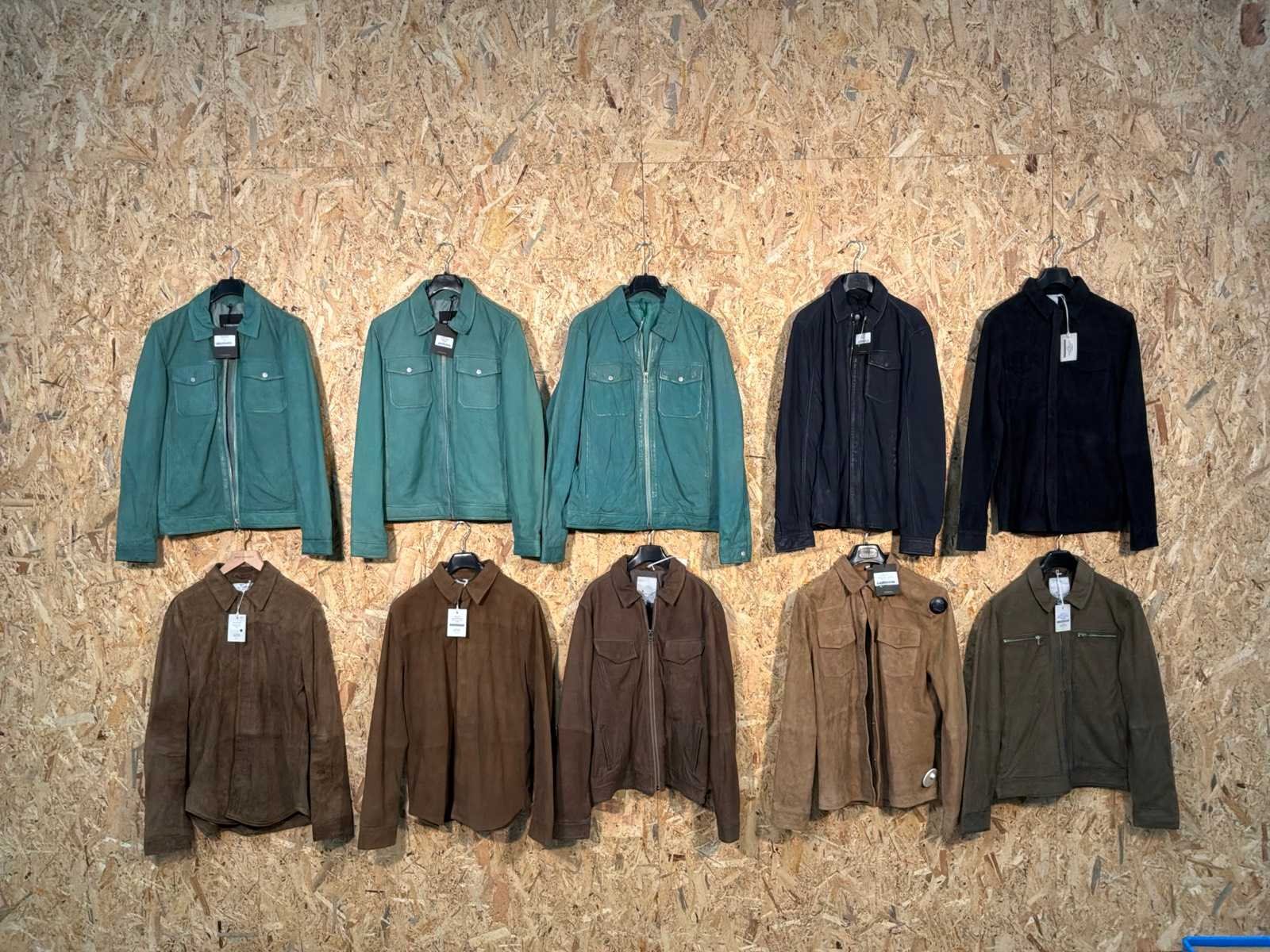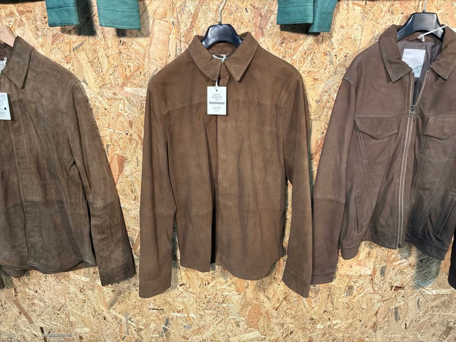 Diverse heren leren jackets en overshirts in verschillende modellen, kleuren en maten. Inclusief kledinghangers. Mochten erop de items beveiligingstags zitten worden deze nog verwijderd voor de uitleverdag. Merk: Goose-craft