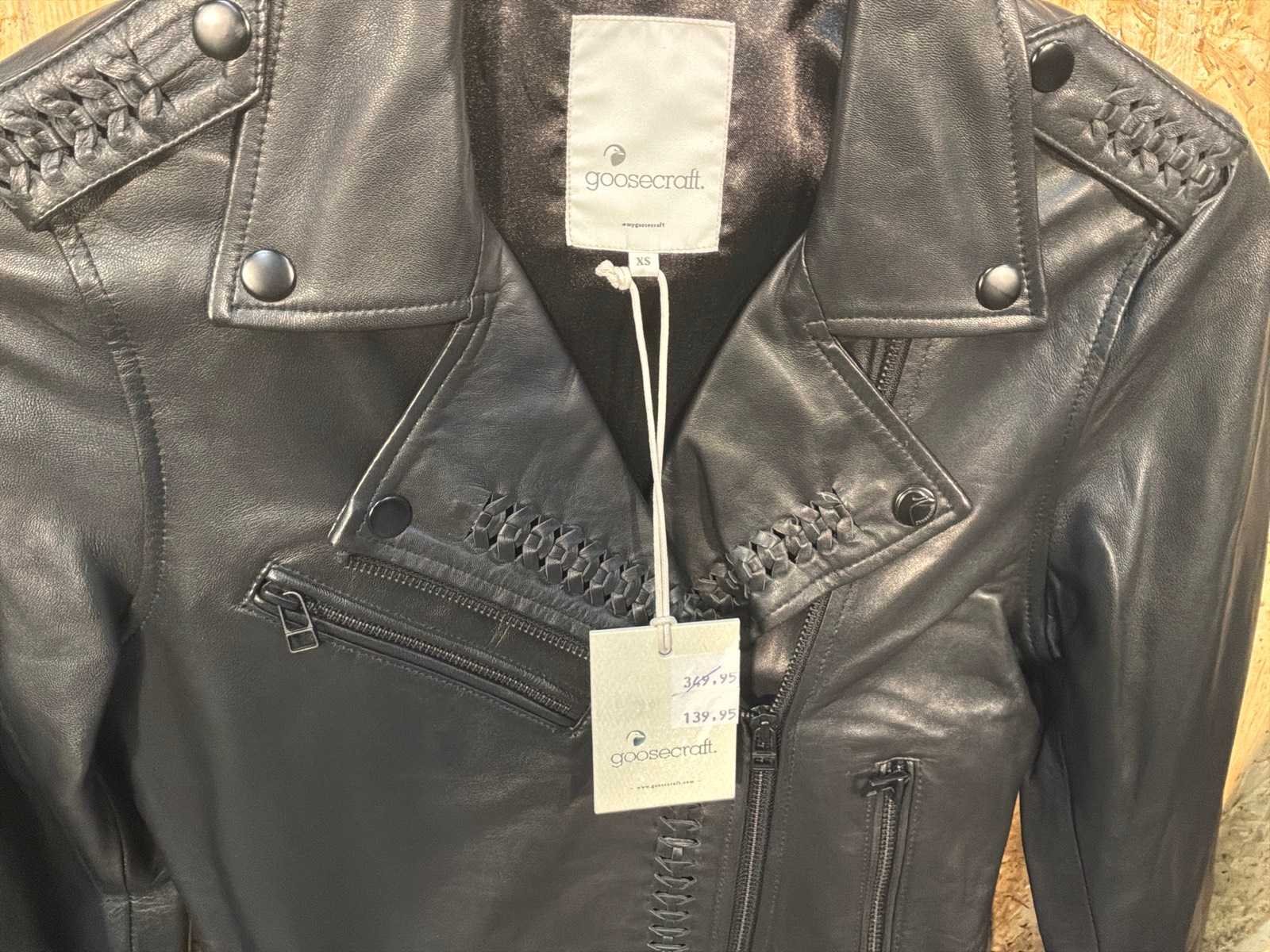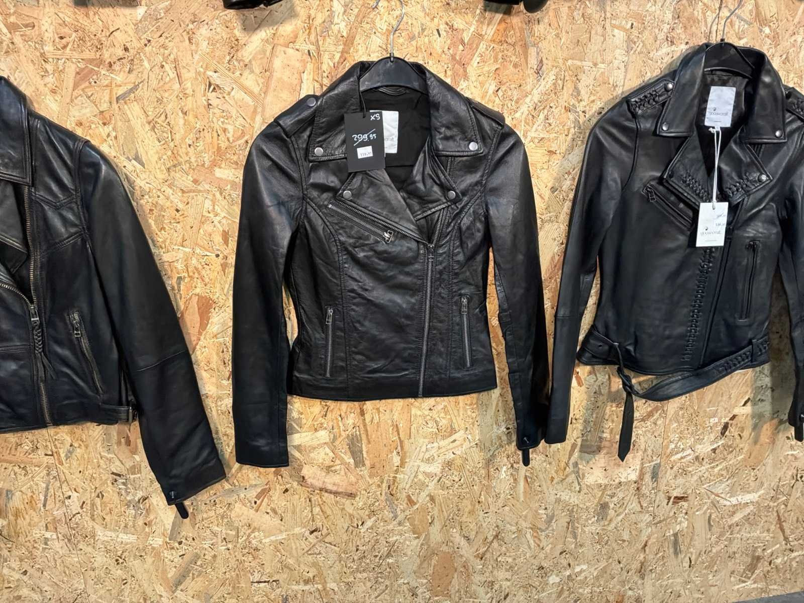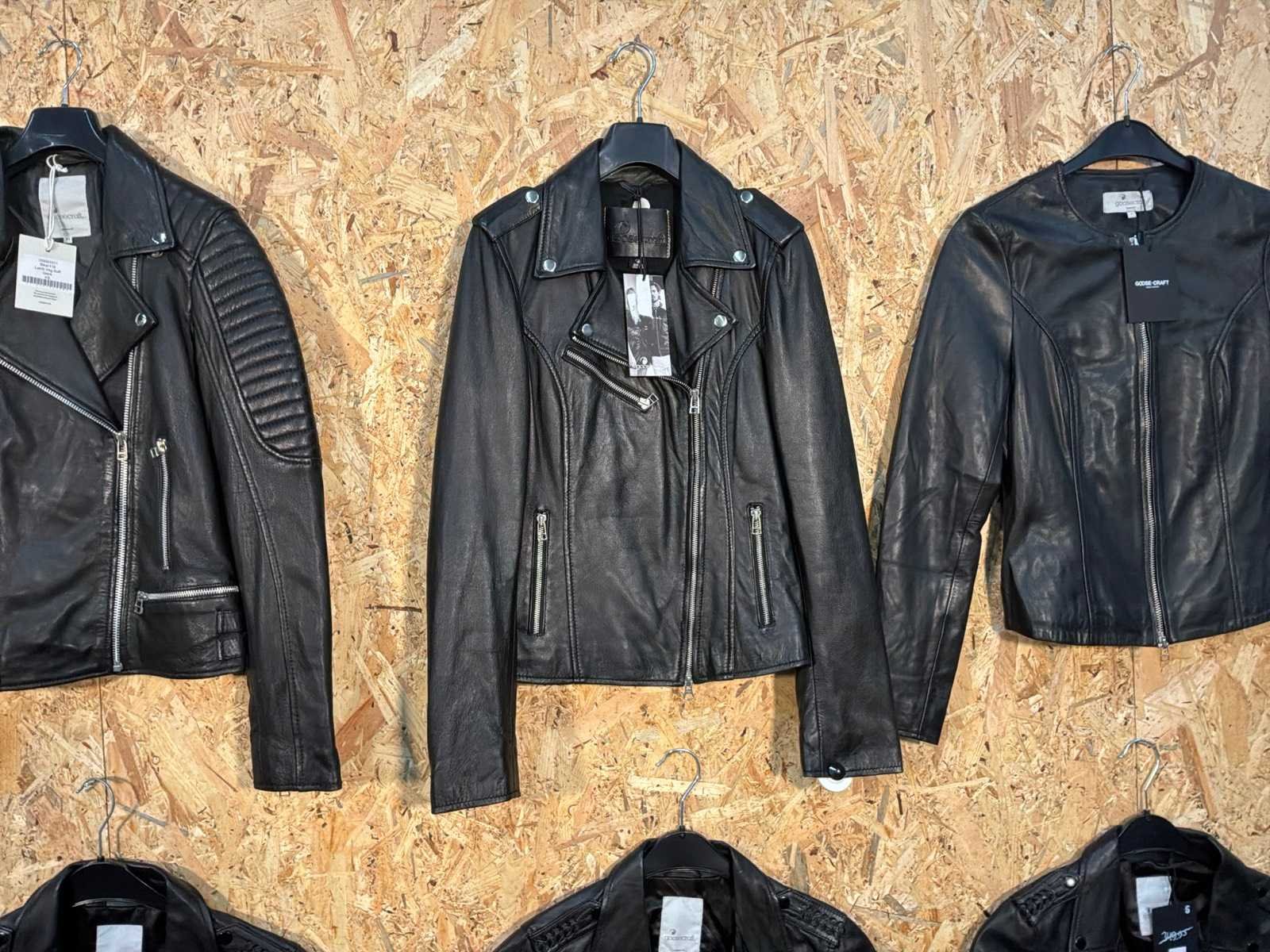 Diverse damen leren jassen in verschillende modellen, kleuren en maten. Inclusief kledinghangers. Mochten erop de items beveiligingstags zitten worden deze nog verwijderd voor de uitleverdag. Merk: Goose-craft