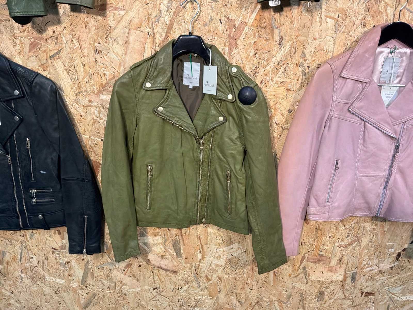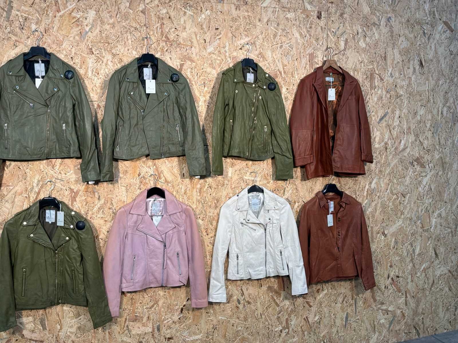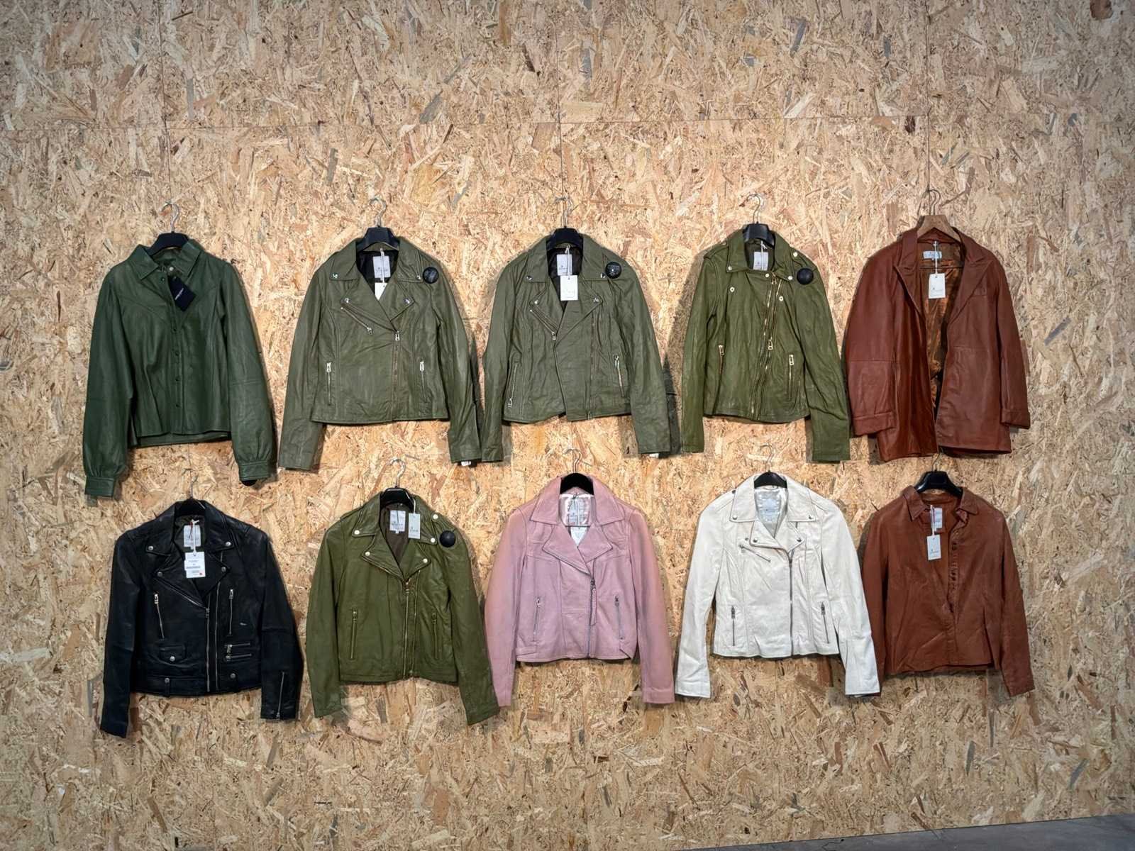 Diverse damen leren jassen en blazers in verschillende modellen, kleuren en maten. Inclusief kledinghangers. Mochten erop de items beveiligingstags zitten worden deze nog verwijderd voor de uitleverdag. Merk: Goose-craft