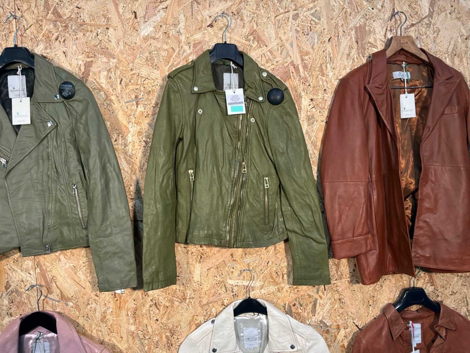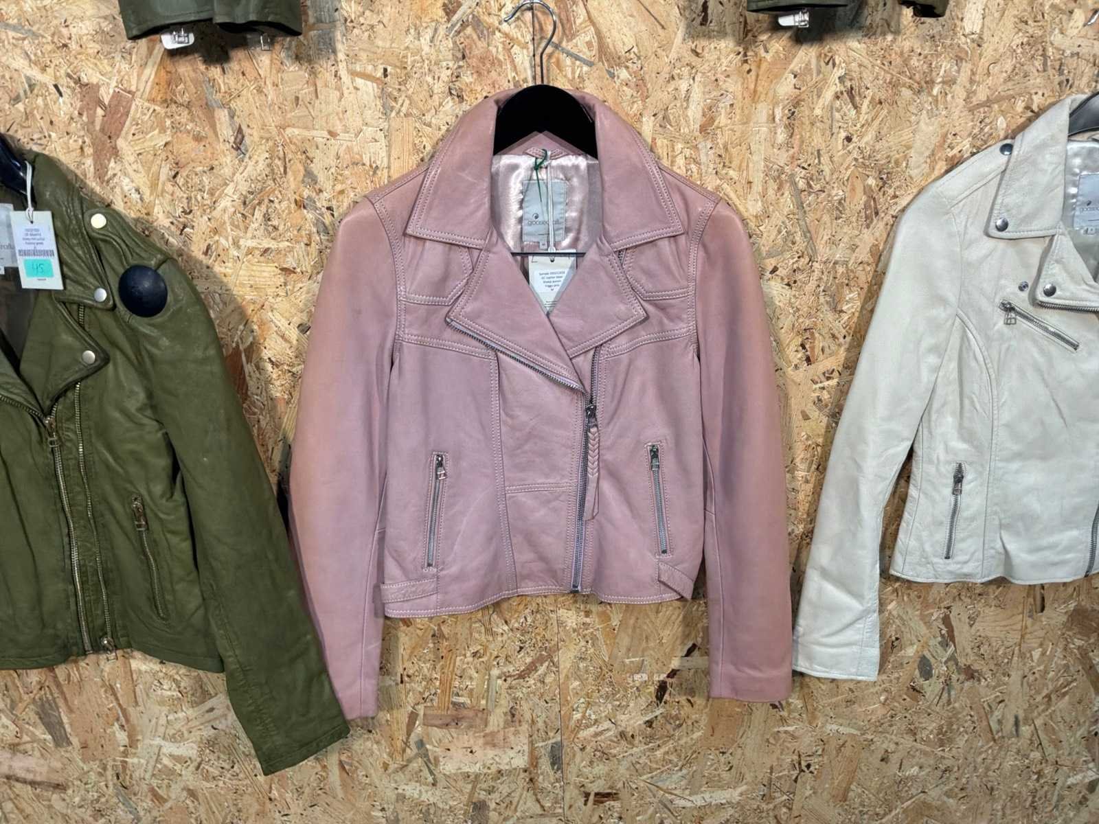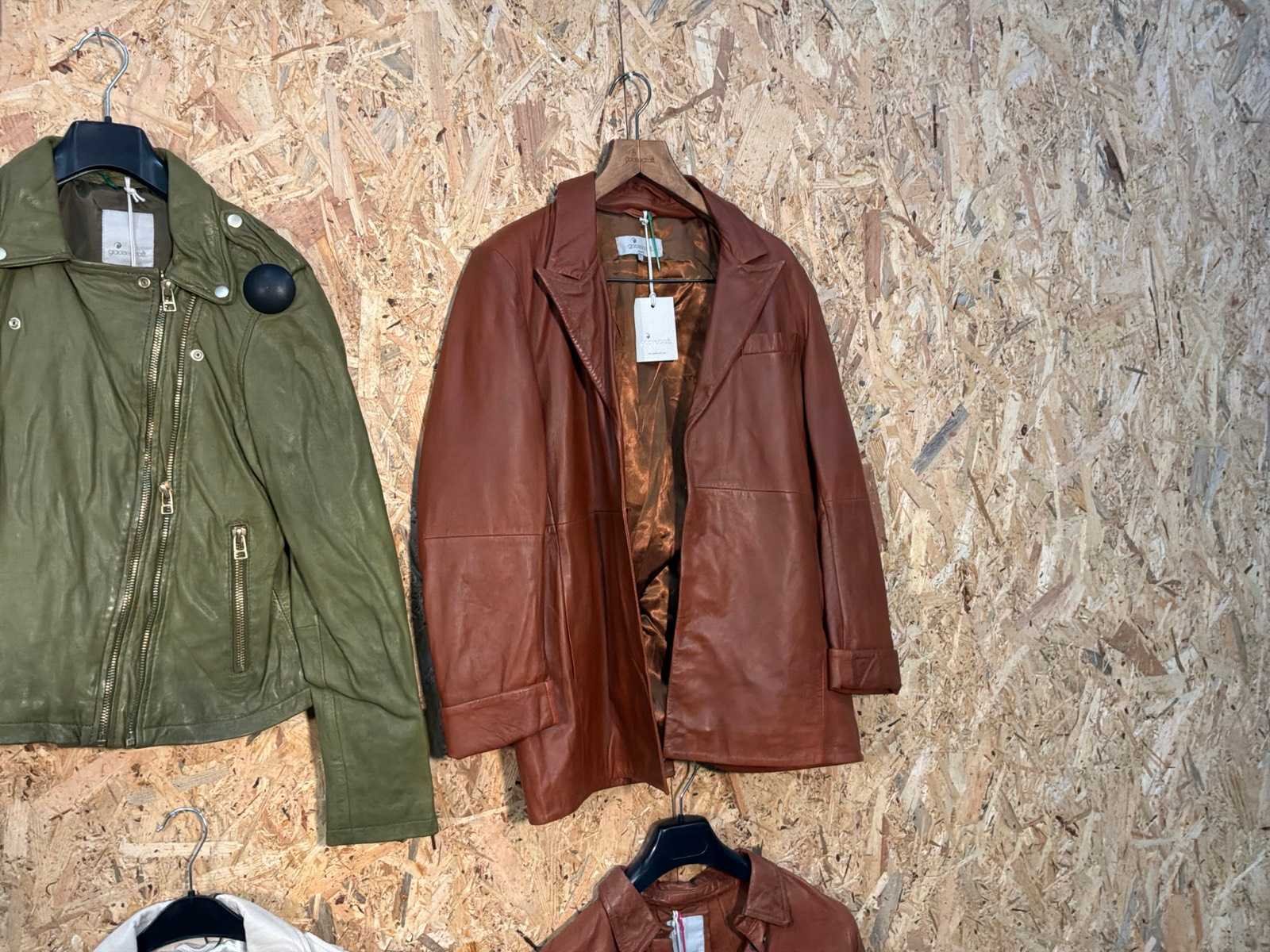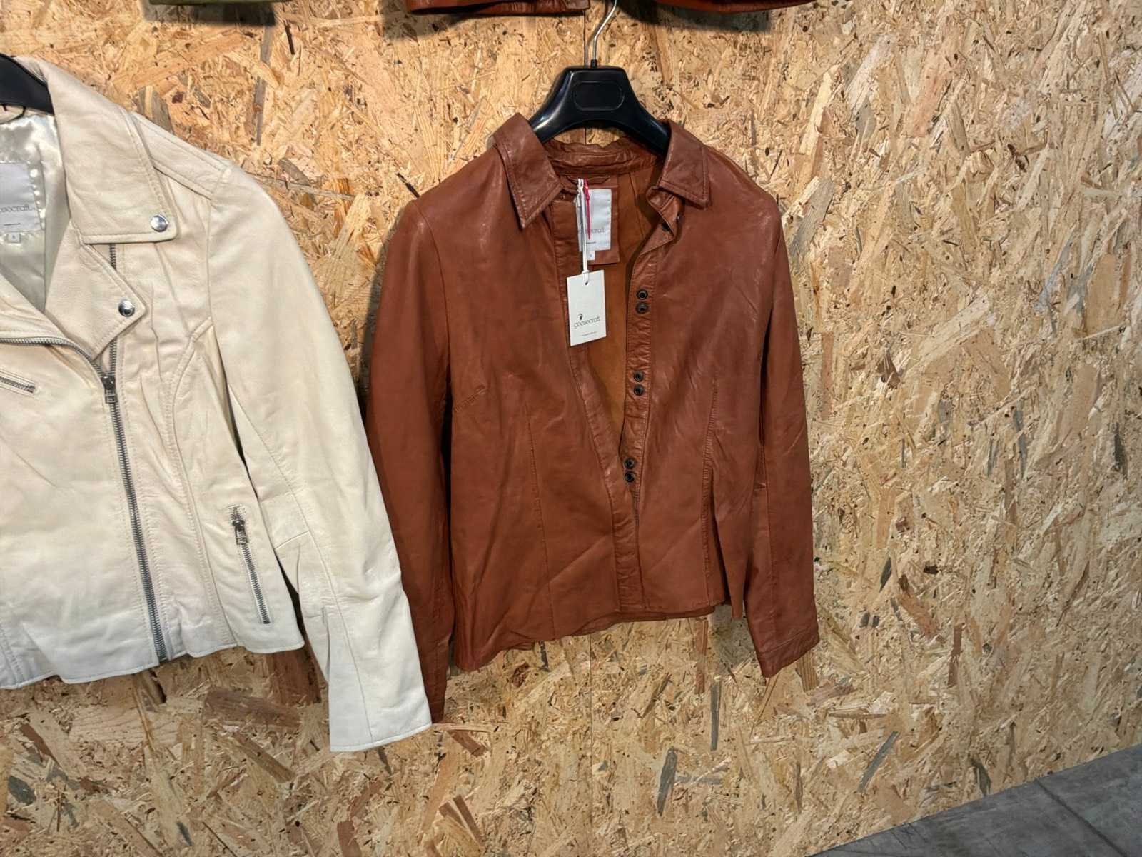 Diverse damen leren jassen en blazers in verschillende modellen, kleuren en maten. Inclusief kledinghangers. Mochten erop de items beveiligingstags zitten worden deze nog verwijderd voor de uitleverdag. Merk: Goose-craft