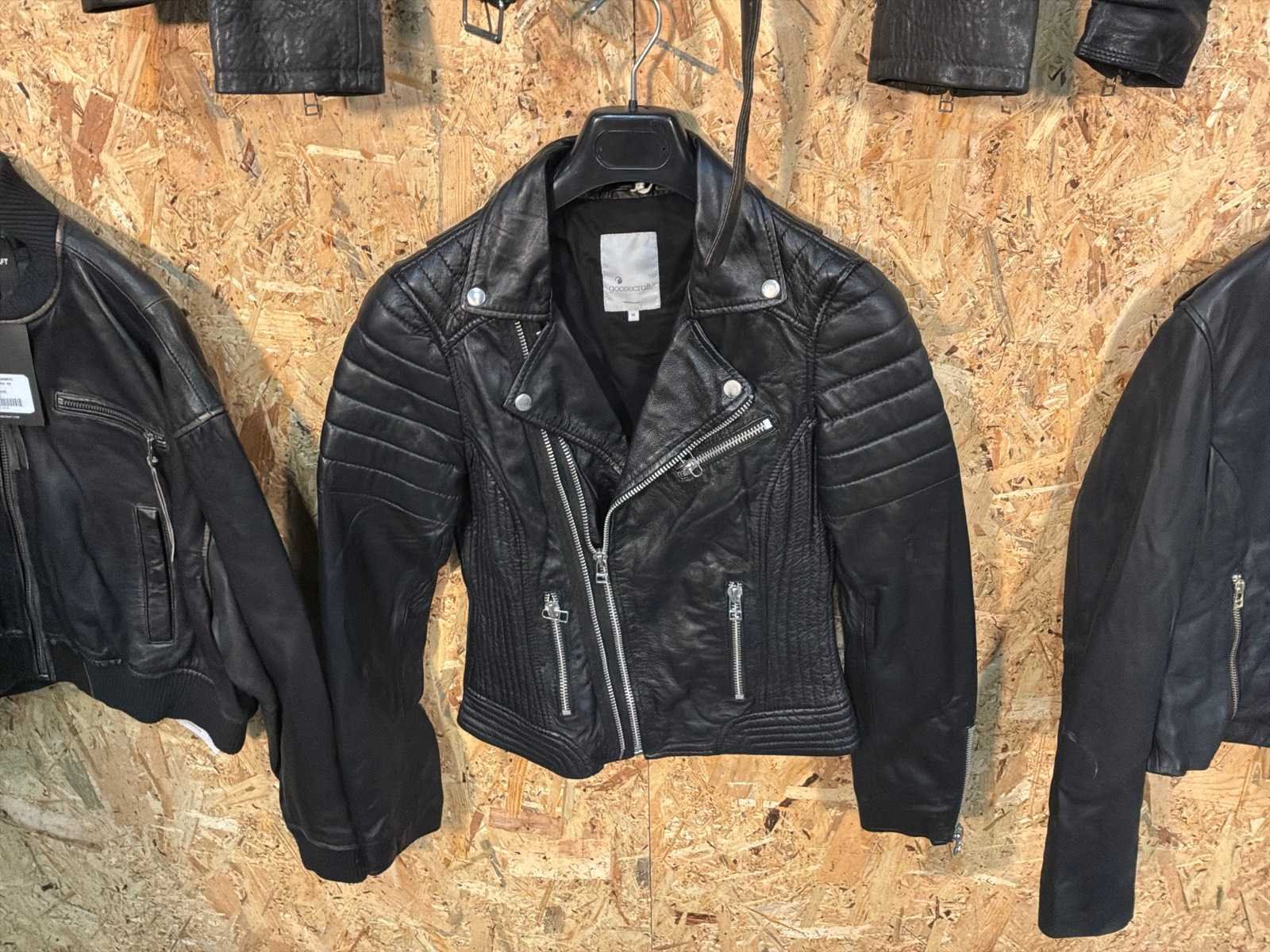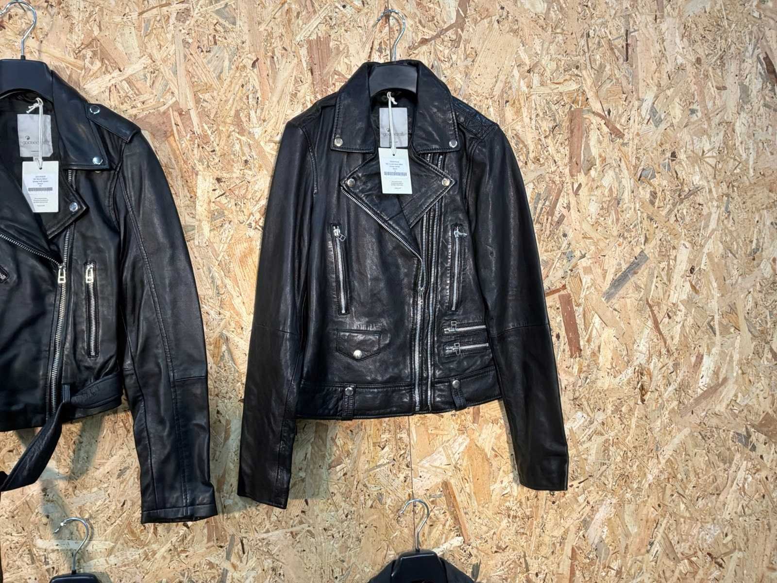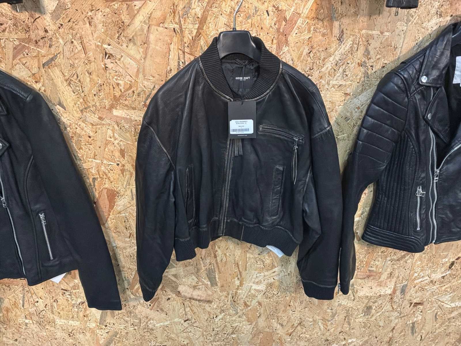 Diverse leren jassen verschillende modellen, kleuren en maten. Inclusief kledinghangers. Mochten erop de items beveiligingstags zitten worden deze nog verwijderd voor de uitleverdag. Merk: Goose-craft