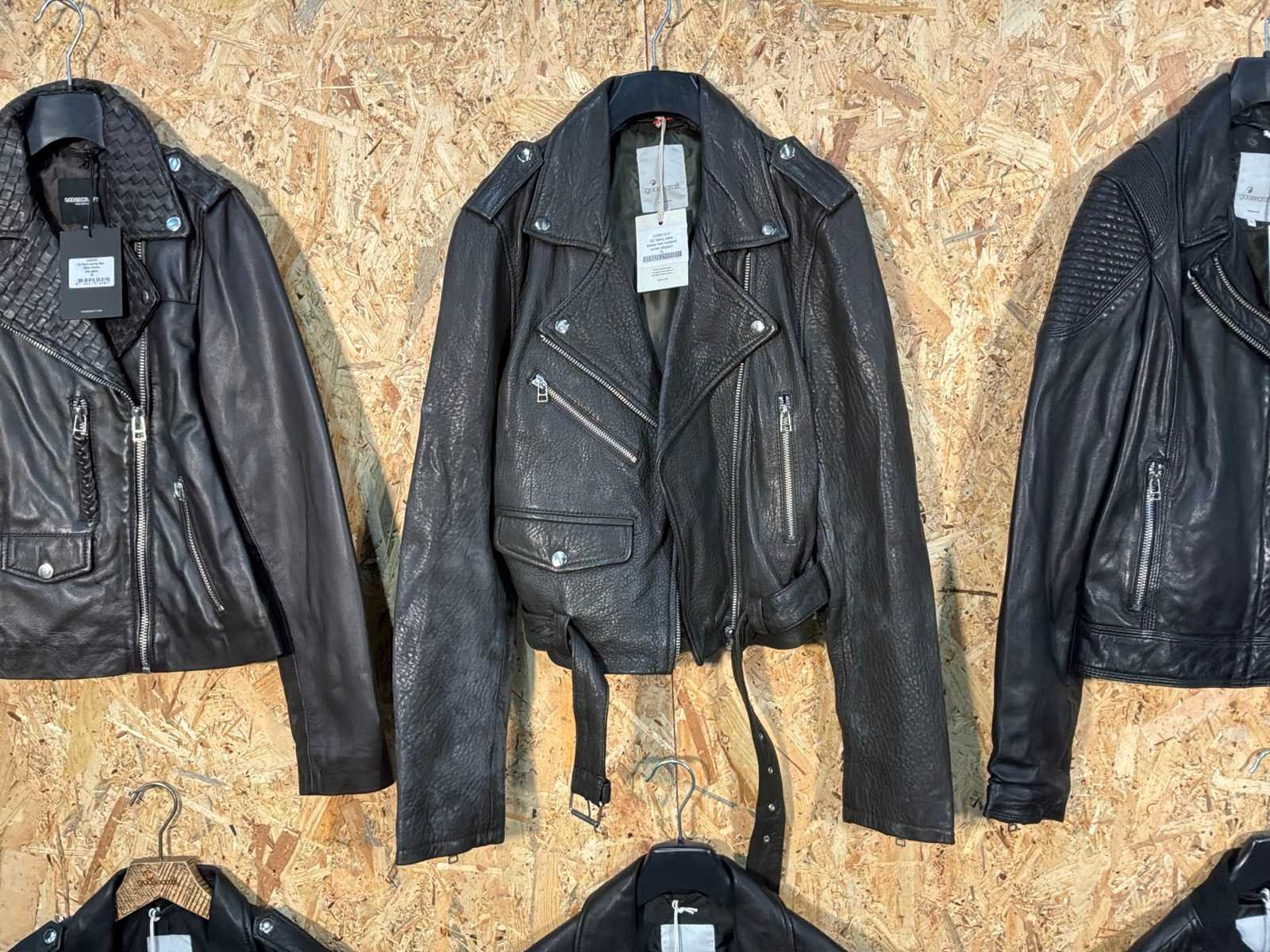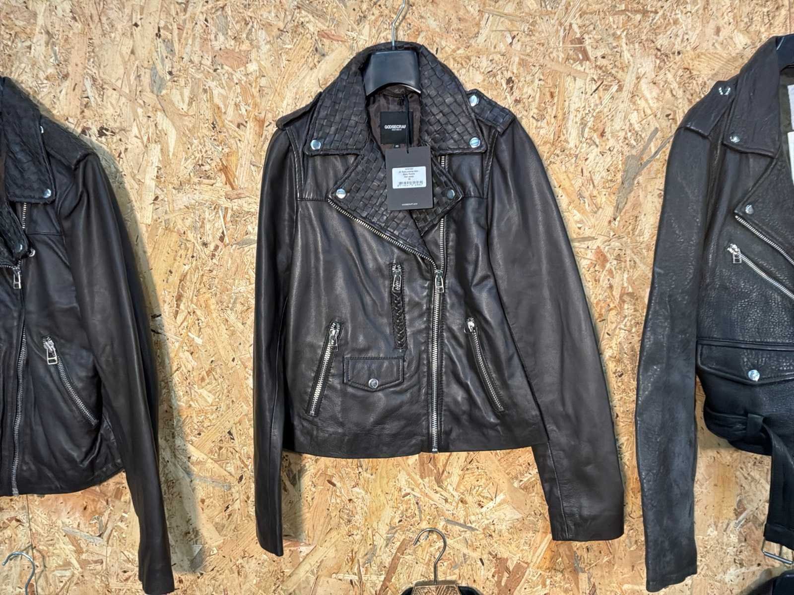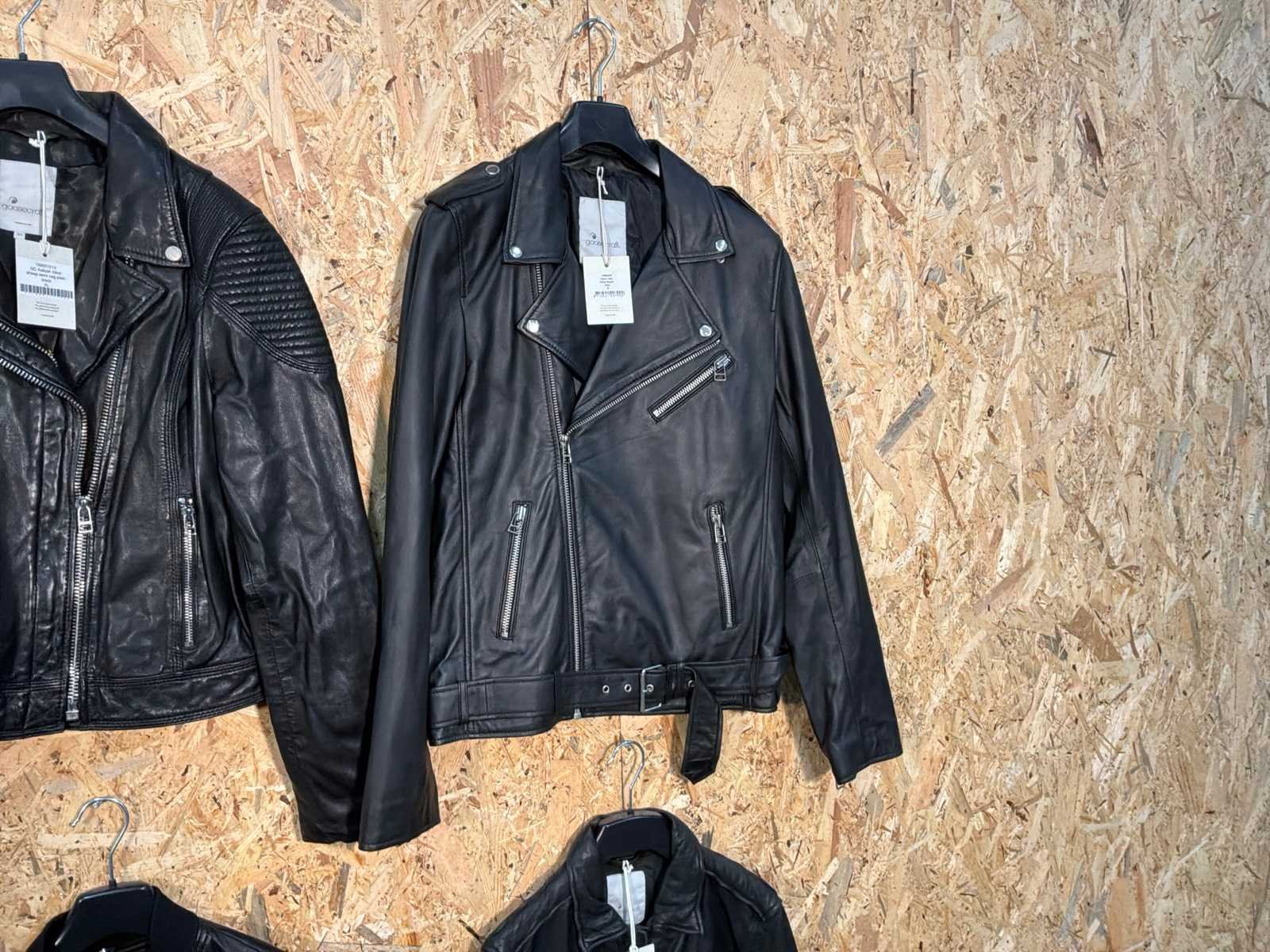 Diverse leren jassen verschillende modellen, kleuren en maten. Inclusief kledinghangers. Mochten erop de items beveiligingstags zitten worden deze nog verwijderd voor de uitleverdag. Merk: Goose-craft
