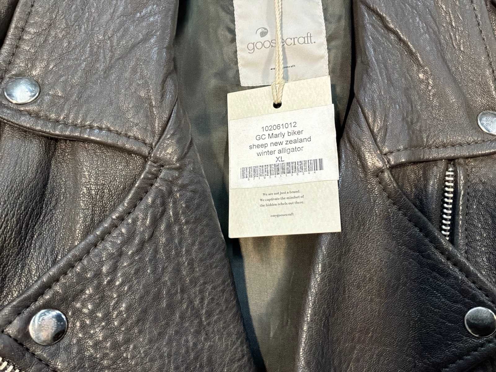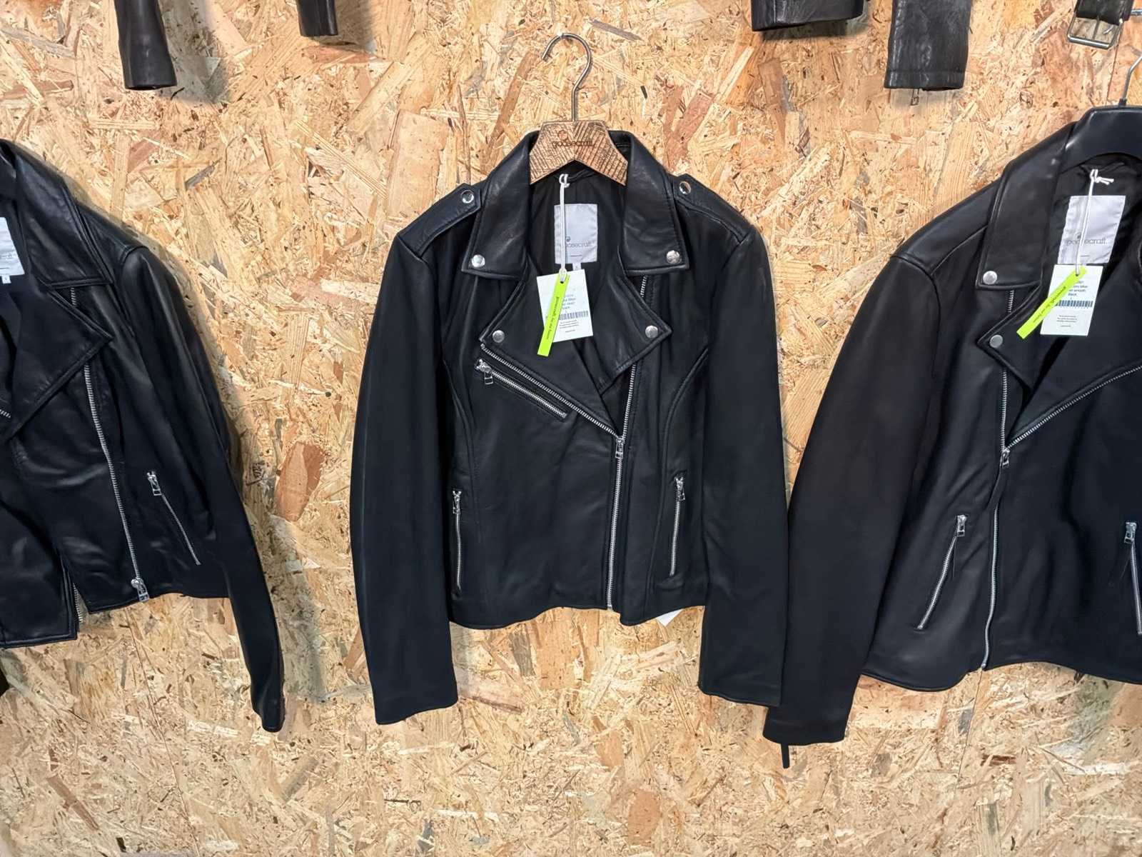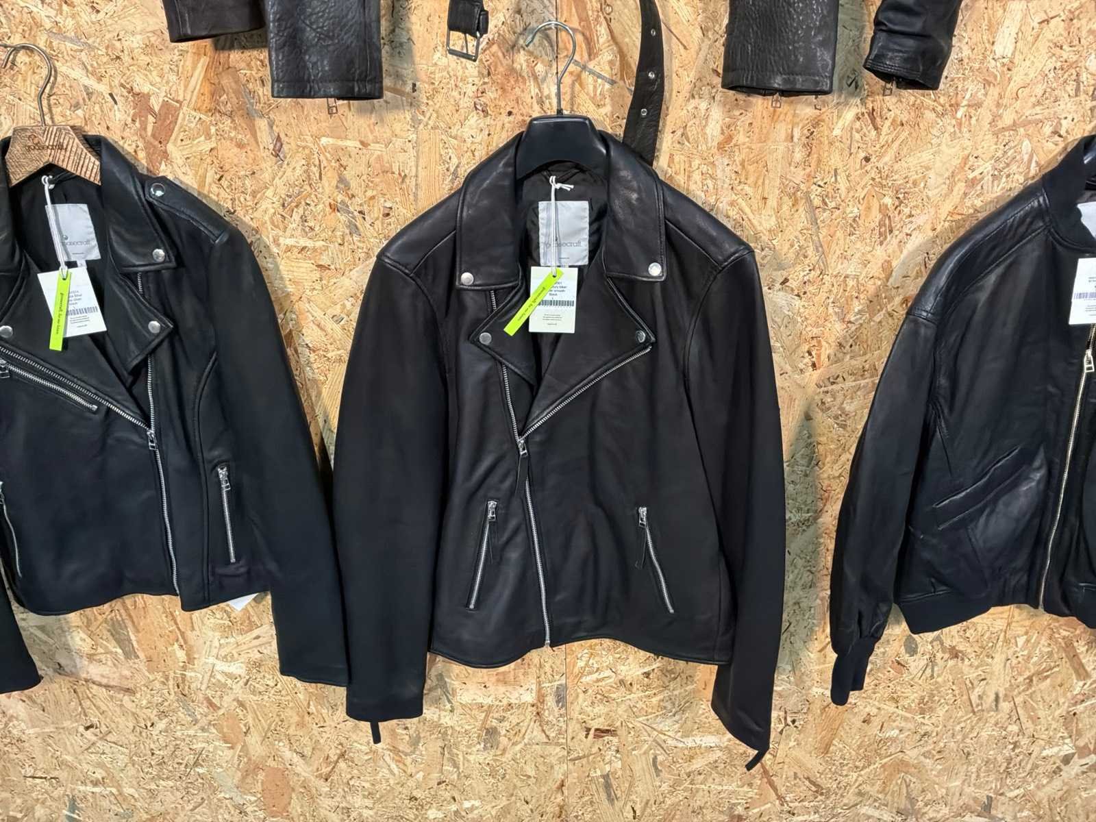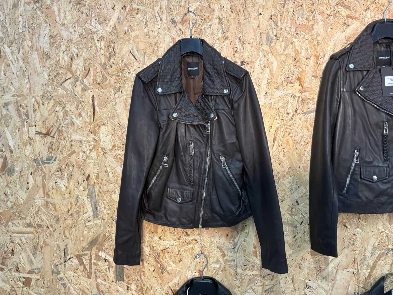 Diverse leren jassen verschillende modellen, kleuren en maten. Inclusief kledinghangers. Mochten erop de items beveiligingstags zitten worden deze nog verwijderd voor de uitleverdag. Merk: Goose-craft