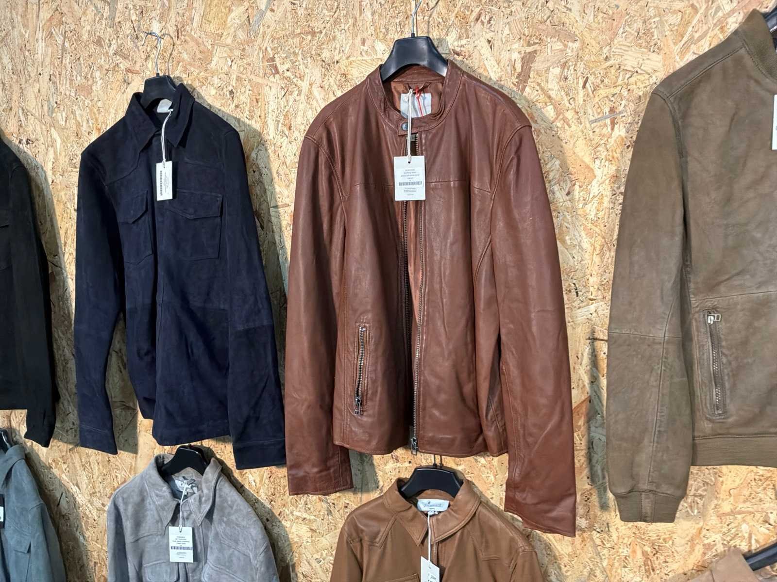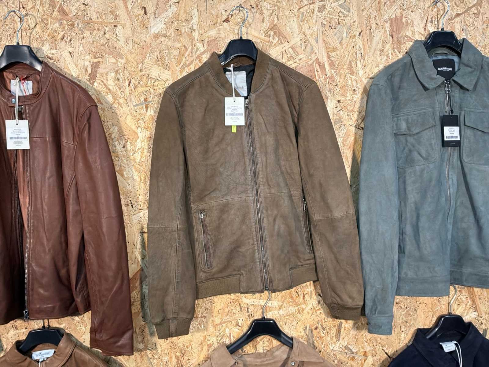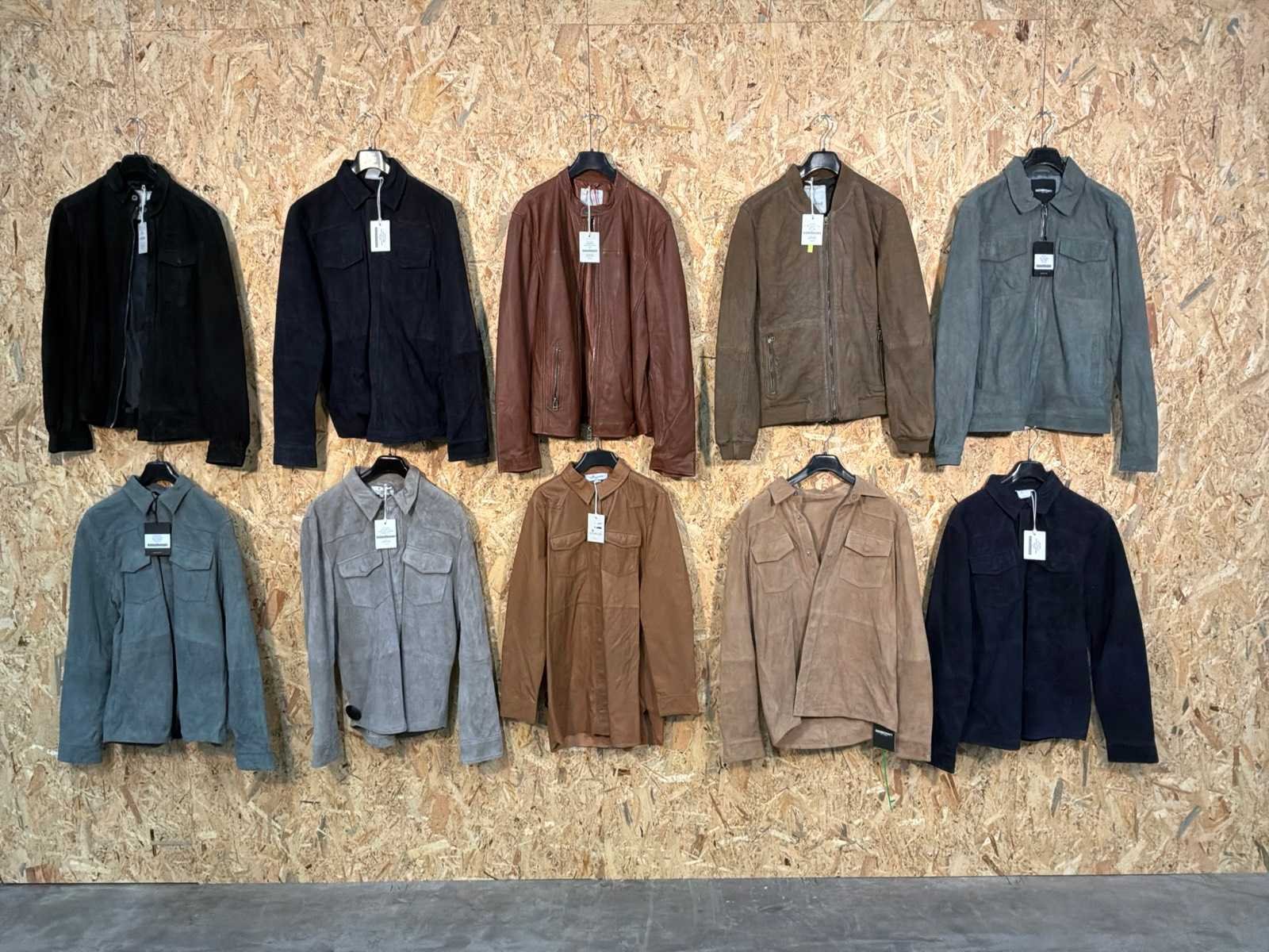 Diverse heren en dames leren jassen en bloezen in verschillende modellen, kleuren en maten. Inclusief kledinghangers. Mochten erop de items beveiligingstags zitten worden deze nog verwijderd voor de uitleverdag. Merk: Goose-craft