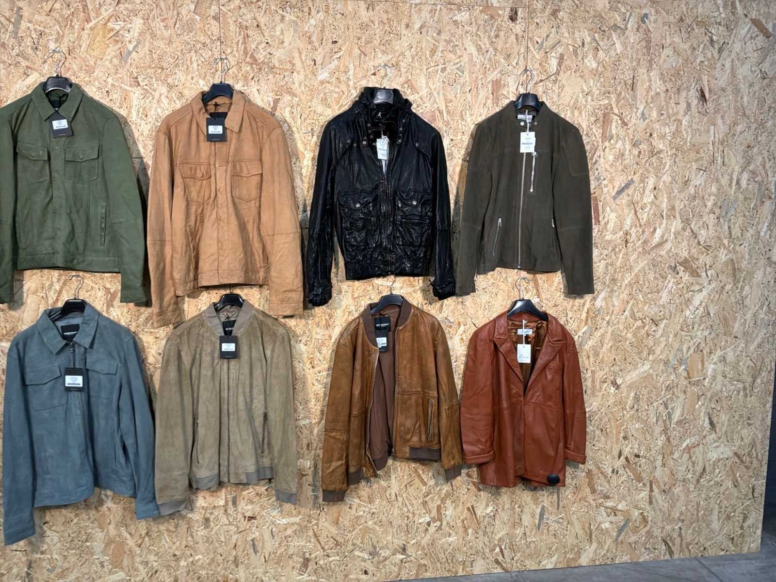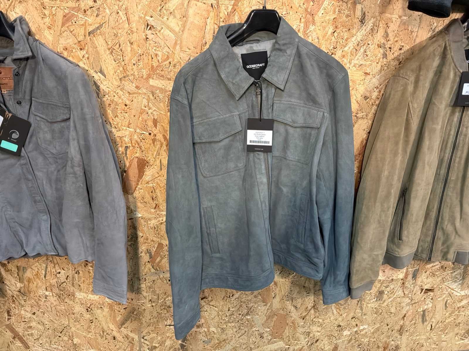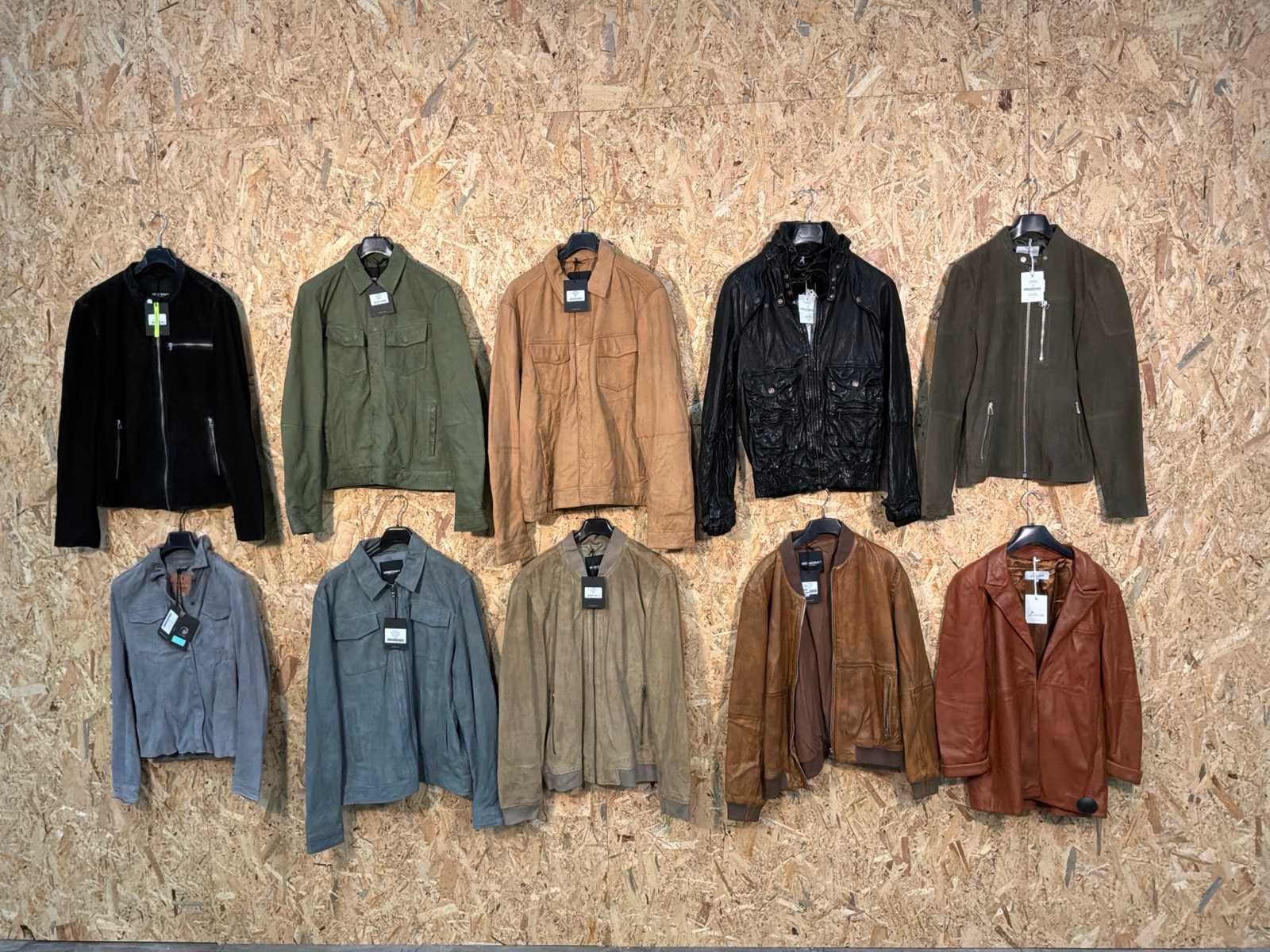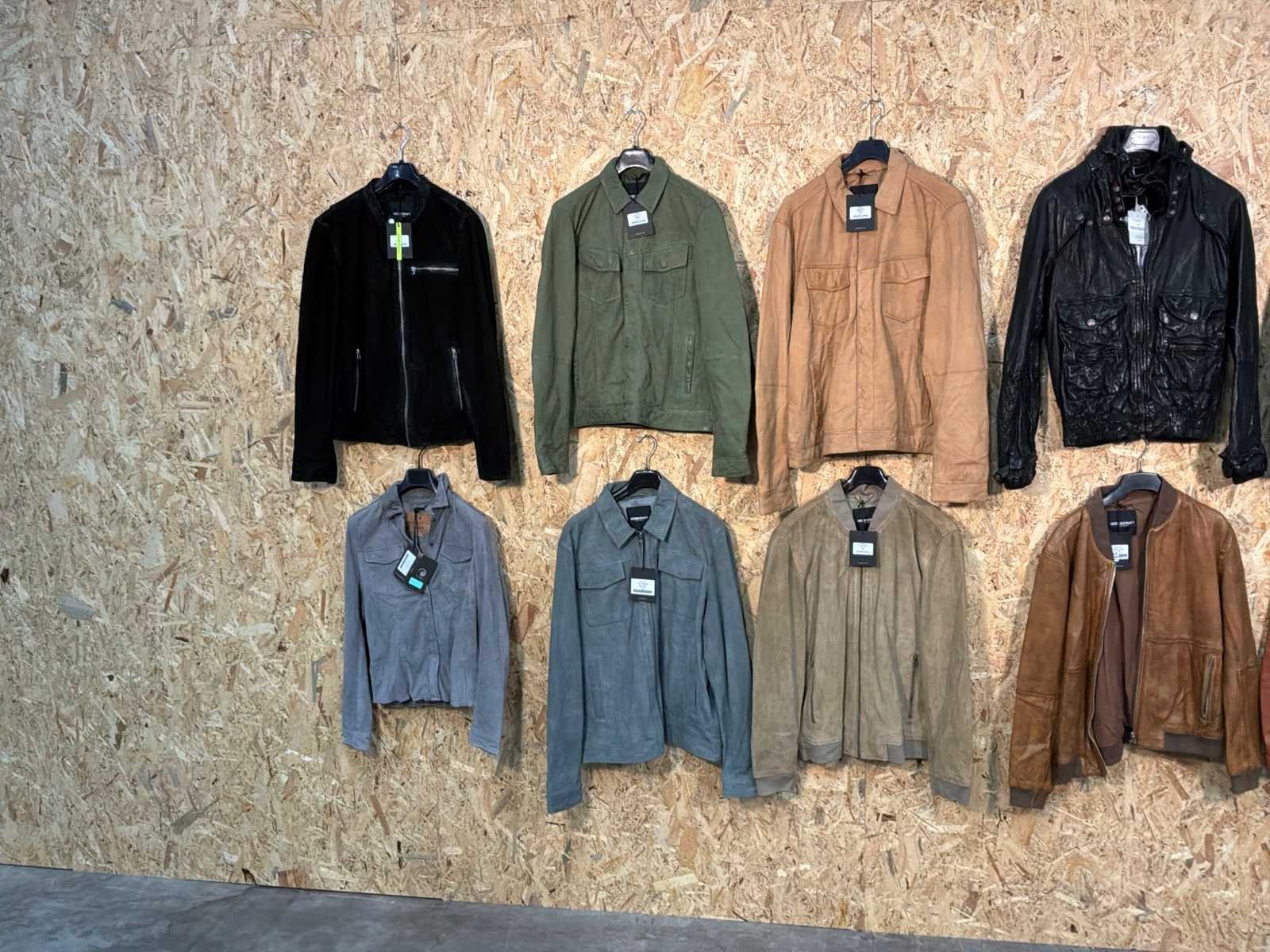 Diverse heren en dames leren jassen en bloezen in verschillende modellen, kleuren en maten. Inclusief kledinghangers. Mochten erop de items beveiligingstags zitten worden deze nog verwijderd voor de uitleverdag. Merk: Goose-craft