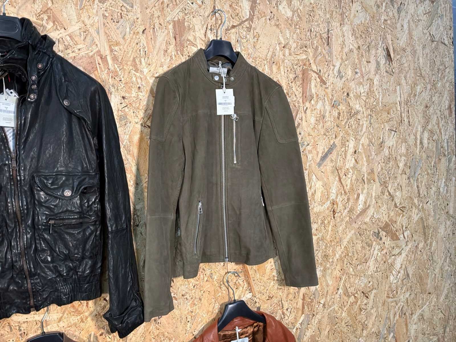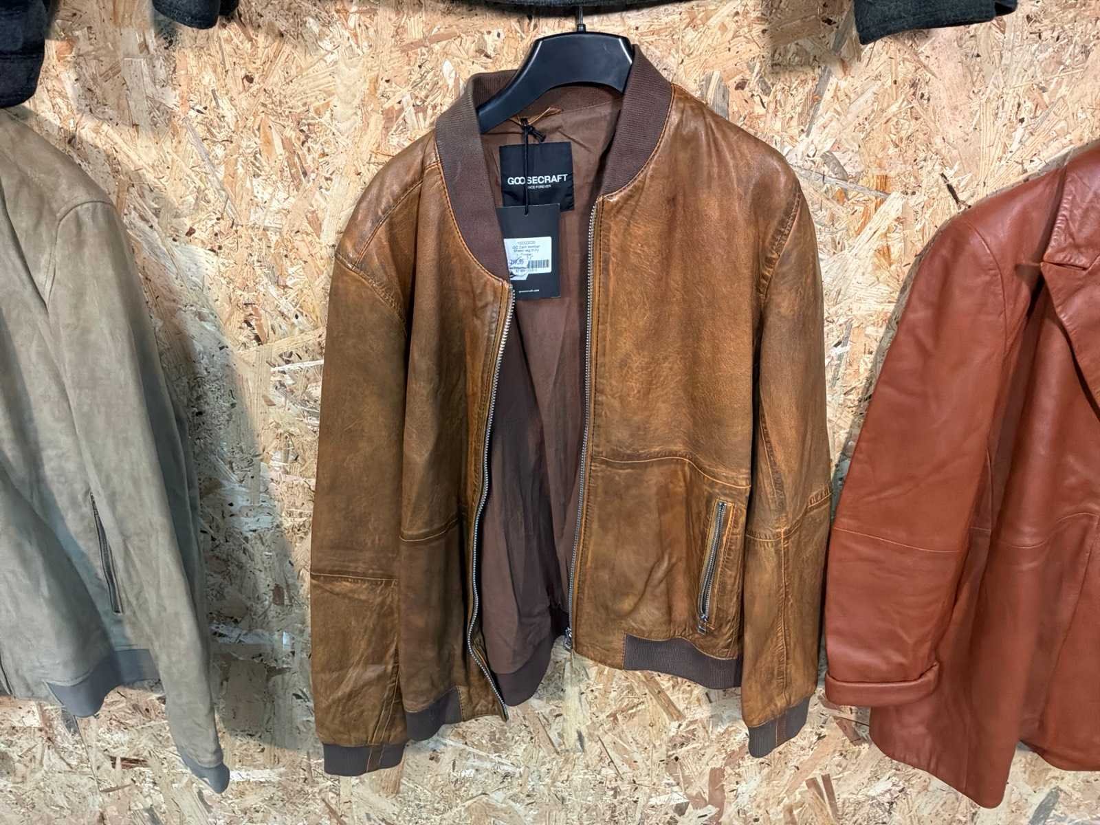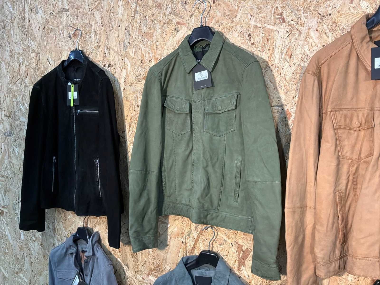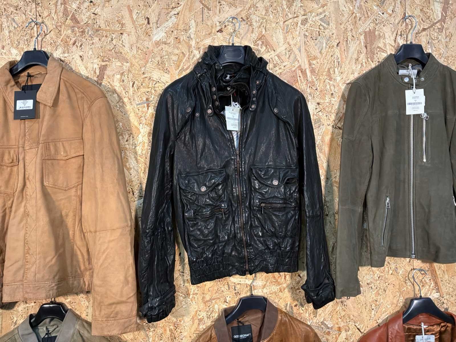 Diverse heren en dames leren jassen en bloezen in verschillende modellen, kleuren en maten. Inclusief kledinghangers. Mochten erop de items beveiligingstags zitten worden deze nog verwijderd voor de uitleverdag. Merk: Goose-craft
