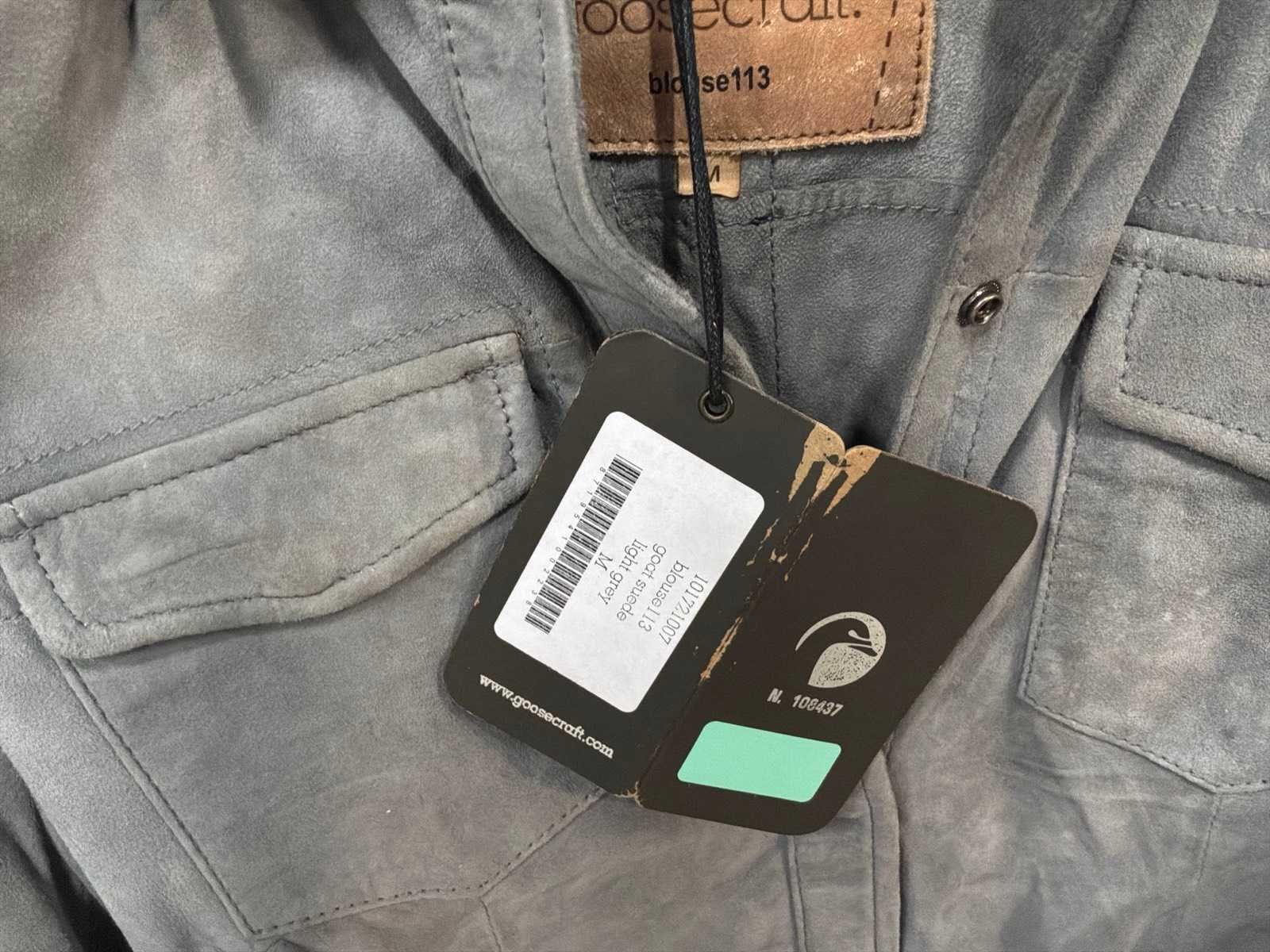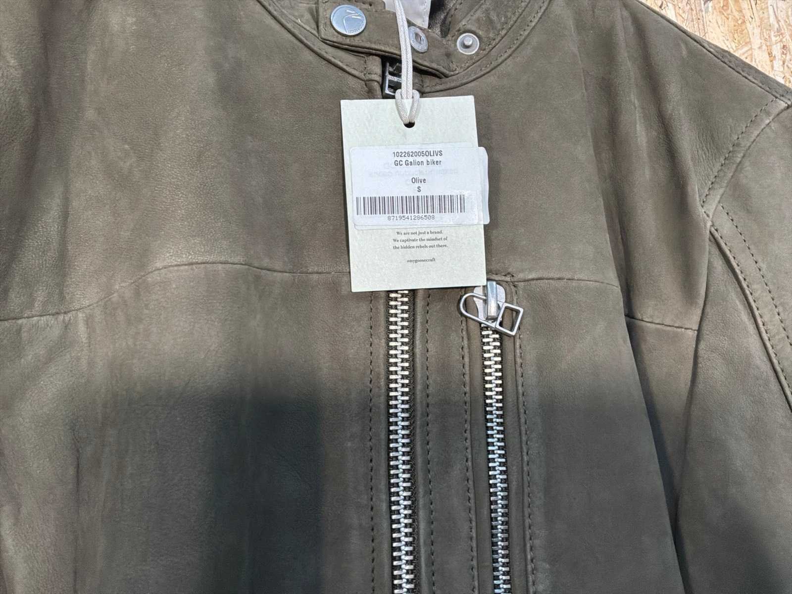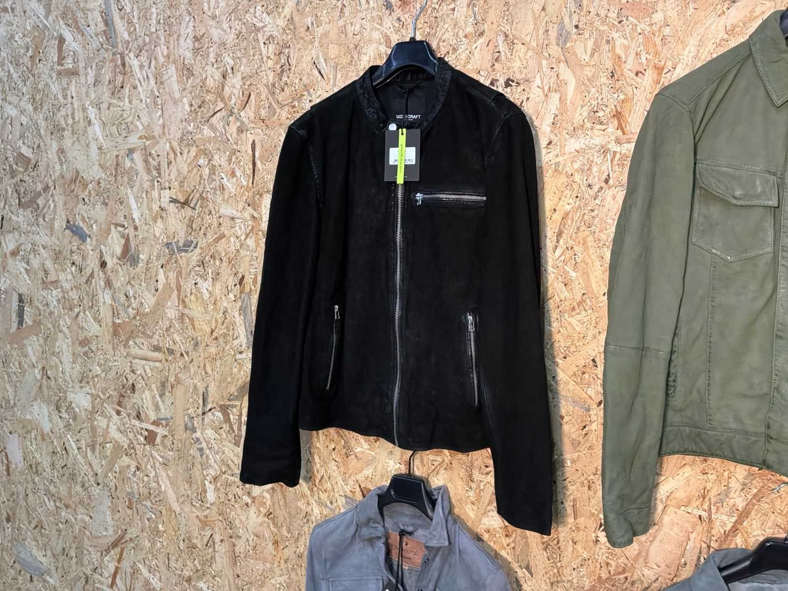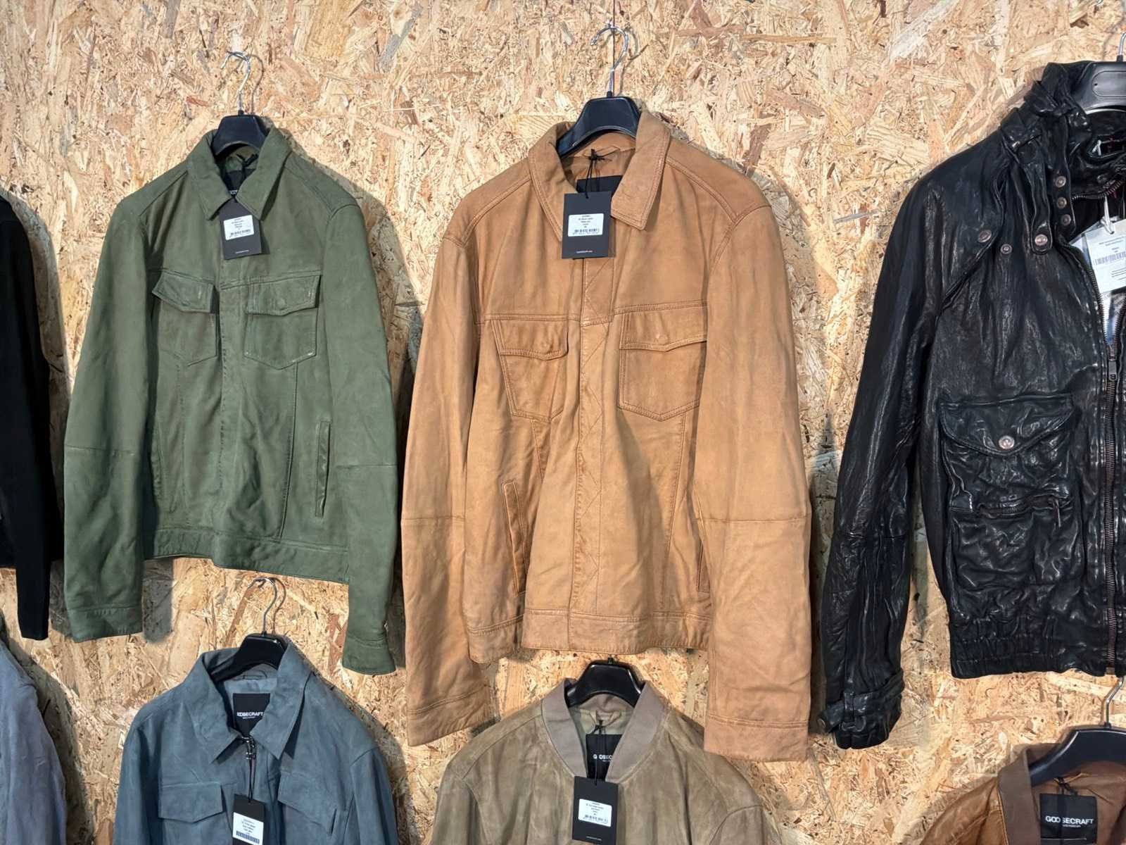 Diverse heren en dames leren jassen en bloezen in verschillende modellen, kleuren en maten. Inclusief kledinghangers. Mochten erop de items beveiligingstags zitten worden deze nog verwijderd voor de uitleverdag. Merk: Goose-craft