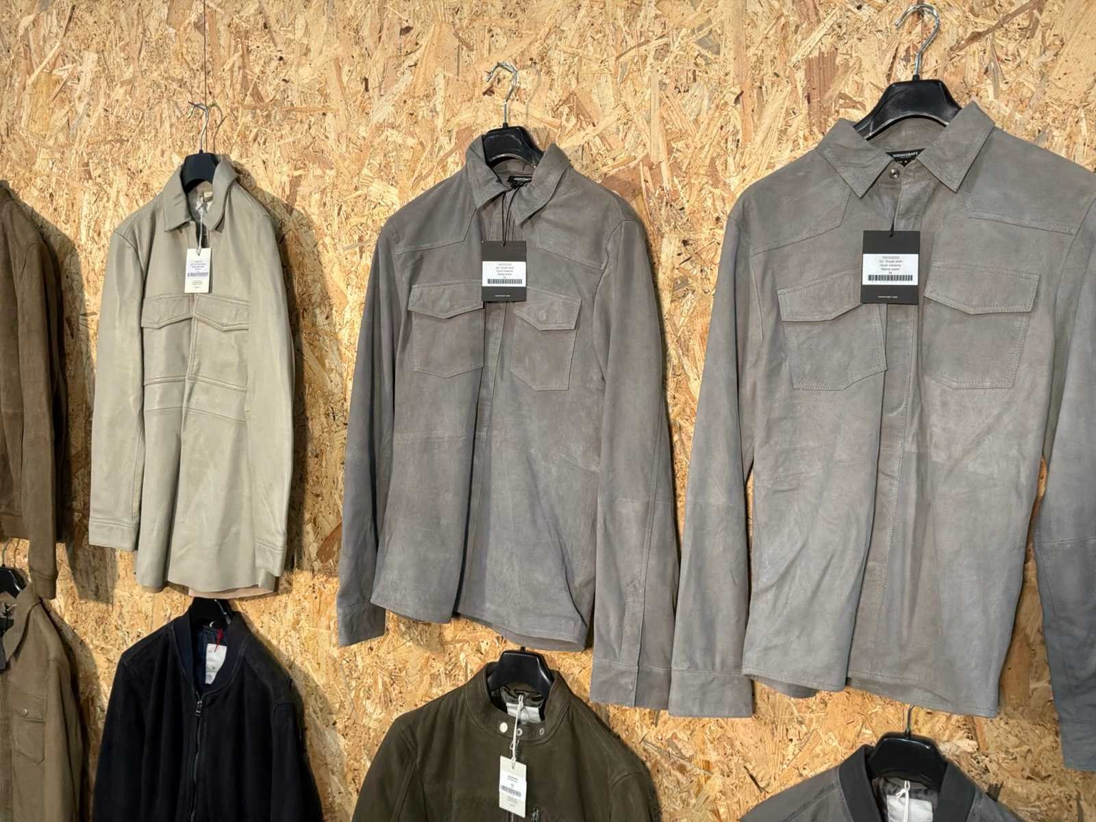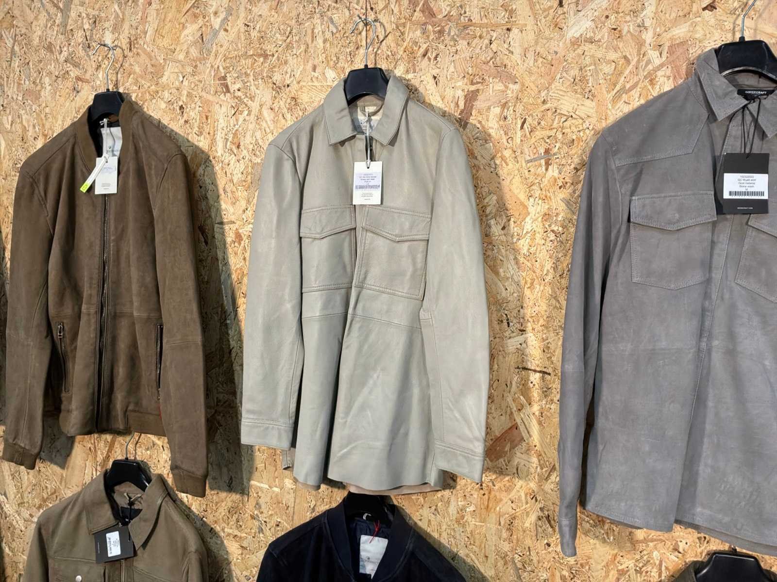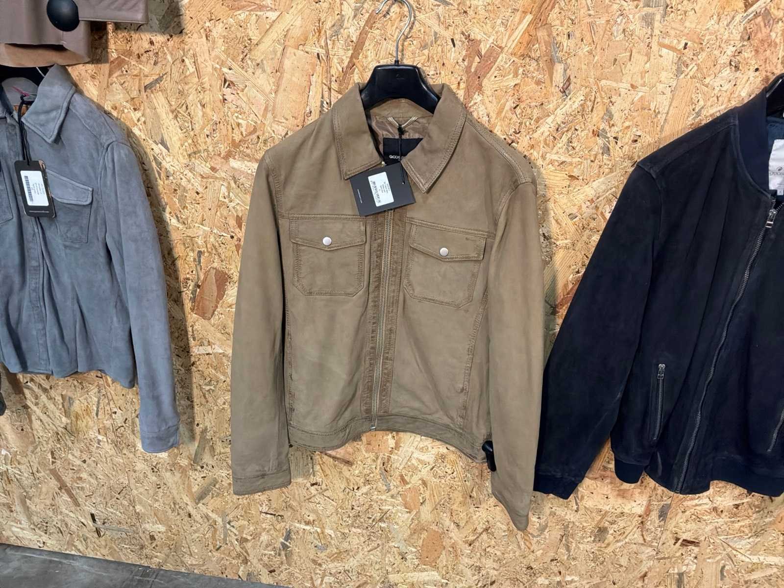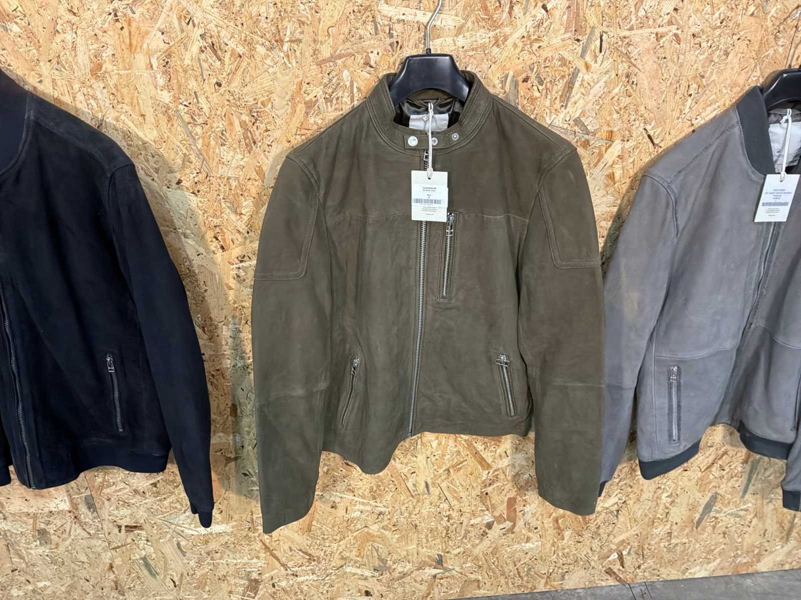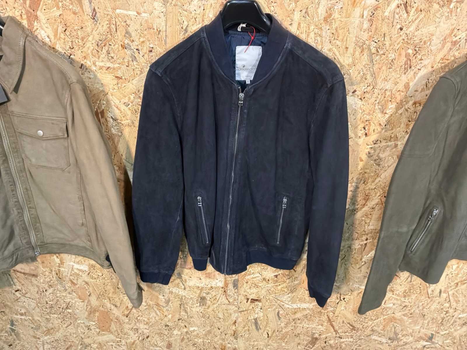 Diverse heren en dames leren jassen en bloezen in verschillende modellen, kleuren en maten. Inclusief kledinghangers. Mochten erop de items beveiligingstags zitten worden deze nog verwijderd voor de uitleverdag. Merk: Goose-craft