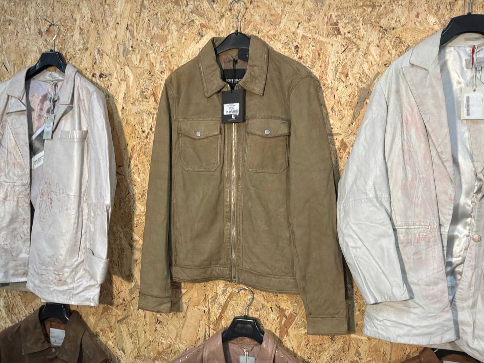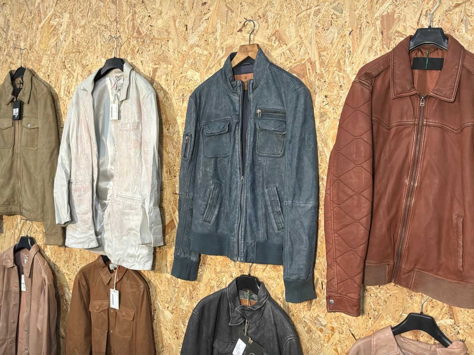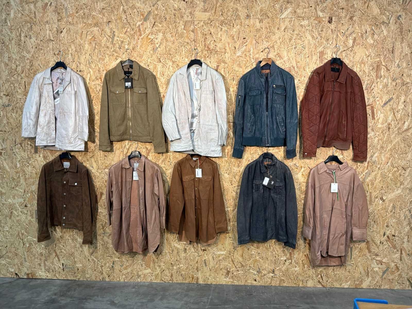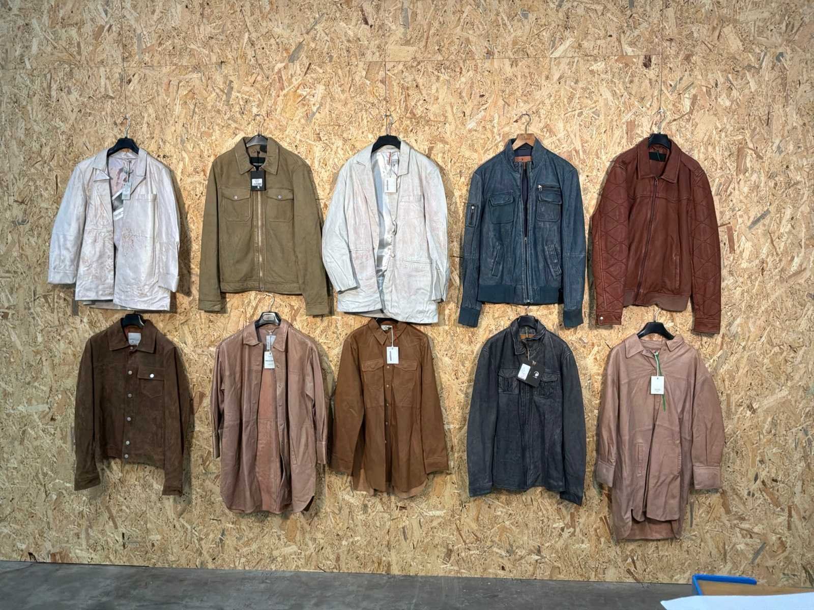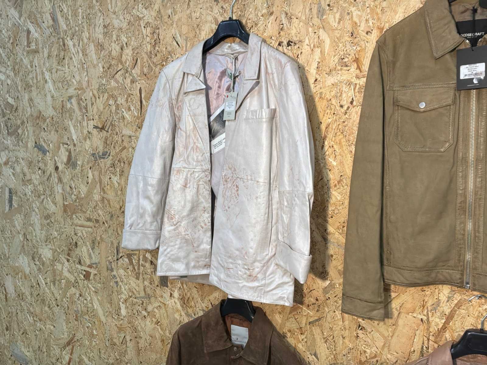 Diverse heren en dames leren jassen en blazers in verschillende modellen, kleuren en maten. Inclusief kledinghangers. Mochten erop de items beveiligingstags zitten worden deze nog verwijderd voor de uitleverdag. Merk: Goose-craft