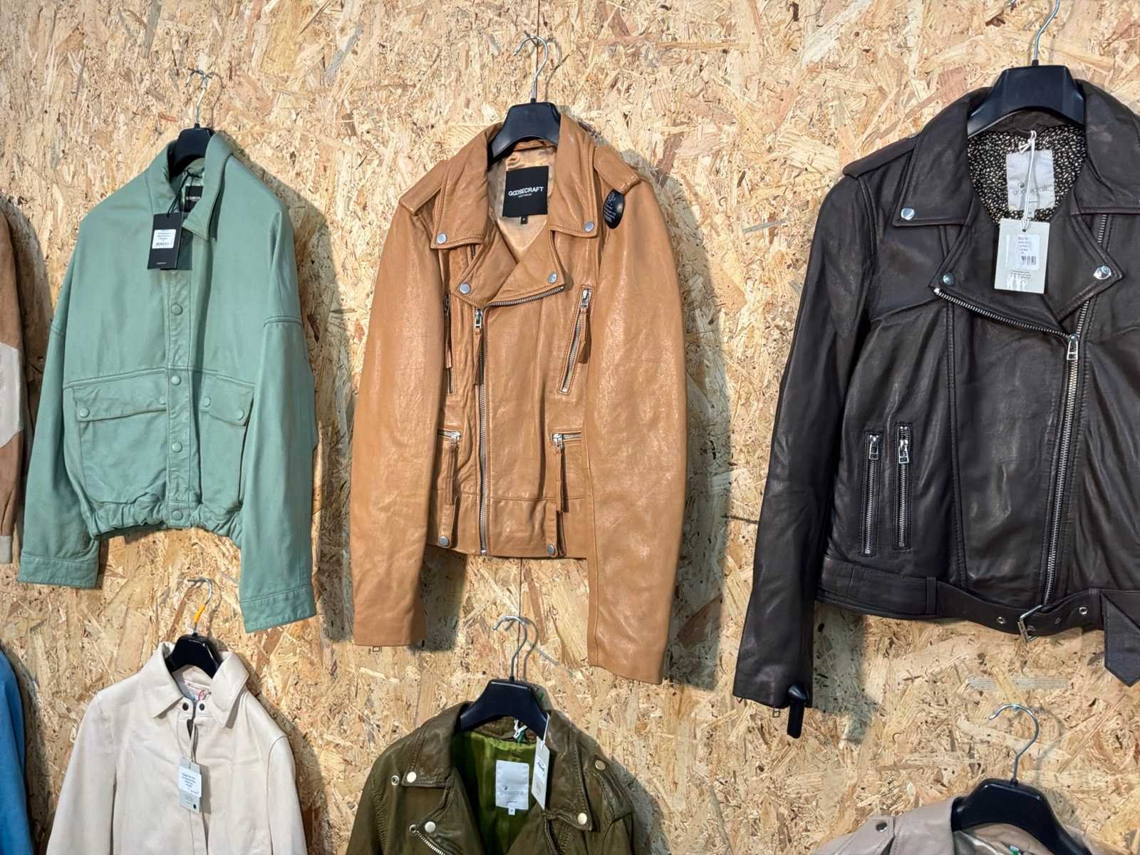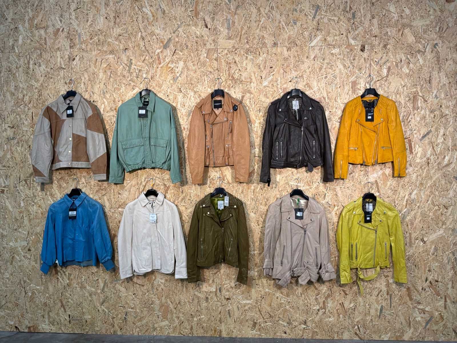 Diverse heren en dames leren jassen en bloezen in verschillende modellen, kleuren en maten. Inclusief kledinghangers. Mochten erop de items beveiligingstags zitten worden deze nog verwijderd voor de uitleverdag. Merk: Goose-craft