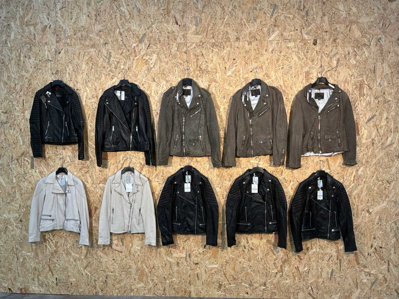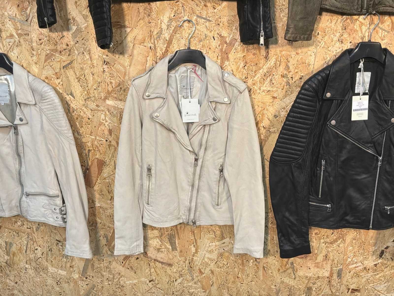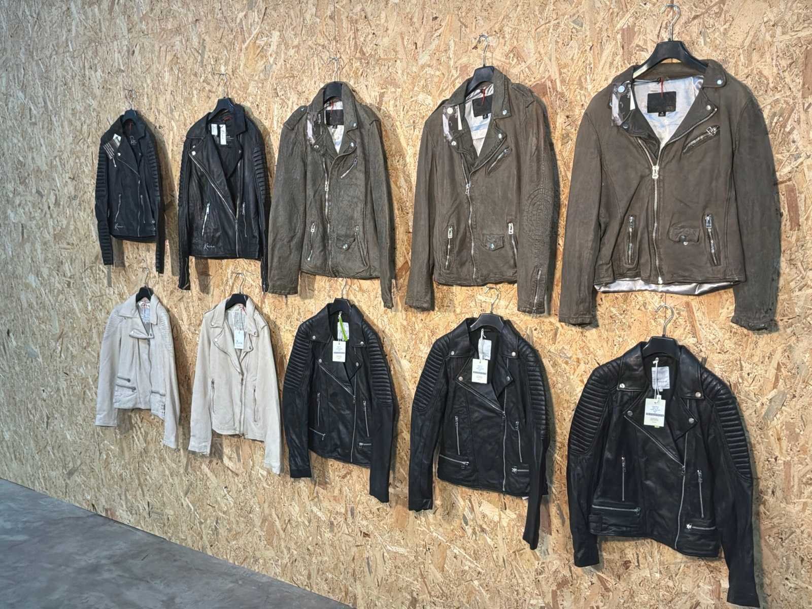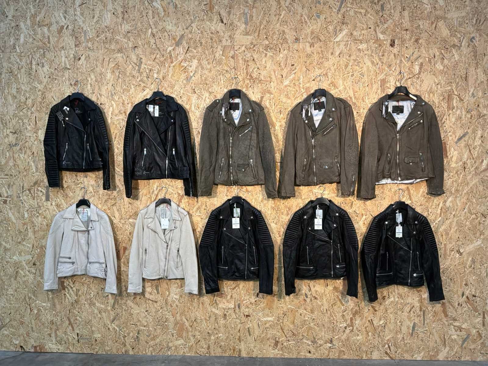 Diverse heren en dames leren jassen in verschillende modellen, kleuren en maten. Inclusief kledinghangers. Mochten erop de items beveiligingstags zitten worden deze nog verwijderd voor de uitleverdag. Merk: Goose-craft