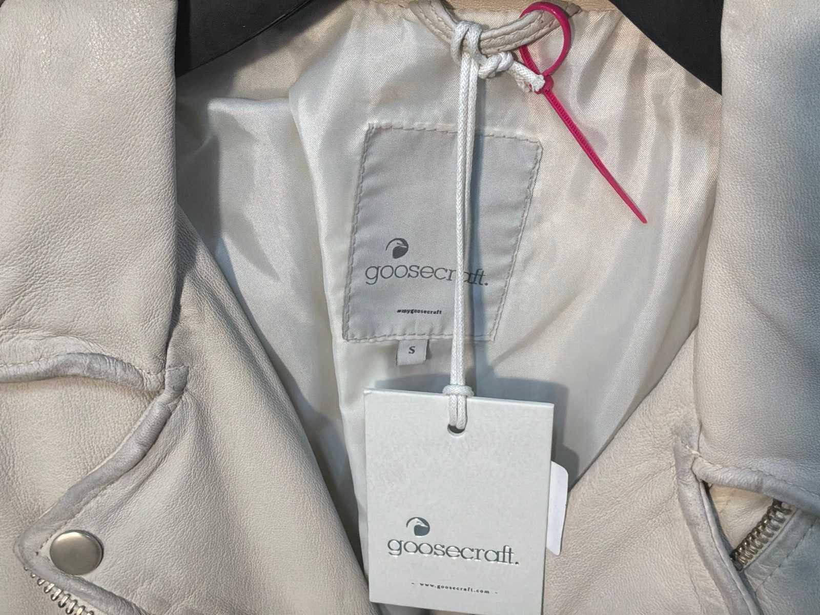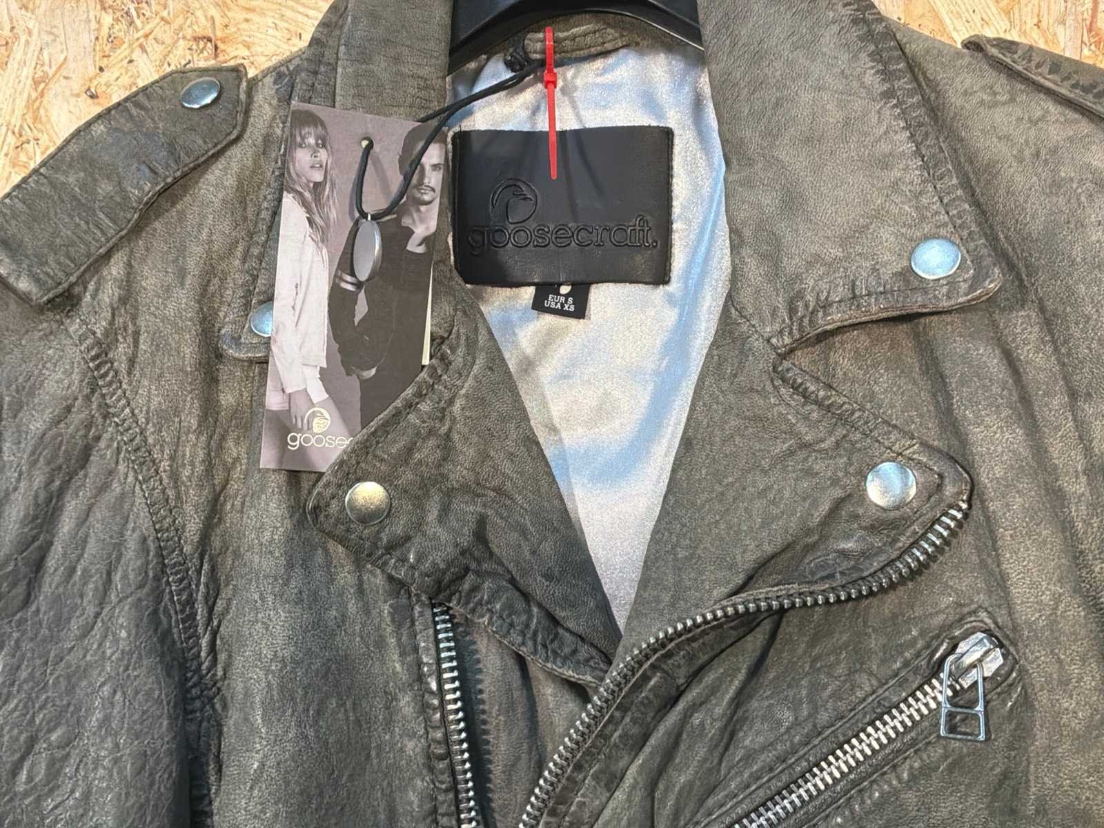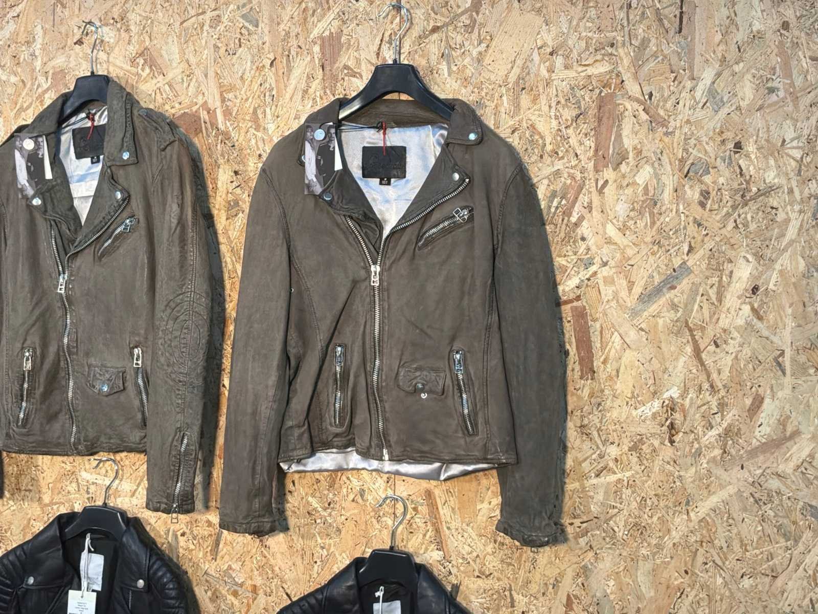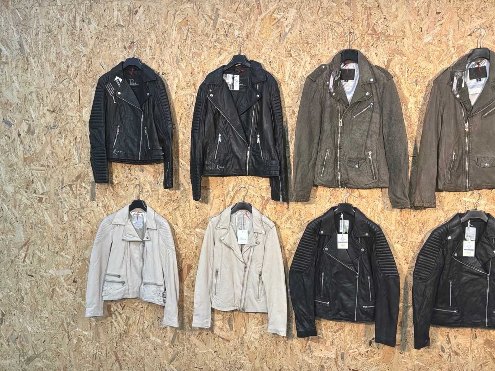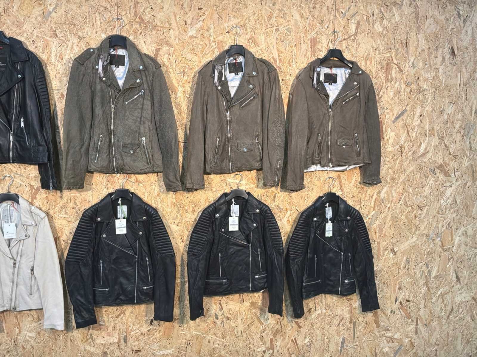 Diverse heren en dames leren jassen in verschillende modellen, kleuren en maten. Inclusief kledinghangers. Mochten erop de items beveiligingstags zitten worden deze nog verwijderd voor de uitleverdag. Merk: Goose-craft