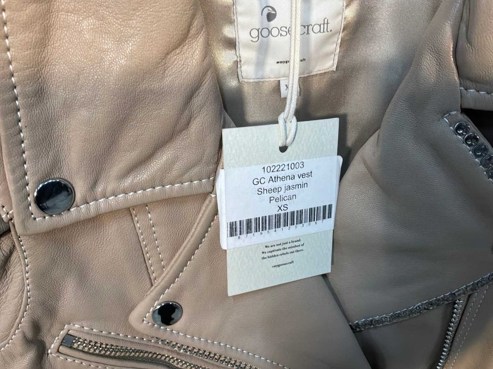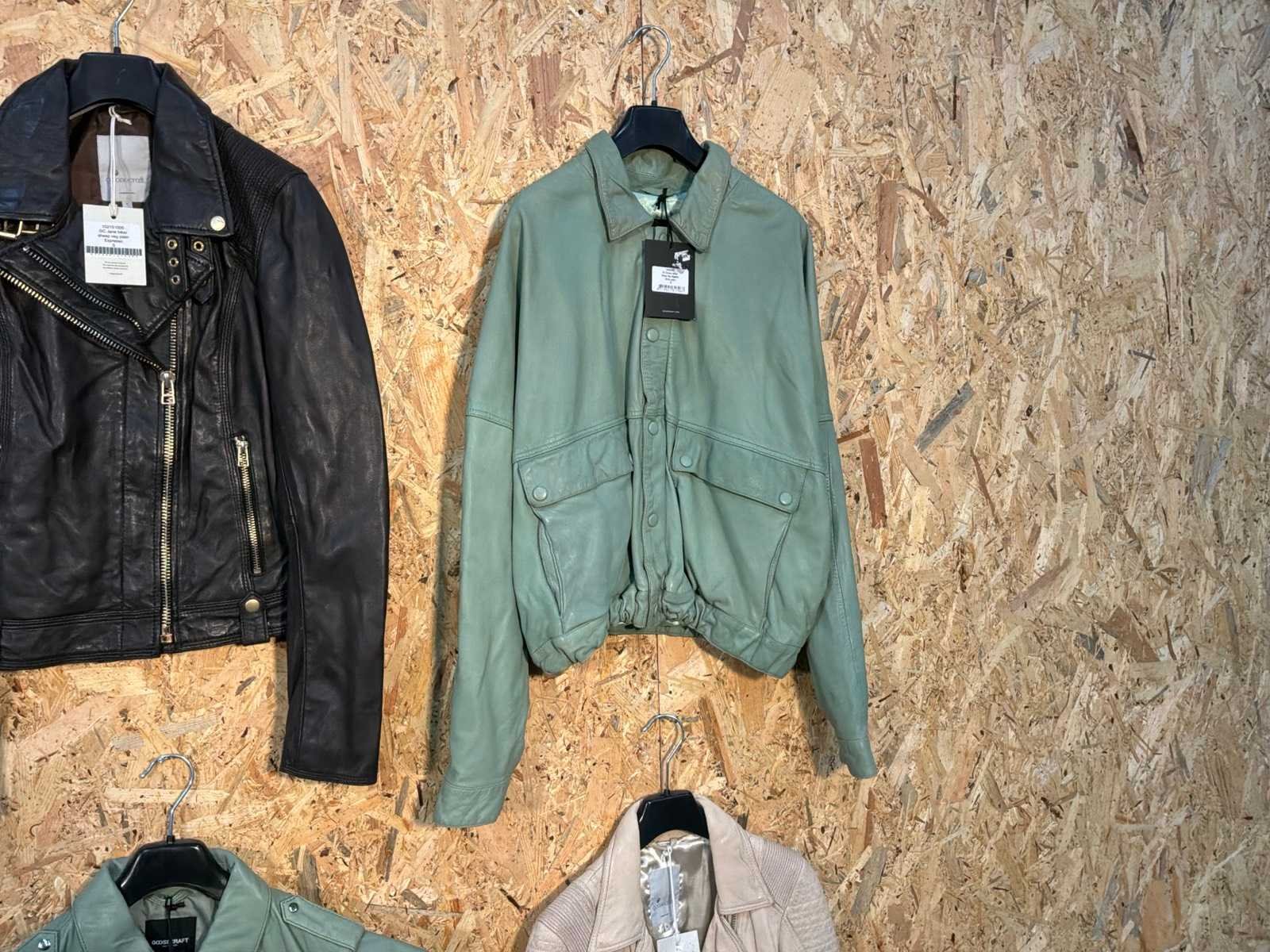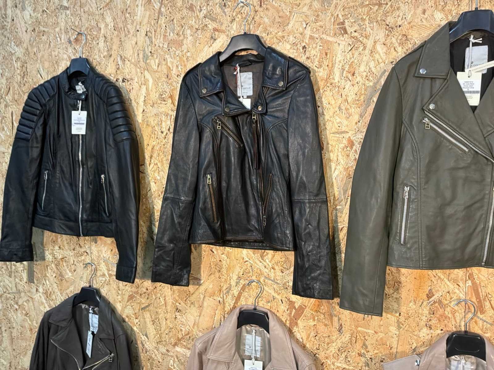 Diverse dames leren jassen en vesten in verschillende modellen, kleuren en maten. Inclusief kledinghangers. Mochten erop de items beveiligingstags zitten worden deze nog verwijderd voor de uitleverdag. Merk: Goose-craft