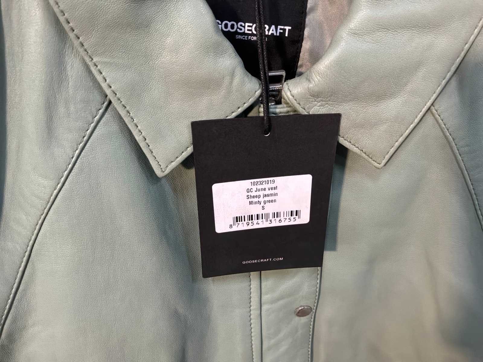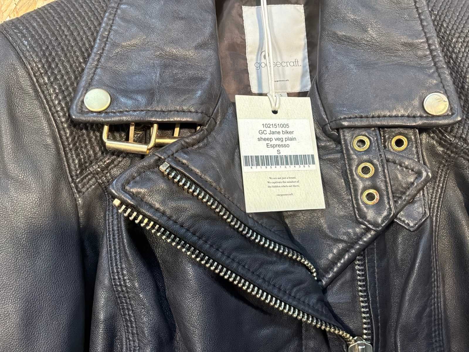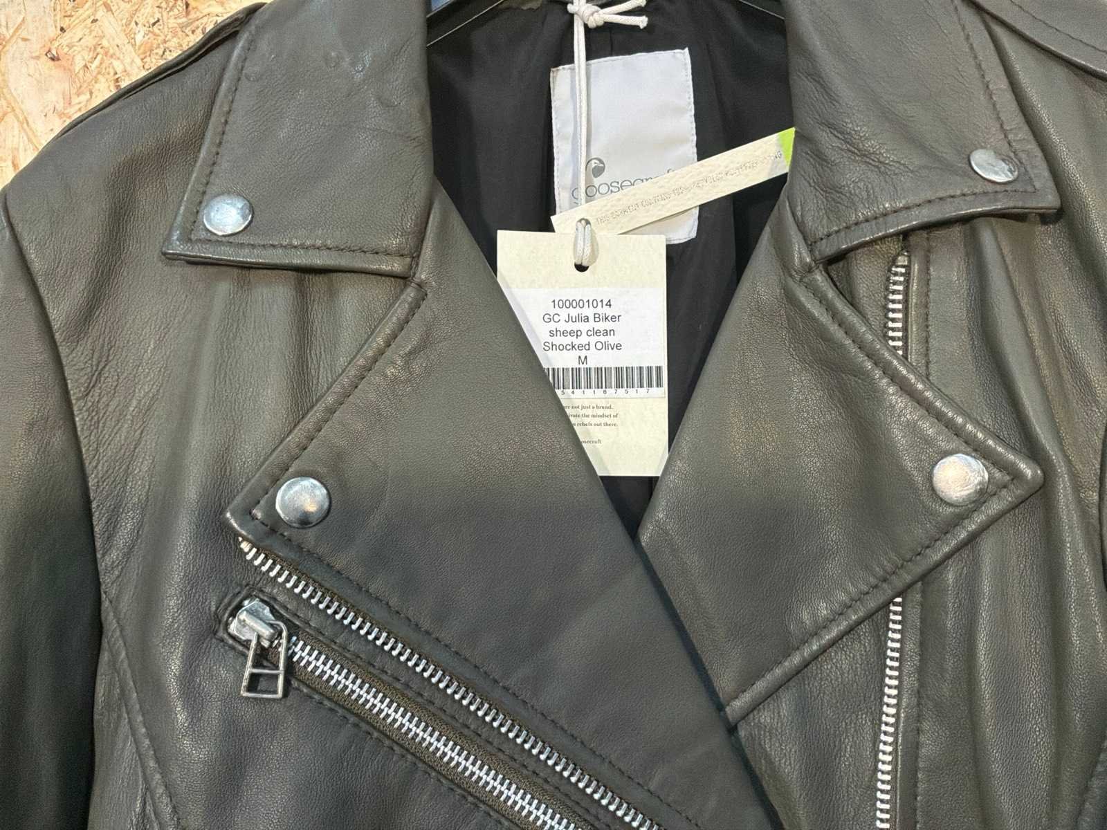 Diverse dames leren jassen en vesten in verschillende modellen, kleuren en maten. Inclusief kledinghangers. Mochten erop de items beveiligingstags zitten worden deze nog verwijderd voor de uitleverdag. Merk: Goose-craft