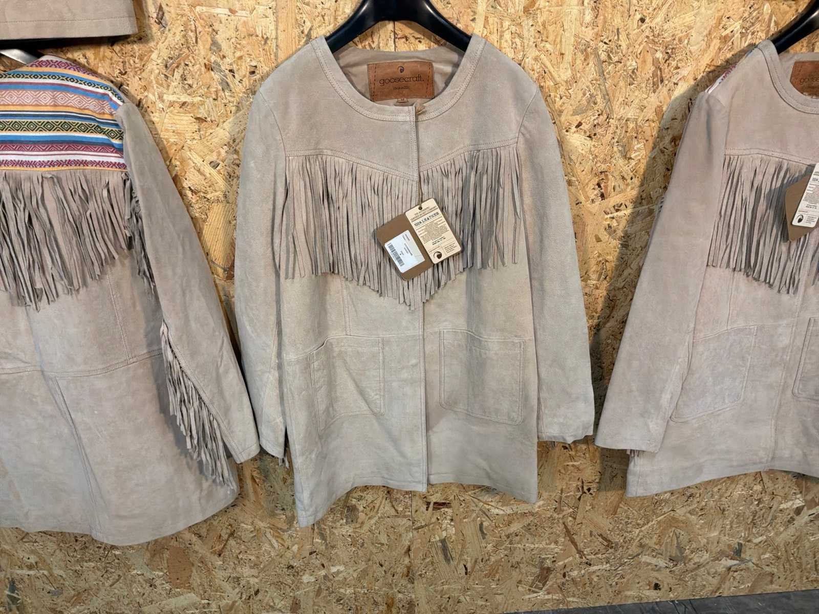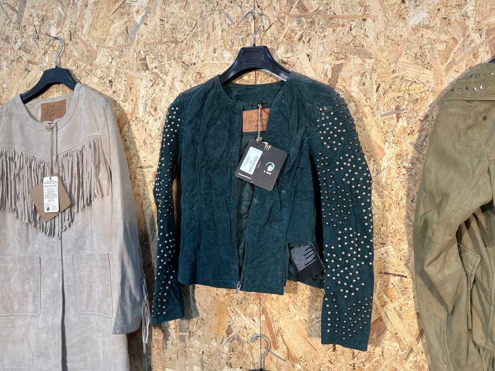 Diverse dames leren jackets in verschillende modellen, kleuren en maten. Inclusief kledinghangers. Mochten erop de items beveiligingstags zitten worden deze nog verwijderd voor de uitleverdag. Merk: Goose-craft