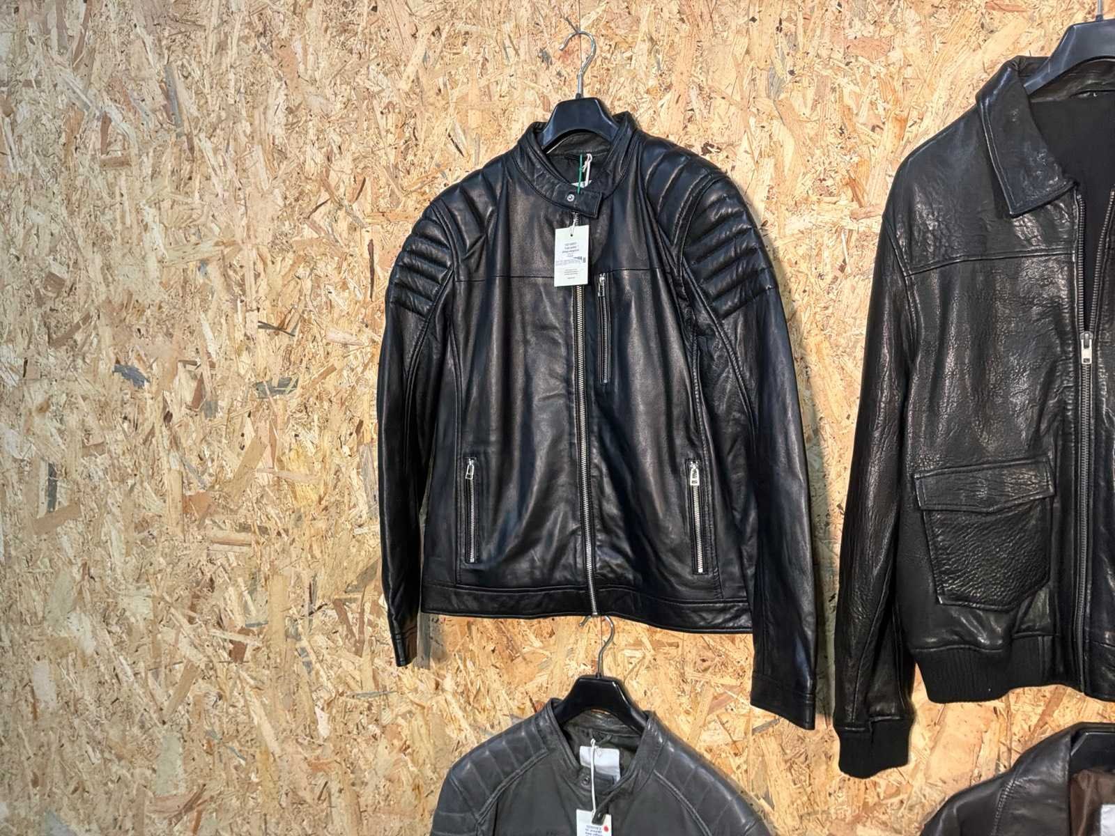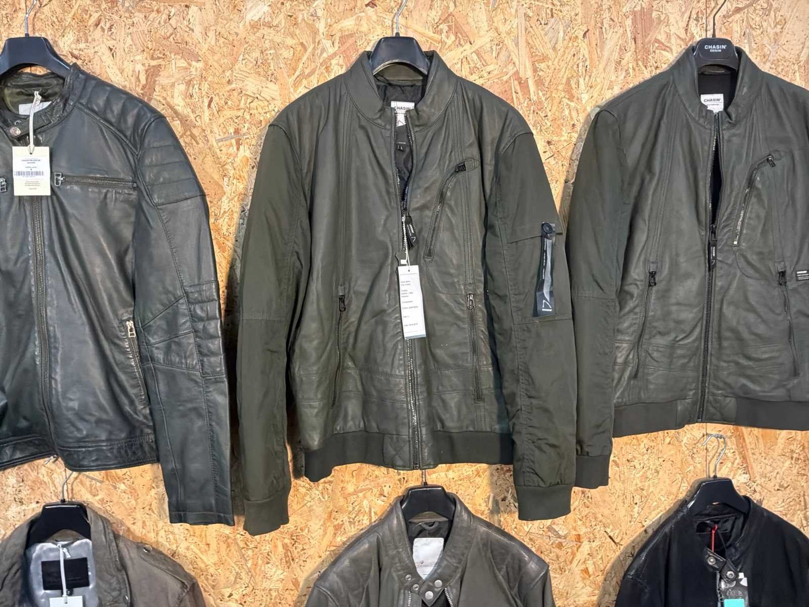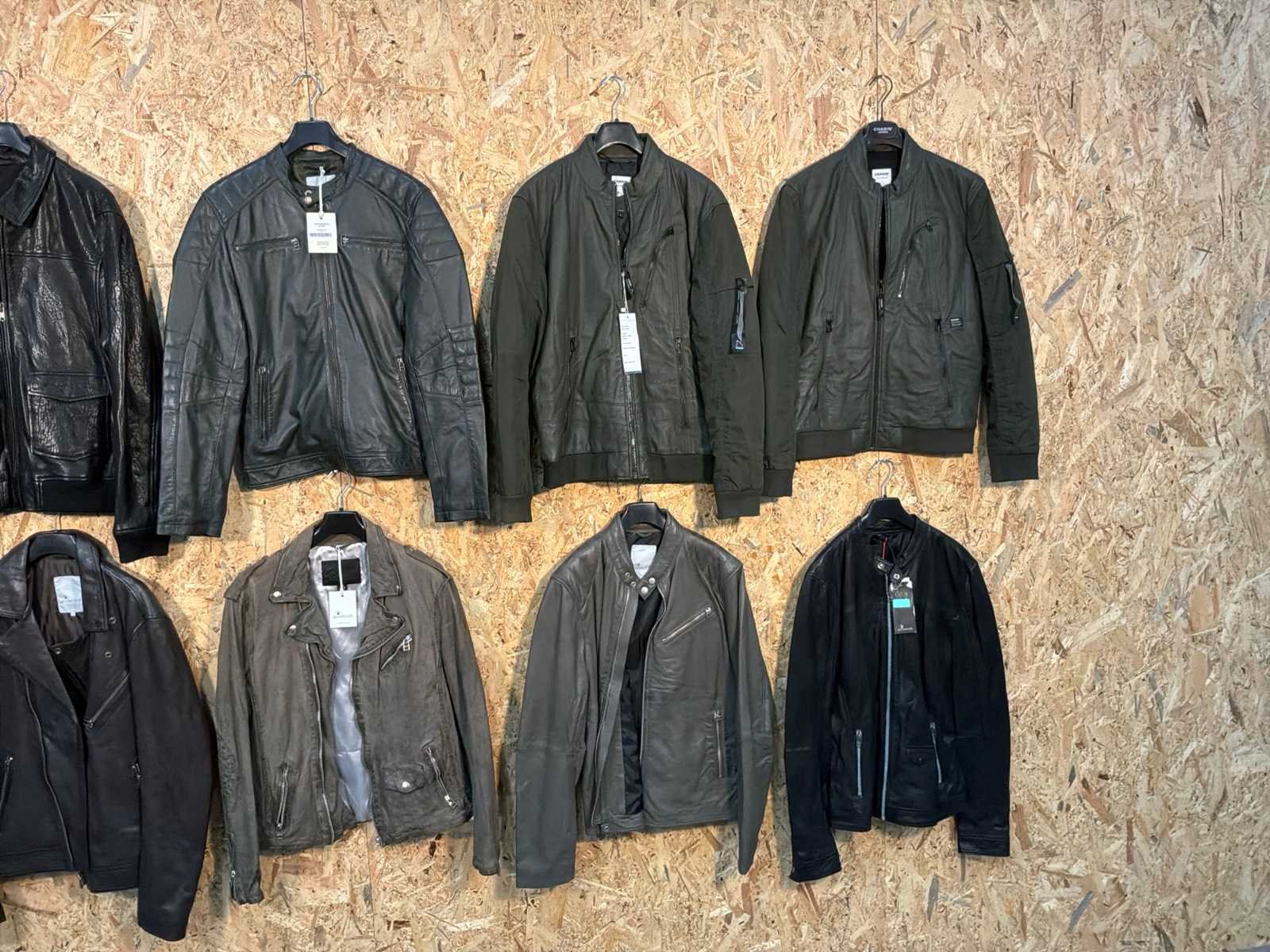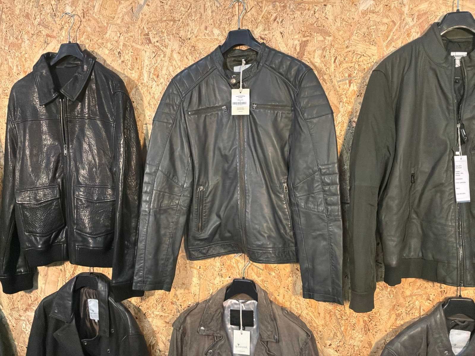 Diverse heren leren jassen en vesten in verschillende modellen, kleuren en maten. Inclusief kledinghangers. Mochten erop de items beveiligingstags zitten worden deze nog verwijderd voor de uitleverdag. Merk: Goose-craft