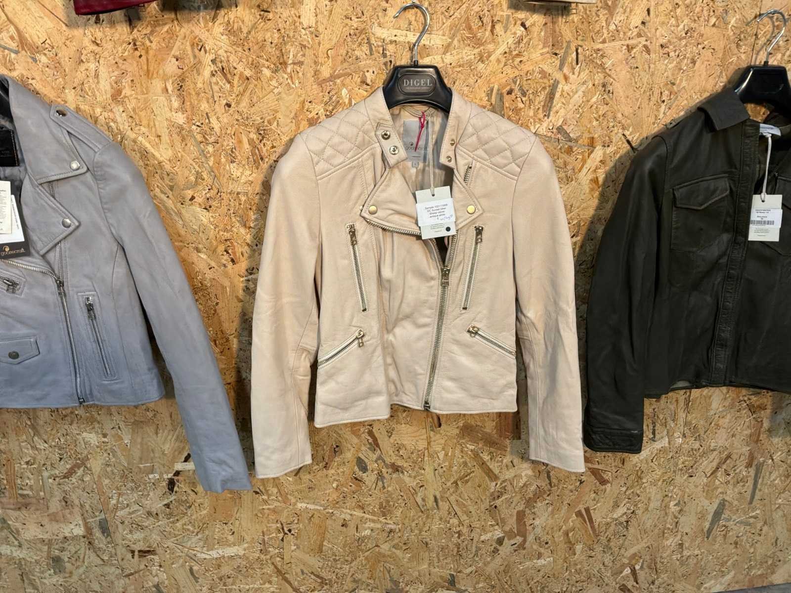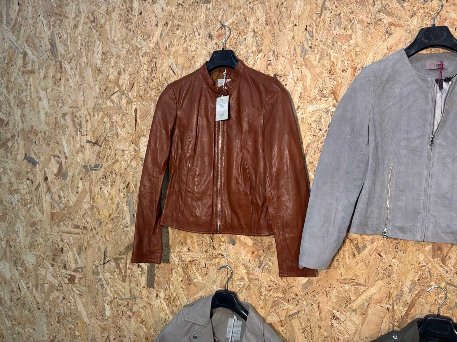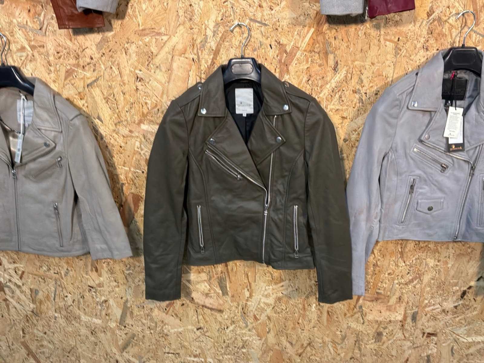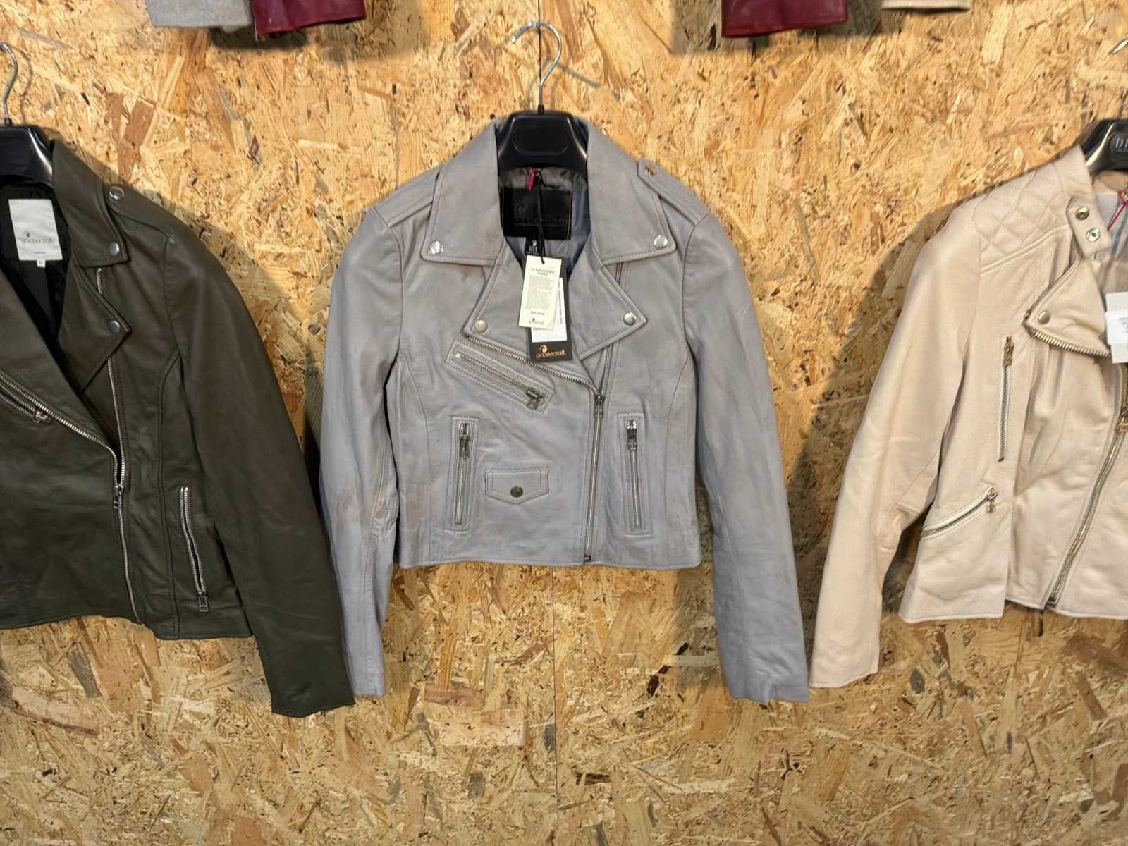 Diverse dames leren jassen in verschillende modellen, kleuren en maten. Inclusief kledinghangers. Mochten erop de items beveiligingstags zitten worden deze nog verwijderd voor de uitleverdag. Merk: Goose-craft