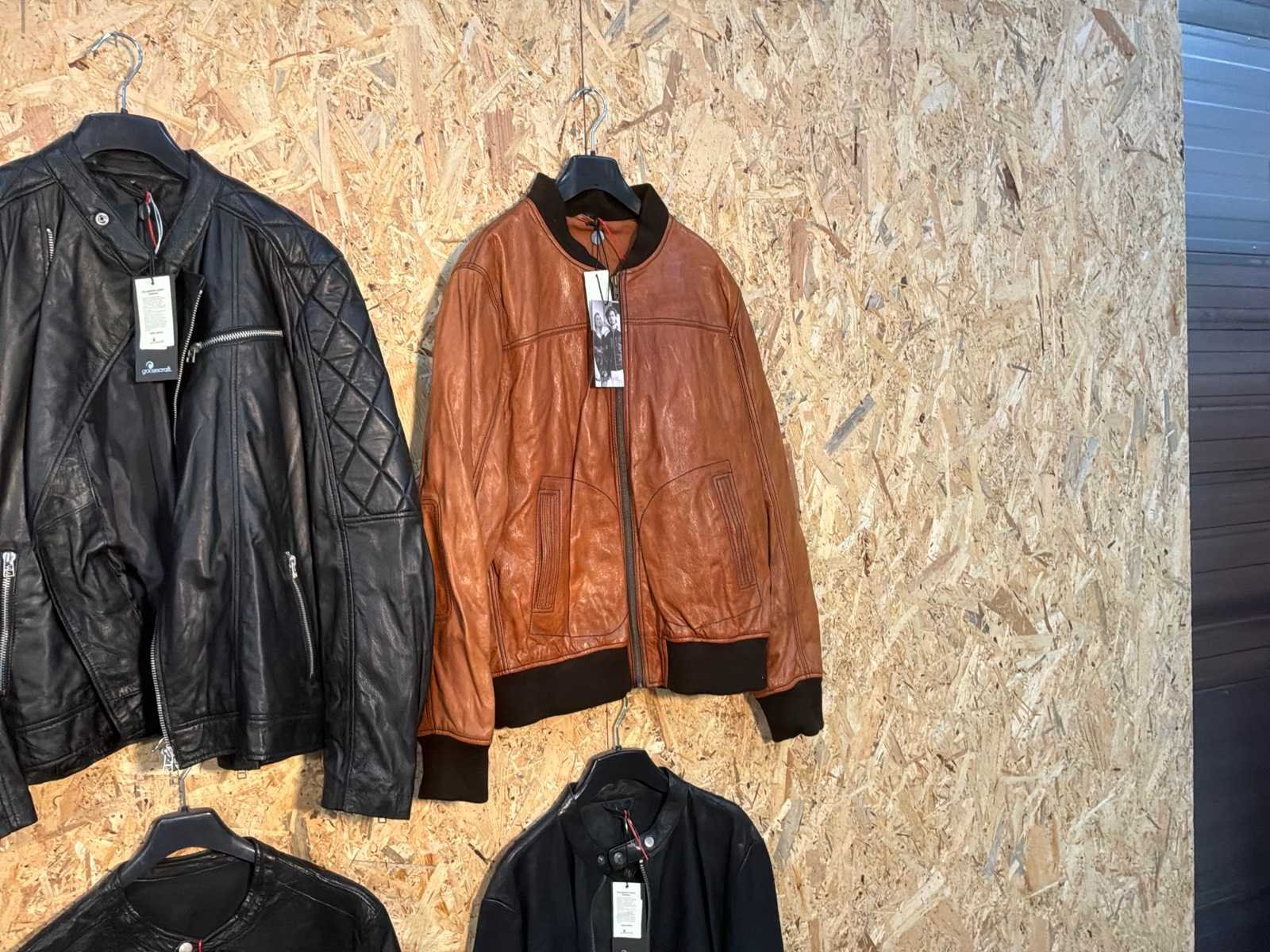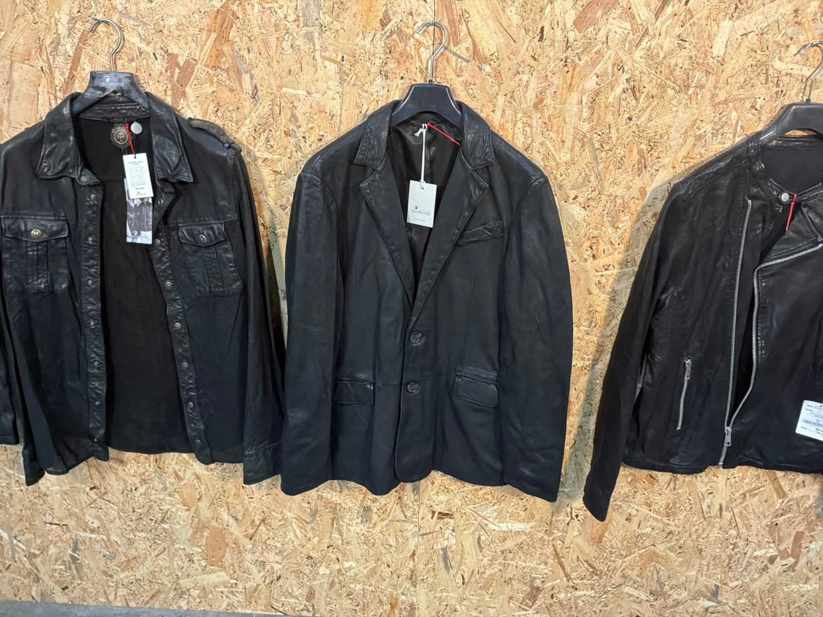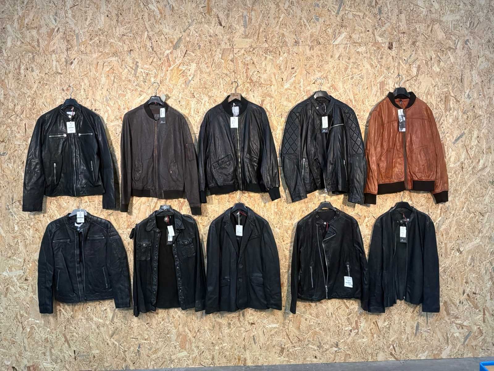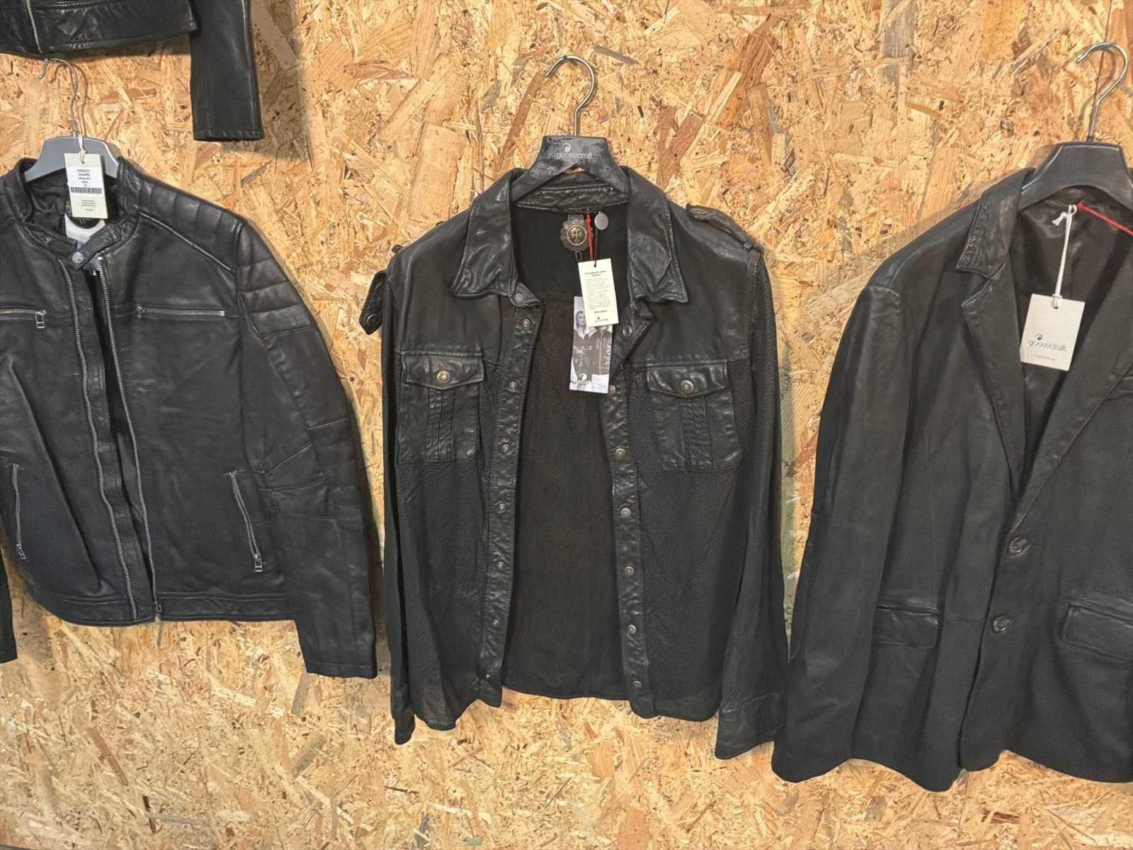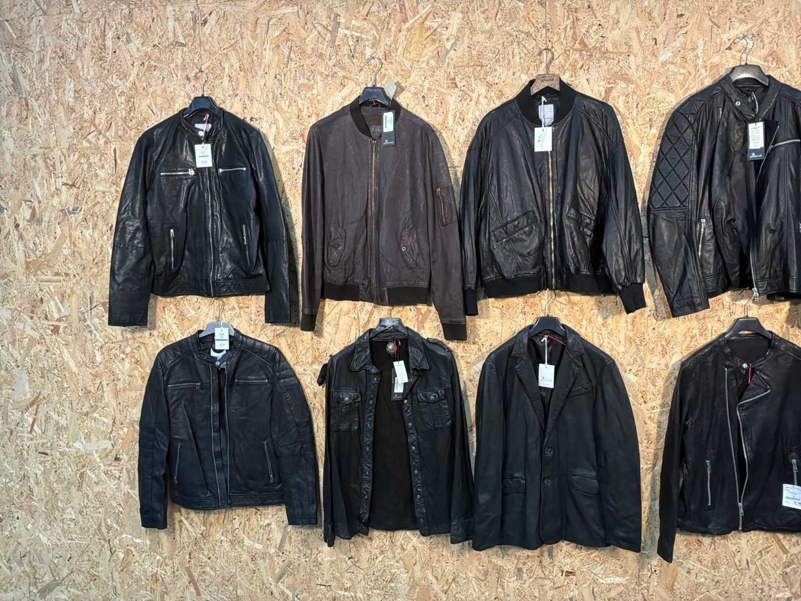 Diverse dames en heren leren jassen in verschillende modellen, kleuren en maten. Inclusief kledinghangers. Mochten erop de items beveiligingstags zitten worden deze nog verwijderd voor de uitleverdag. Merk: Goose-craft