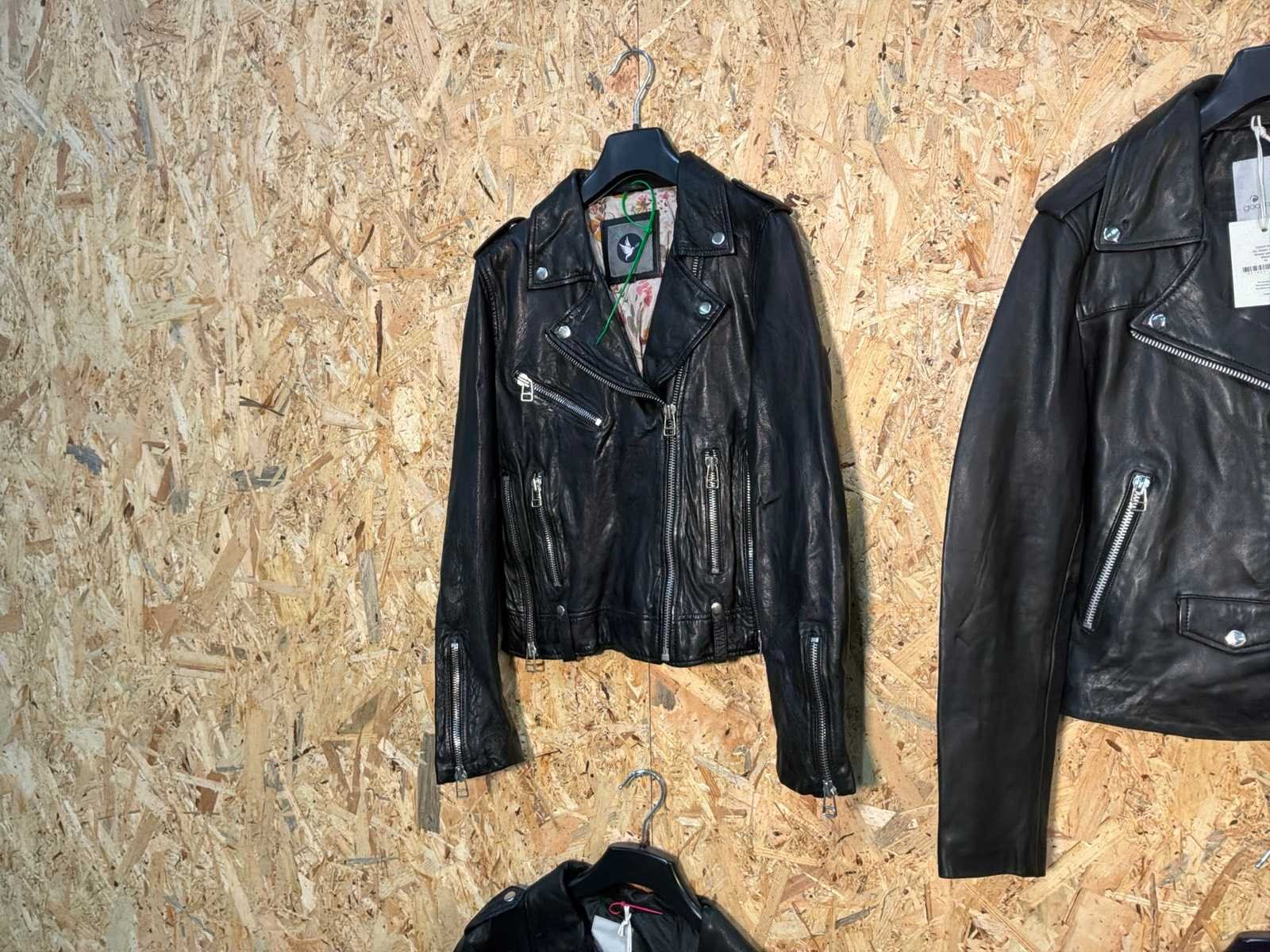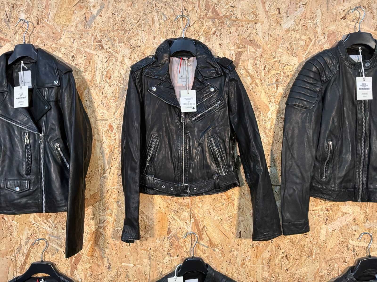 Diverse dames leren jassen in verschillende modellen, kleuren en maten. Inclusief kledinghangers. Mochten erop de items beveiligingstags zitten worden deze nog verwijderd voor de uitleverdag. Merk: Goose-craft