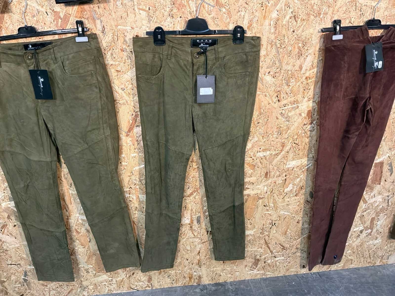 Leren broeken van het merk Goosecraft. Verschillende modellen kleuren en maten. Zie foto’s Mochten erop de items beveiligingstags zitten worden deze nog verwijderd voor de uitleverdag. Merk: Goose-craft Model: Leren