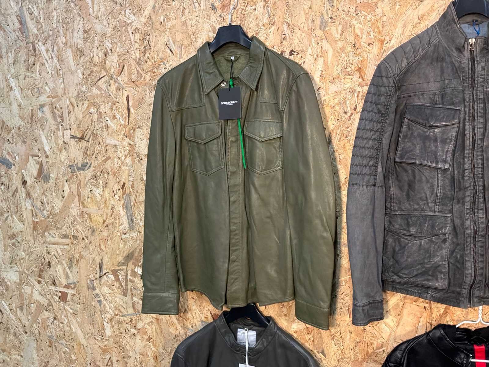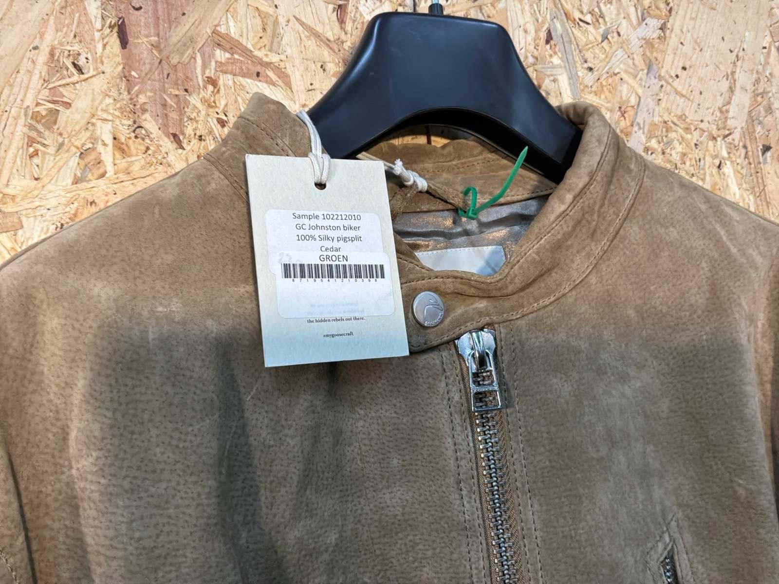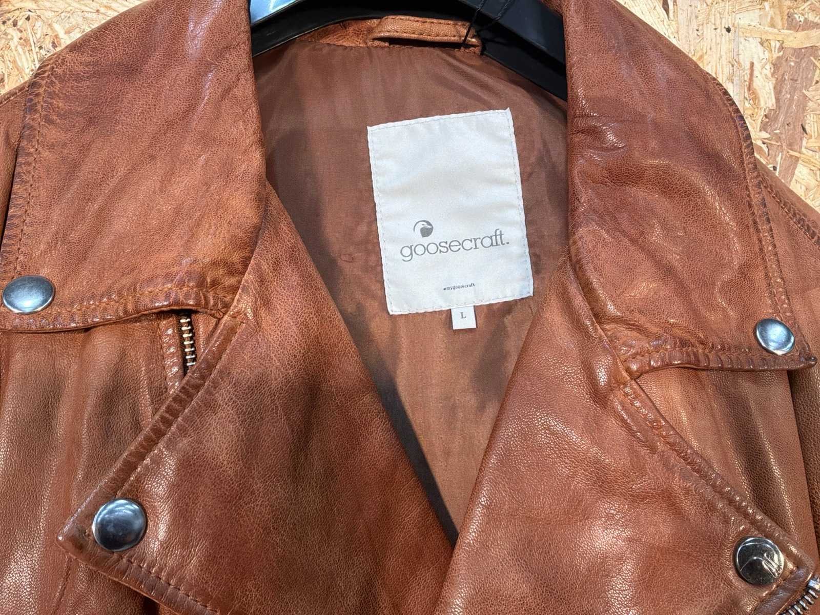 Diverse dames en heren leren jassen en vesten in verschillende modellen, kleuren en maten. Inclusief kledinghangers. Mochten erop de items beveiligingstags zitten worden deze nog verwijderd voor de uitleverdag. Merk: Goose-craft