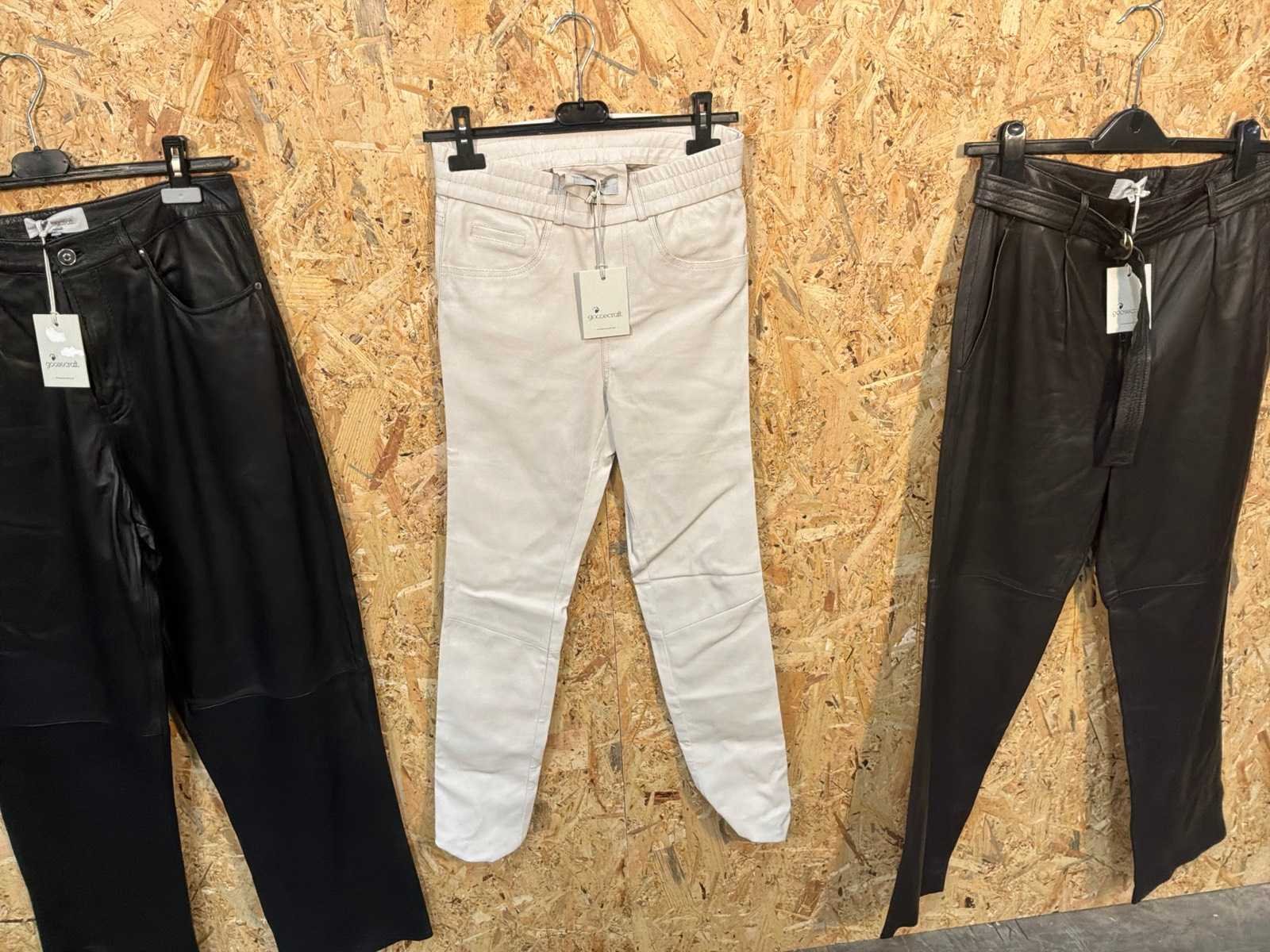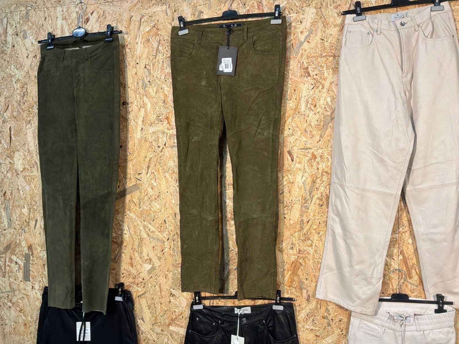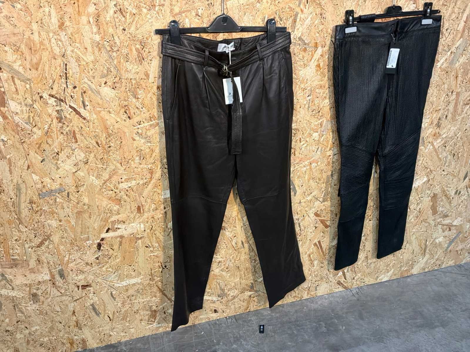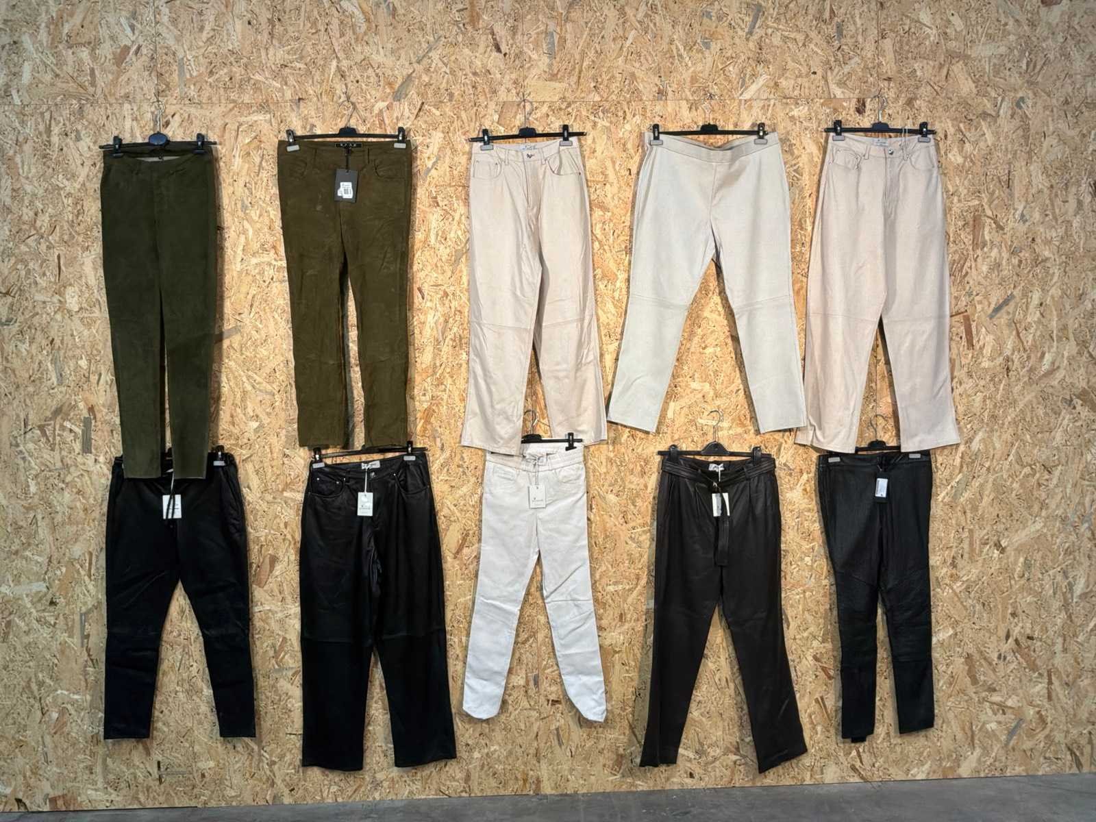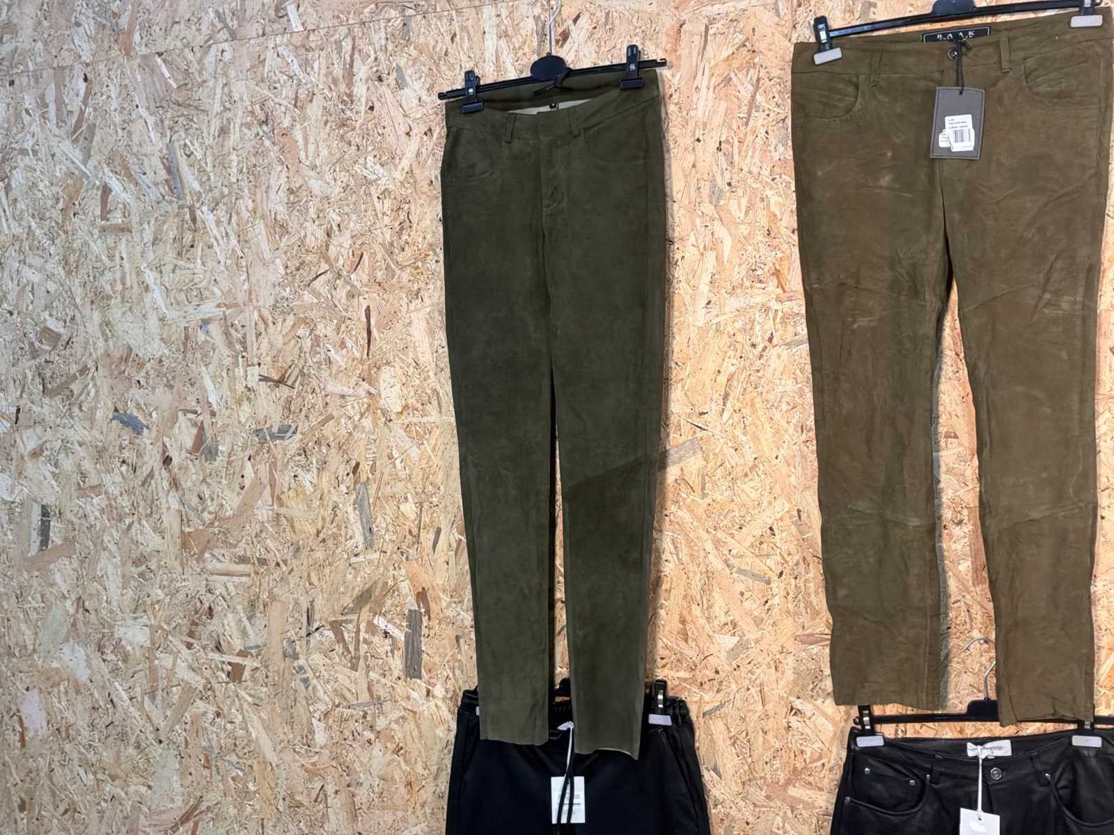 Leren en suede broeken van het merk Goosecraft. Verschillende modellen kleuren en maten. Zie foto’s Mochten erop de items beveiligingstags zitten worden deze nog verwijderd voor de uitleverdag. Merk: Goose-craft Model: Leer/suede