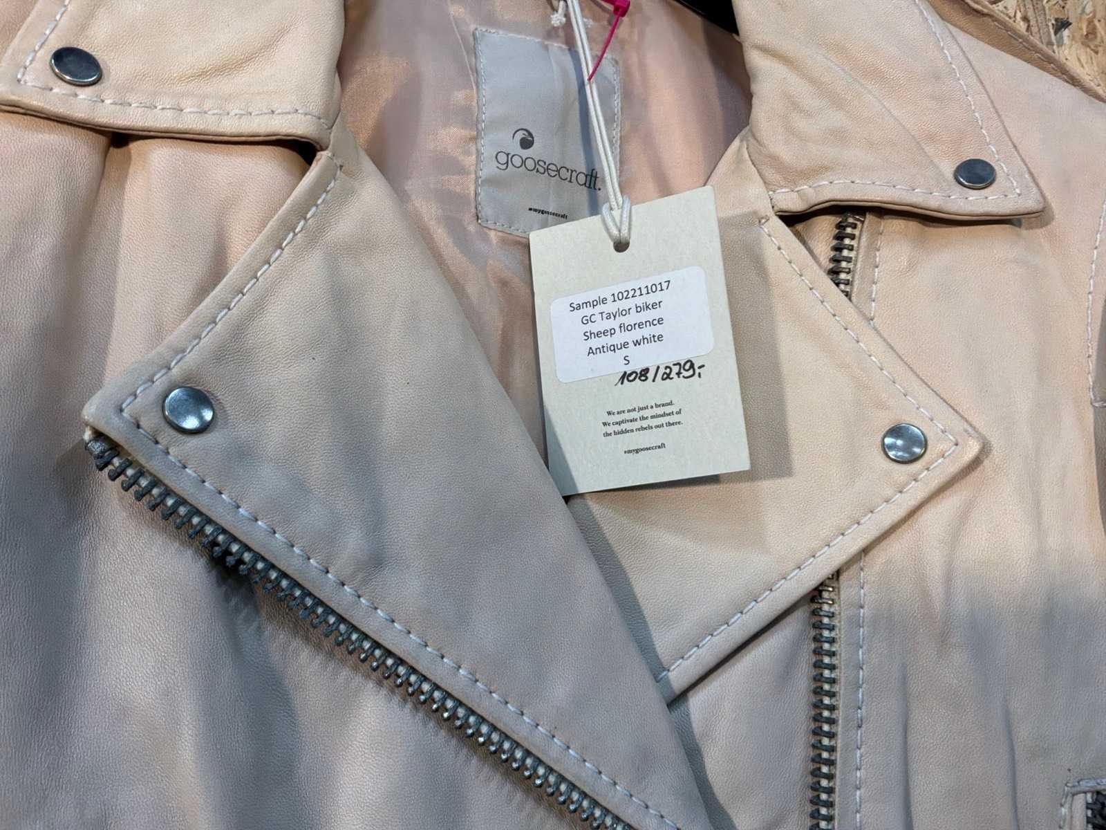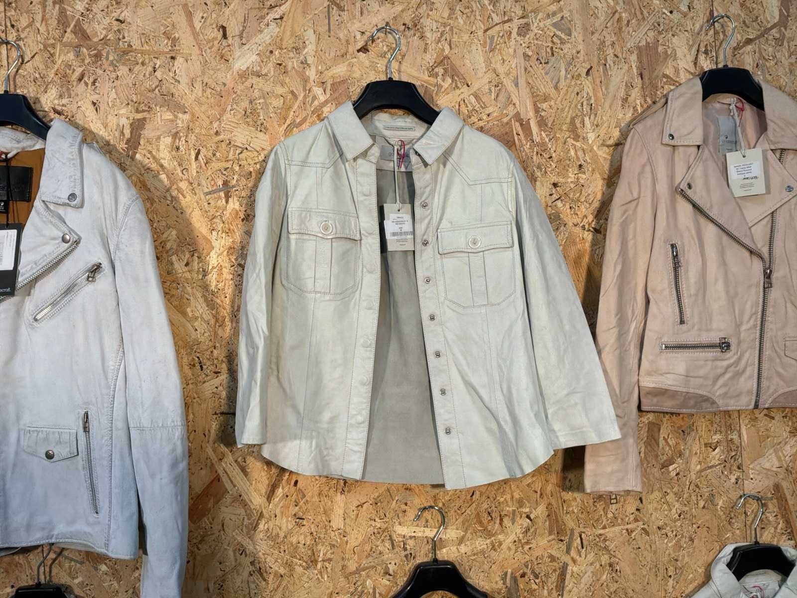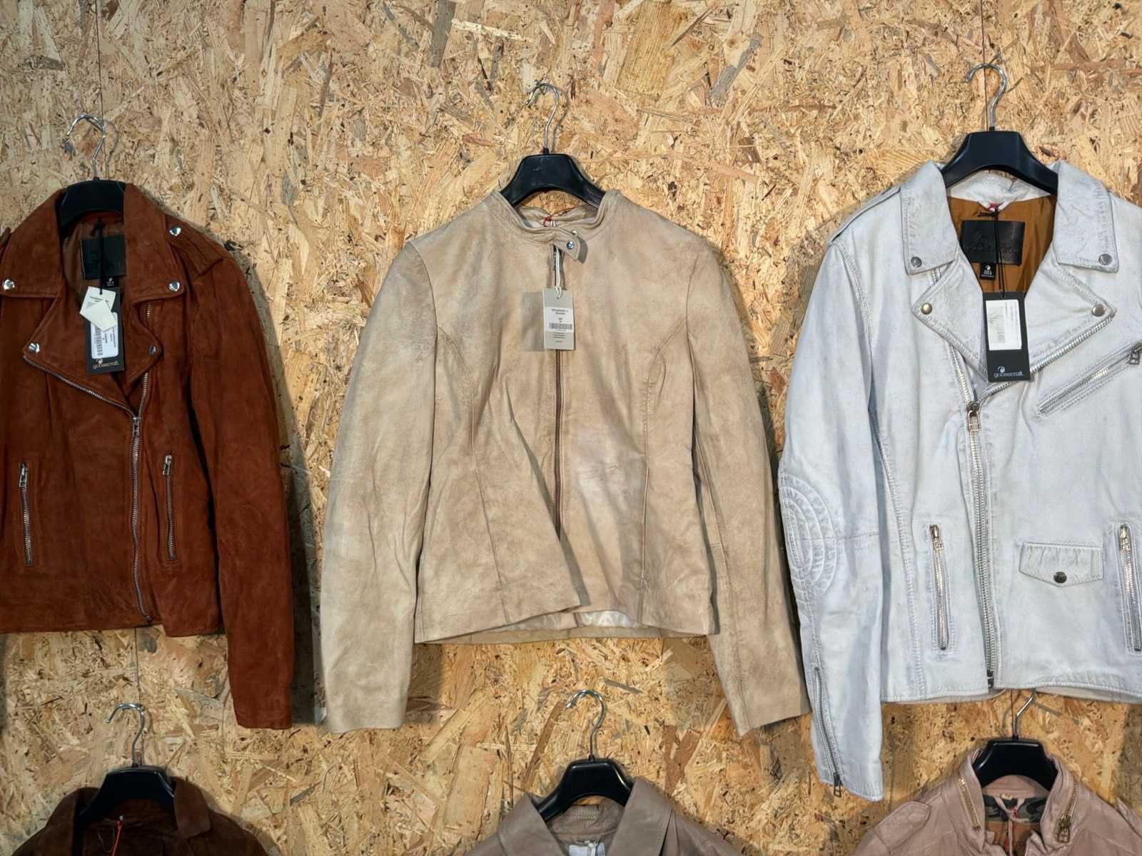 Diverse dames leren jassen in verschillende modellen, kleuren en maten. Inclusief kledinghangers. Mochten erop de items beveiligingstags zitten worden deze nog verwijderd voor de uitleverdag. Merk: Goose-craft