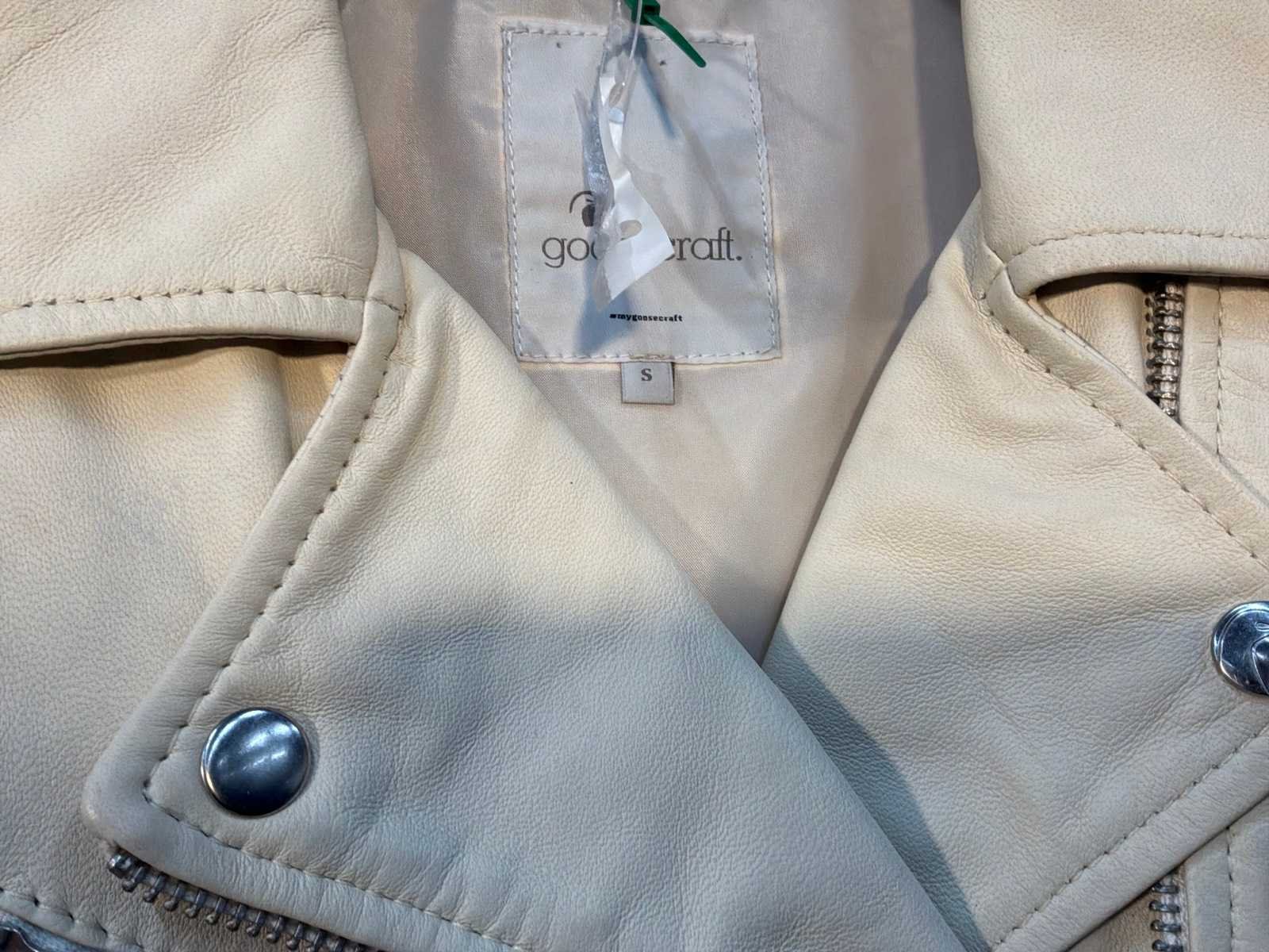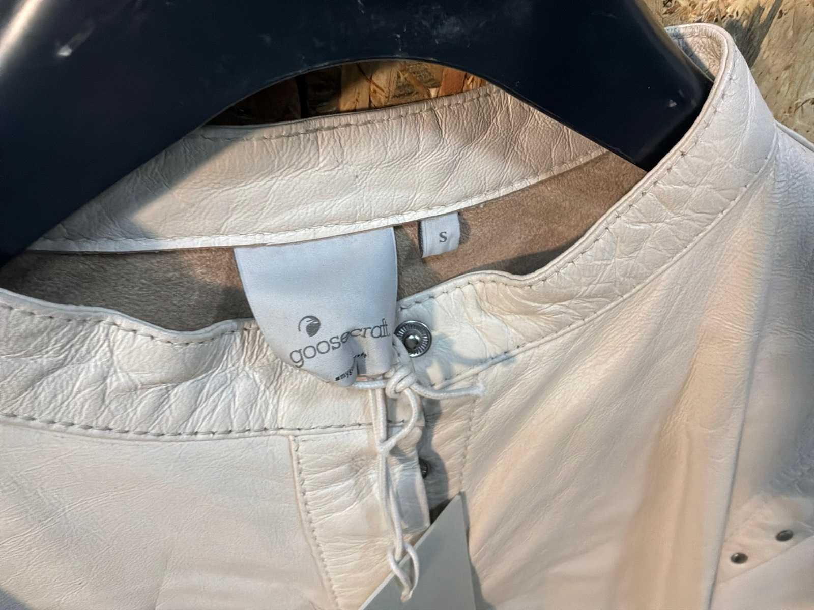 Diverse dames leren jassen in verschillende modellen, kleuren en maten. Inclusief kledinghangers. Mochten erop de items beveiligingstags zitten worden deze nog verwijderd voor de uitleverdag. Merk: Goose-craft