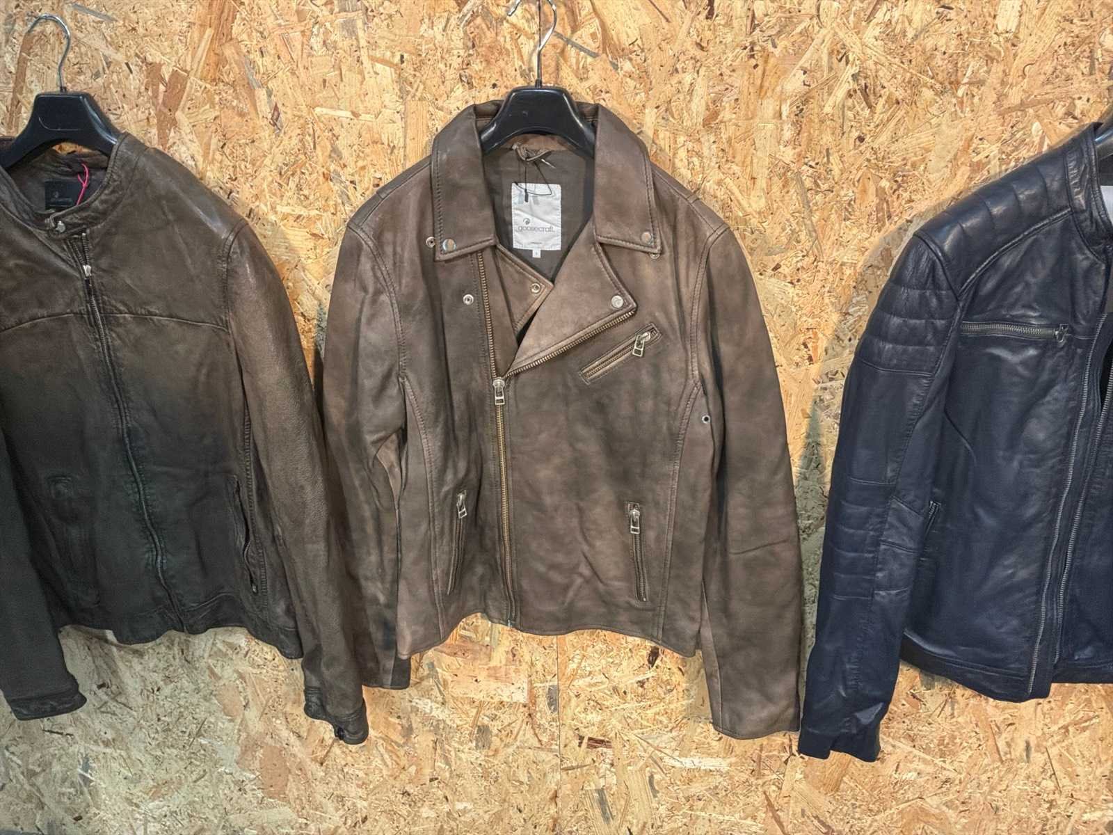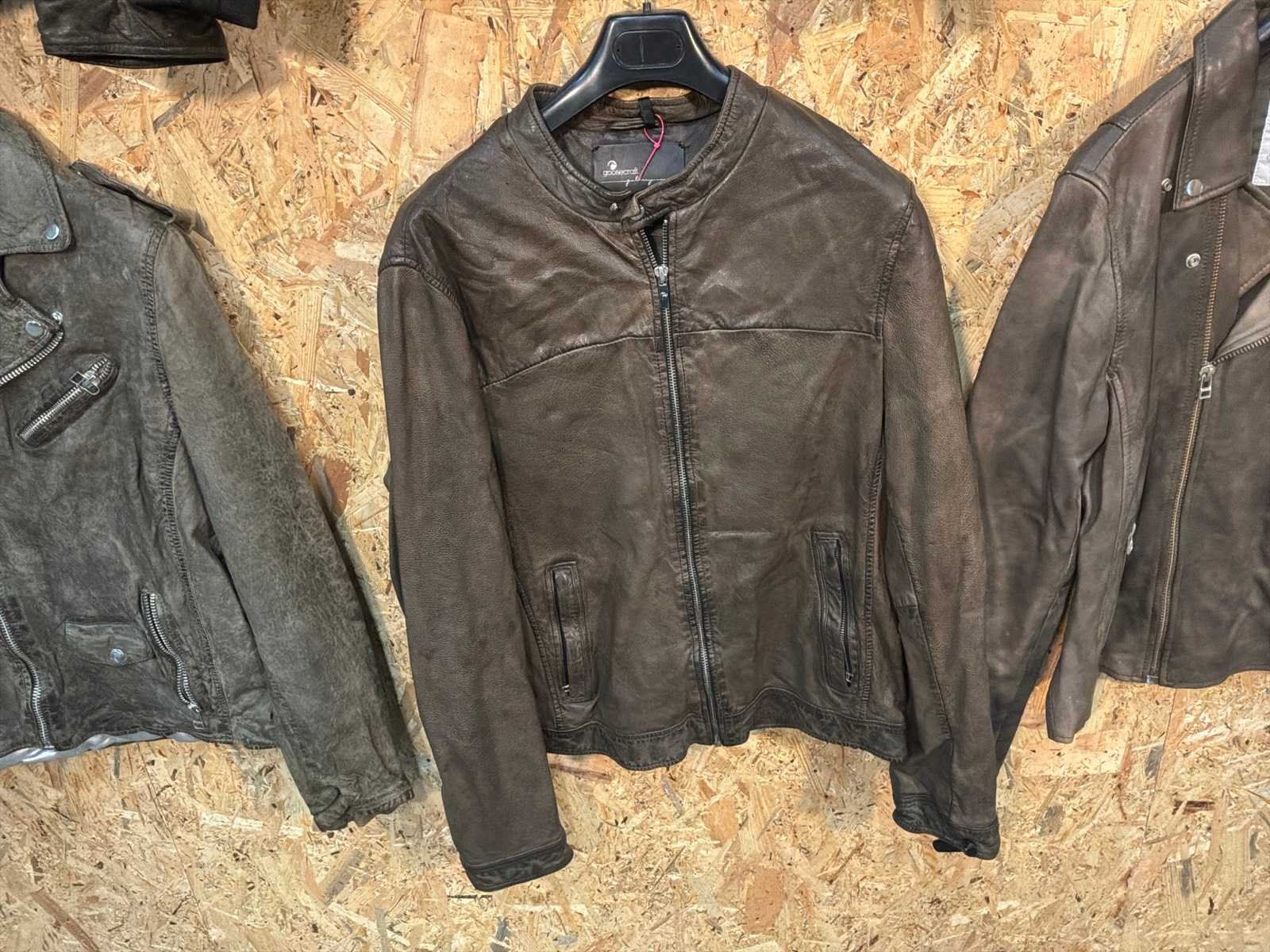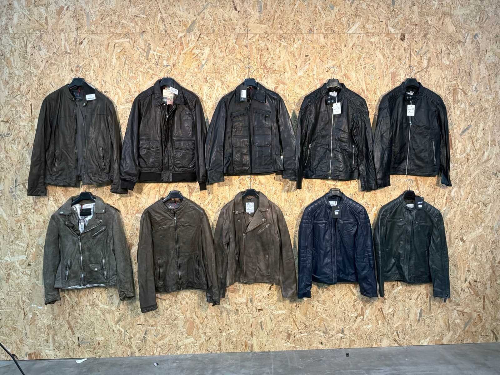Diverse heren leren jassen in verschillende modellen, kleuren en maten. Inclusief kledinghangers. Mochten erop de items beveiligingstags zitten worden deze nog verwijderd voor de uitleverdag. Merk: Goose-craft