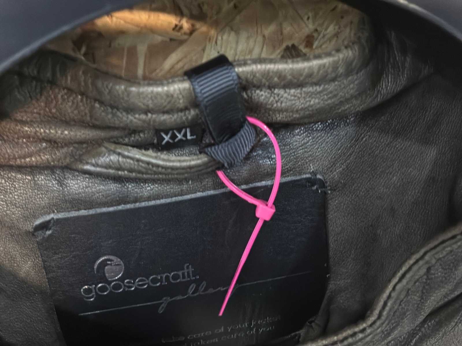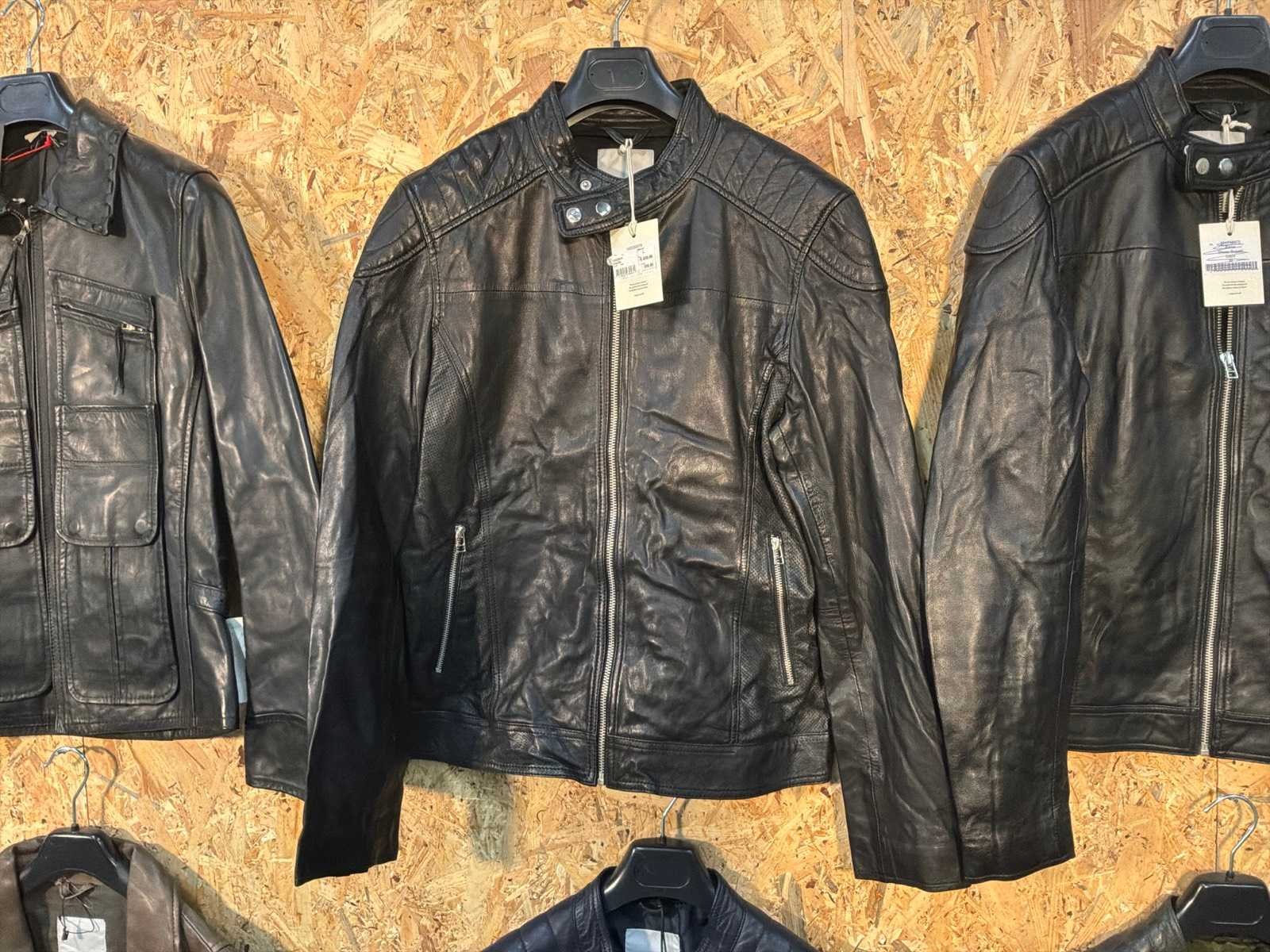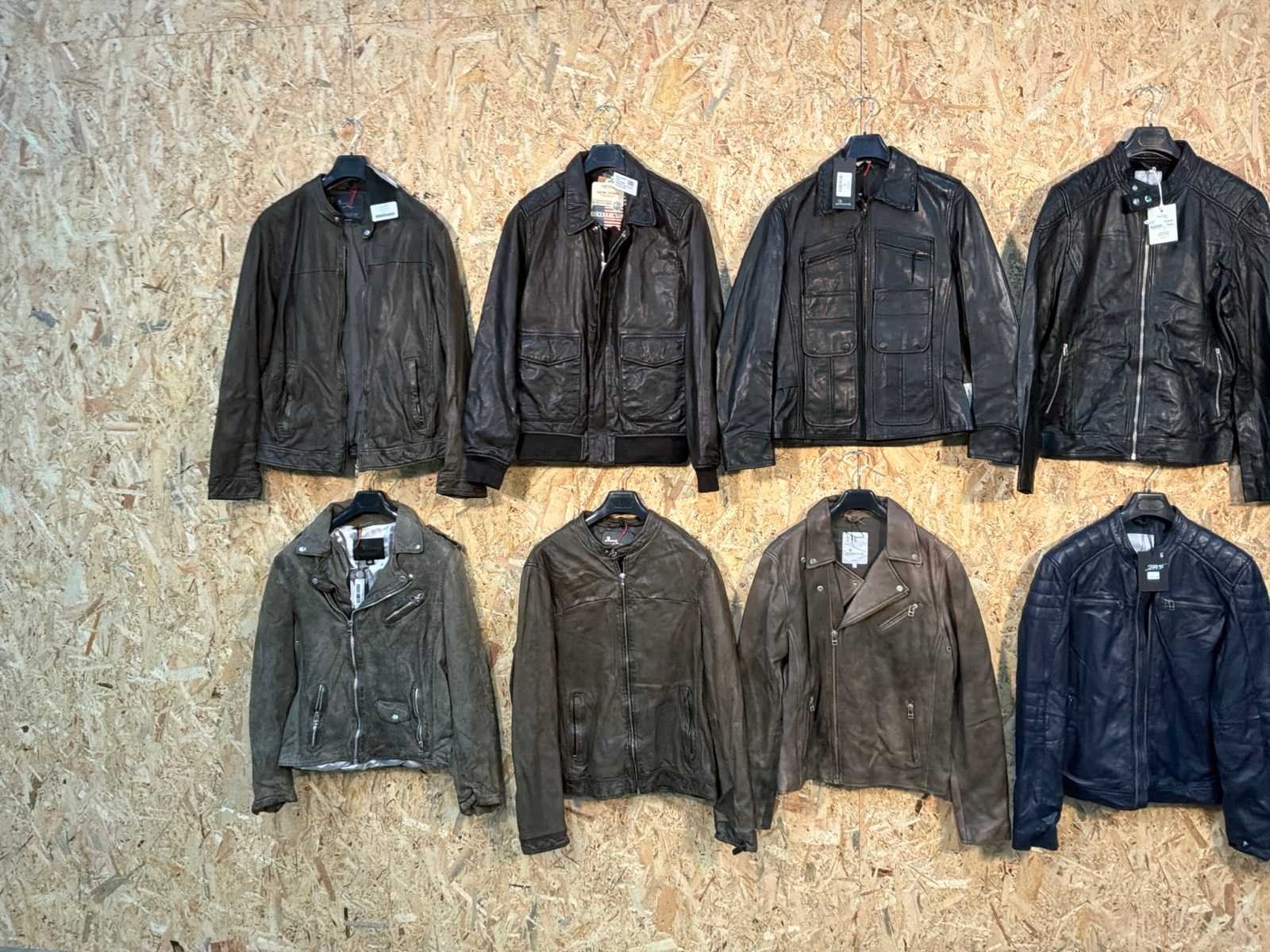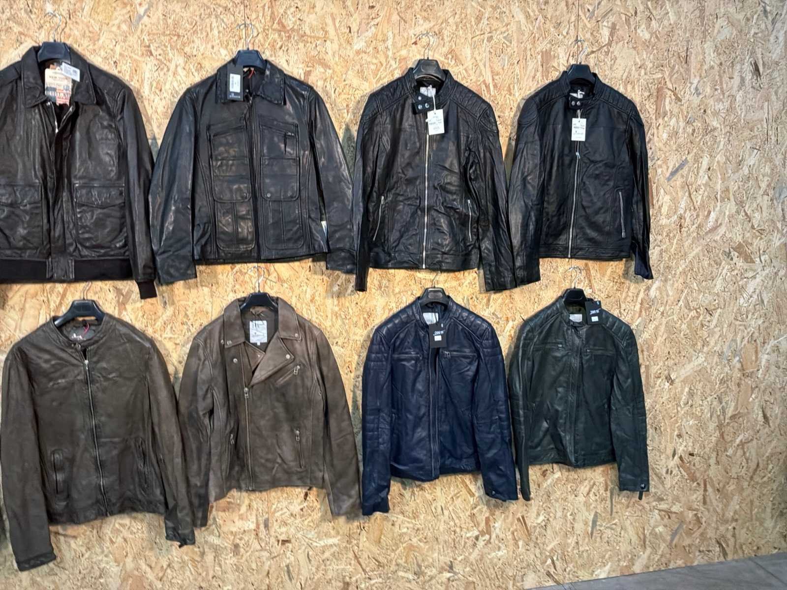 Diverse heren leren jassen in verschillende modellen, kleuren en maten. Inclusief kledinghangers. Mochten erop de items beveiligingstags zitten worden deze nog verwijderd voor de uitleverdag. Merk: Goose-craft