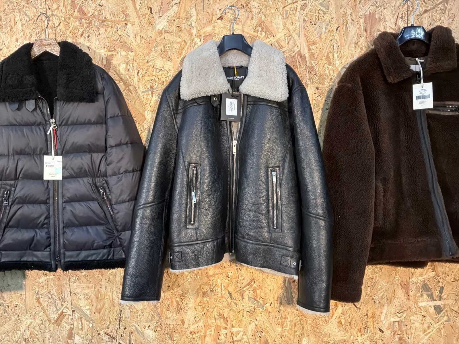 Diverse heren leren jassen in verschillende modellen, kleuren en maten. Inclusief kledinghangers. Mochten erop de items beveiligingstags zitten worden deze nog verwijderd voor de uitleverdag. Merk: Goose-craft