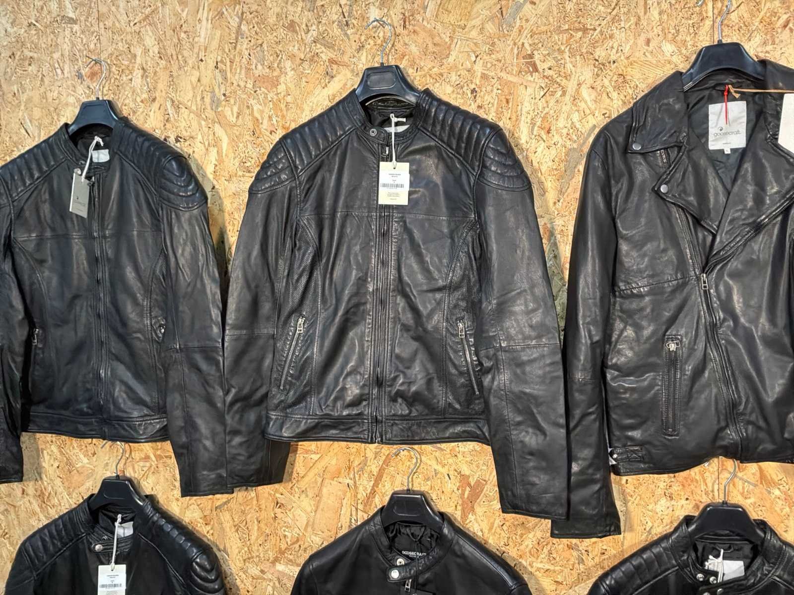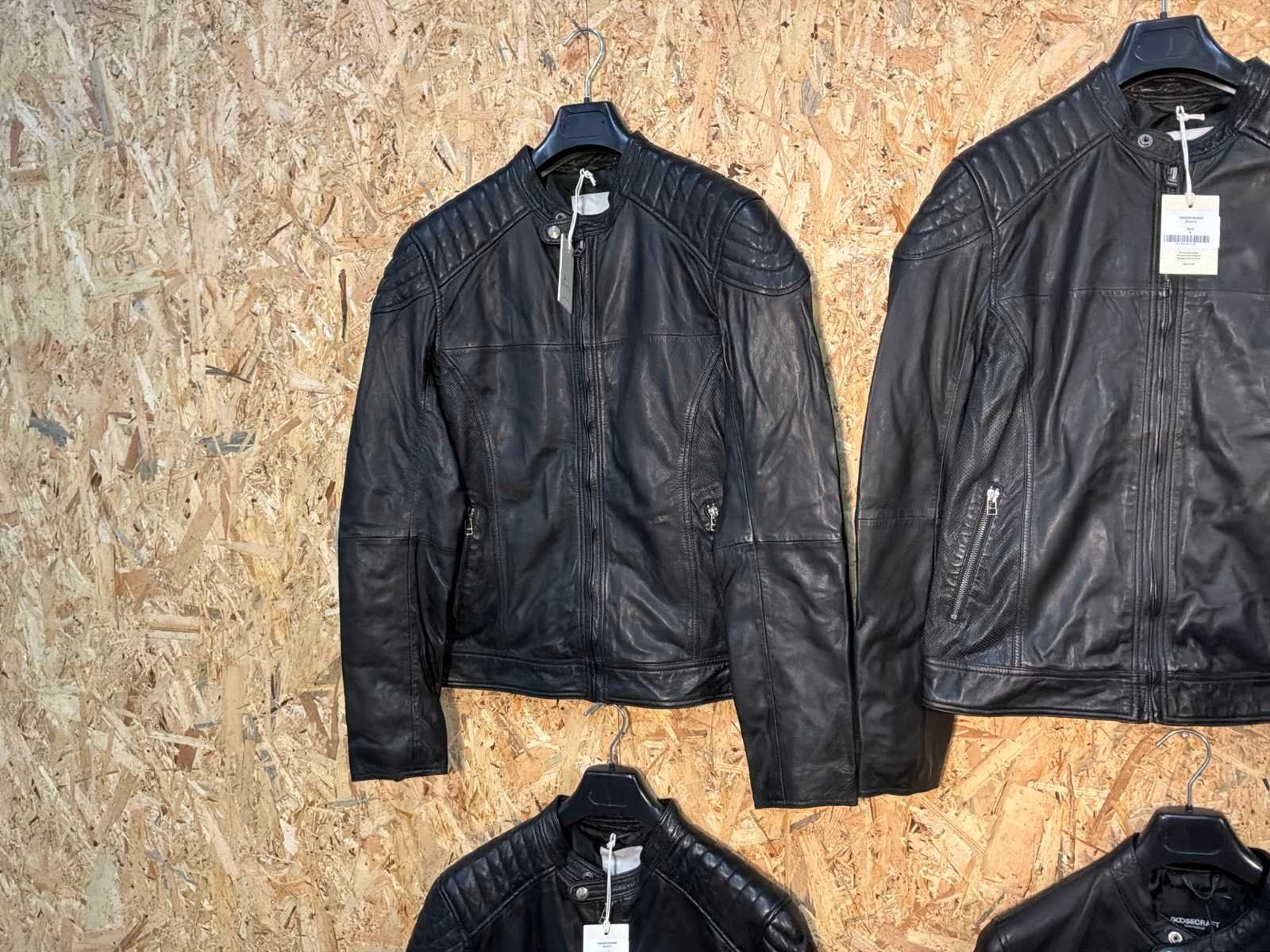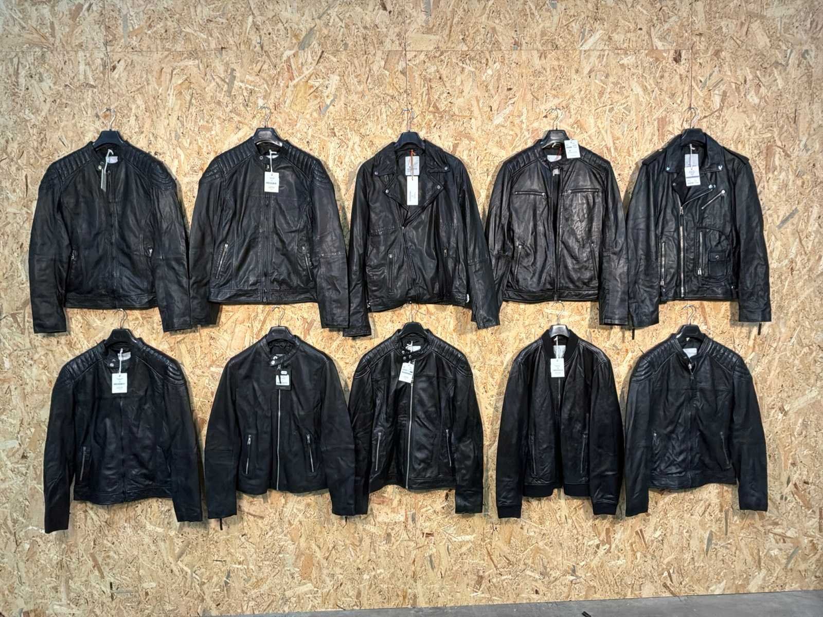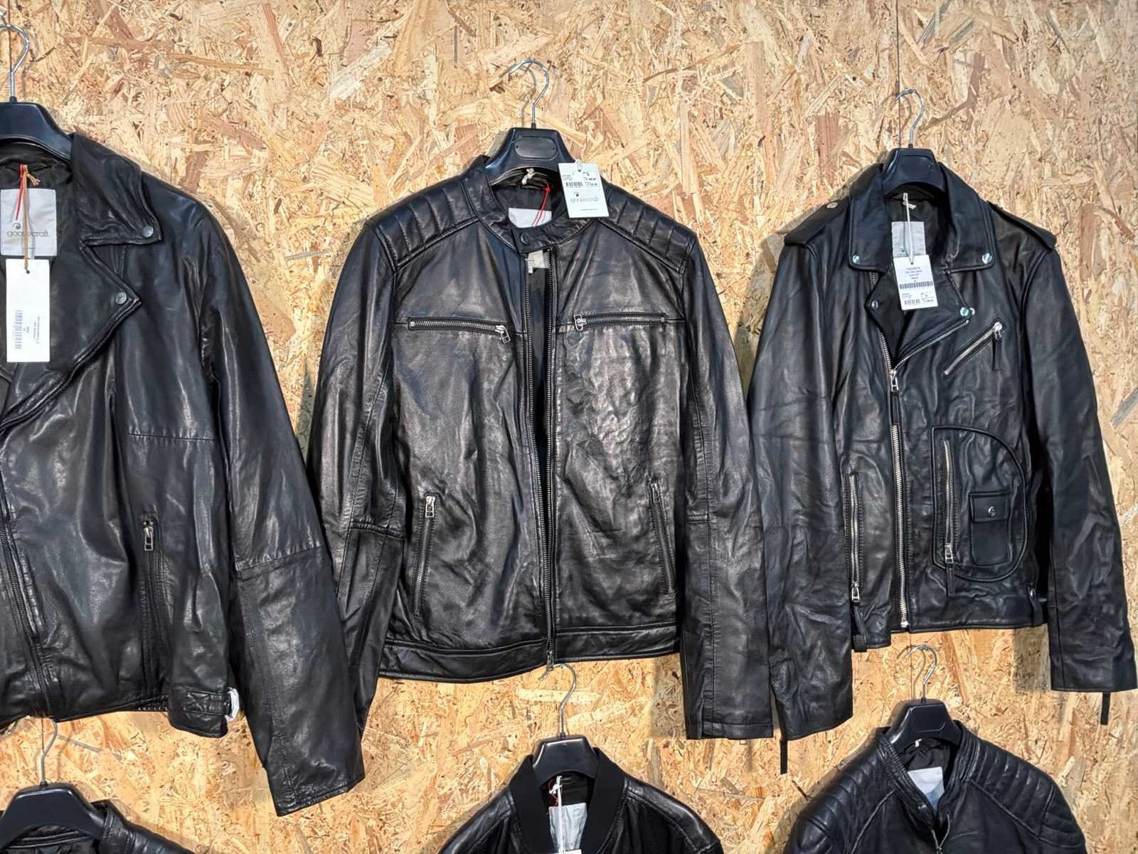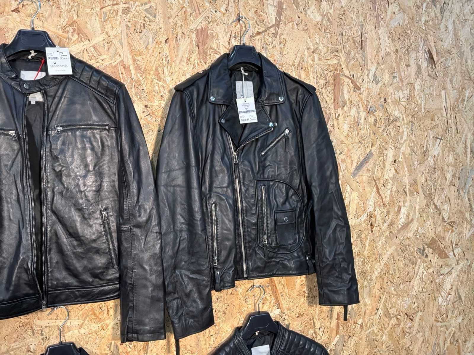 Diverse heren leren jassen in verschillende modellen, kleuren en maten. Inclusief kledinghangers. Mochten erop de items beveiligingstags zitten worden deze nog verwijderd voor de uitleverdag. Merk: Goose-craft