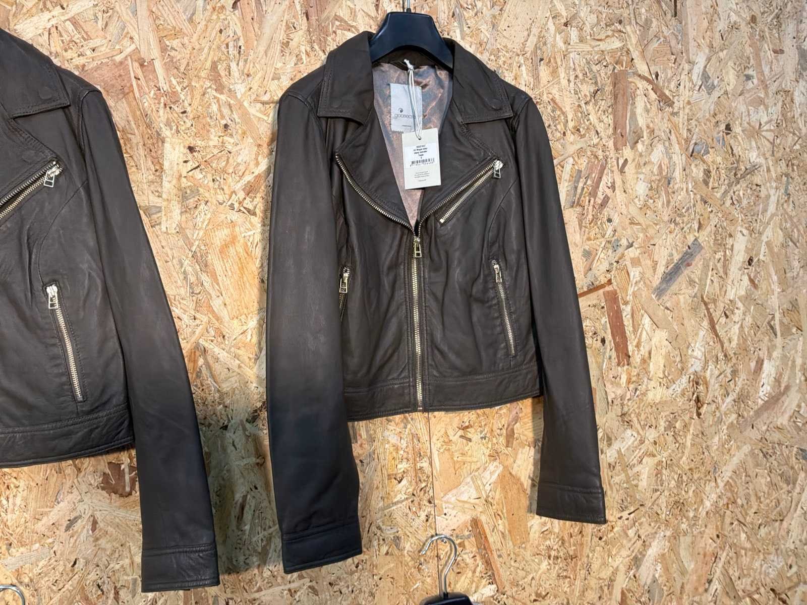 Diverse dames leren jassen in verschillende modellen, kleuren en maten. Inclusief kledinghangers. Mochten erop de items beveiligingstags zitten worden deze nog verwijderd voor de uitleverdag. Merk: Goose-craft